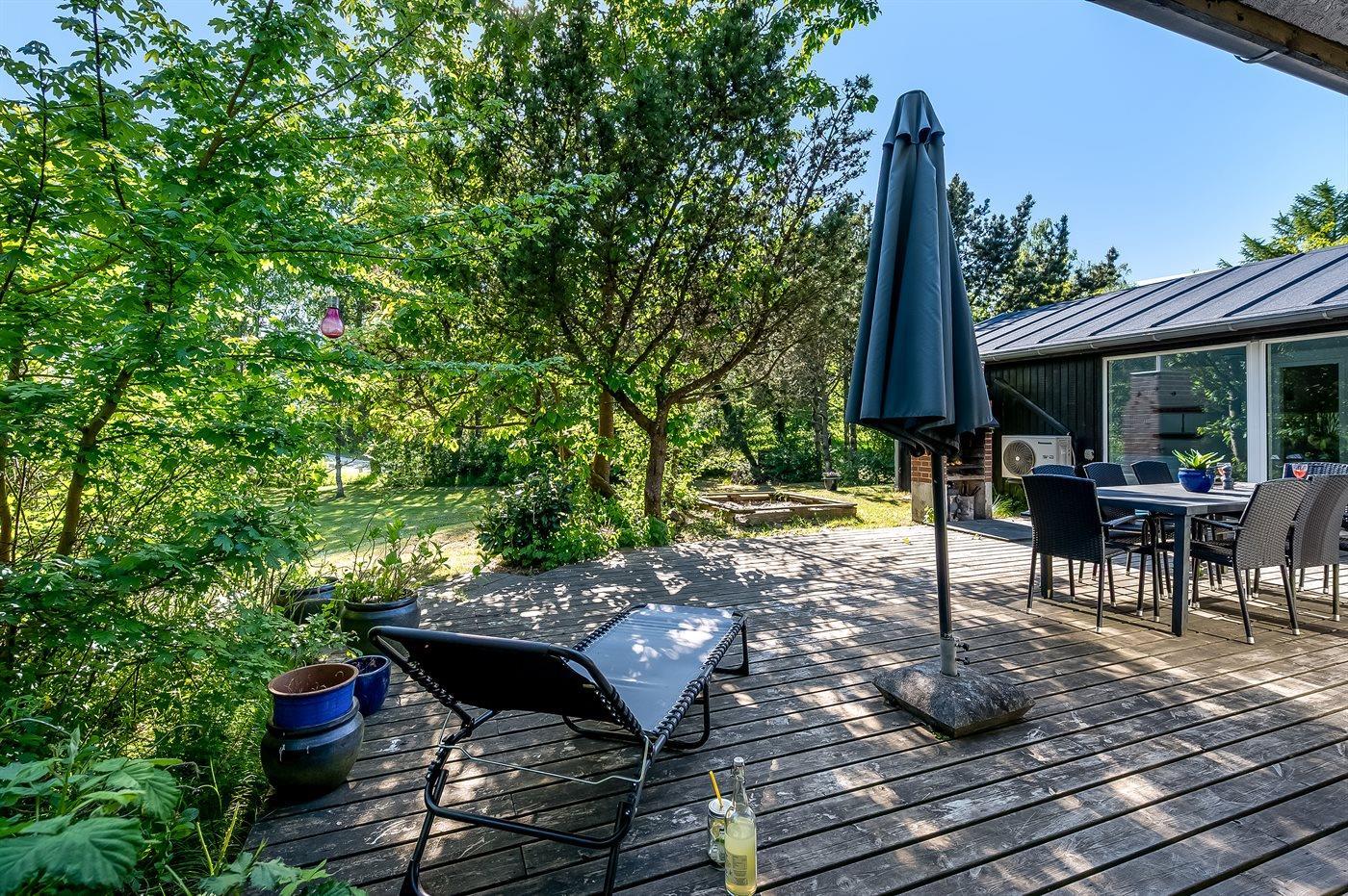 Ferieboligen er beliggende på en 1576 m² stor naturgrund. Der er 800 m til havet. Nærmeste forretning er beliggende i en afstand af 1500 m. Til ferieboligen hører åbent terrasseareal. Desuden er der overdækket terrasse. Gynge. Sandkasse. Grill til rådighed. Parkering ved ferieboligen.