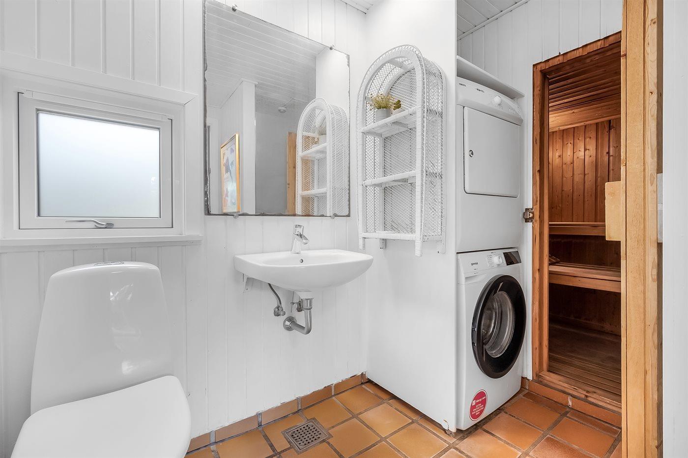 Der er 2 badeværelser med bruseniche og 2 toiletter. Der er gulvvarme på 1 badeværelse. I saunaen er der mulighed for afslapning.