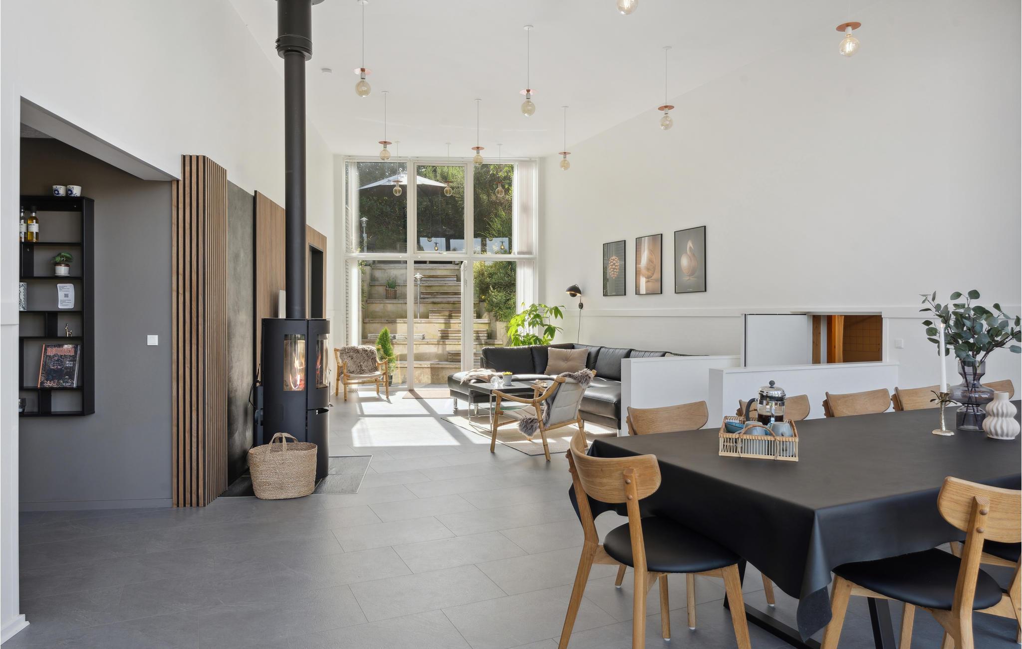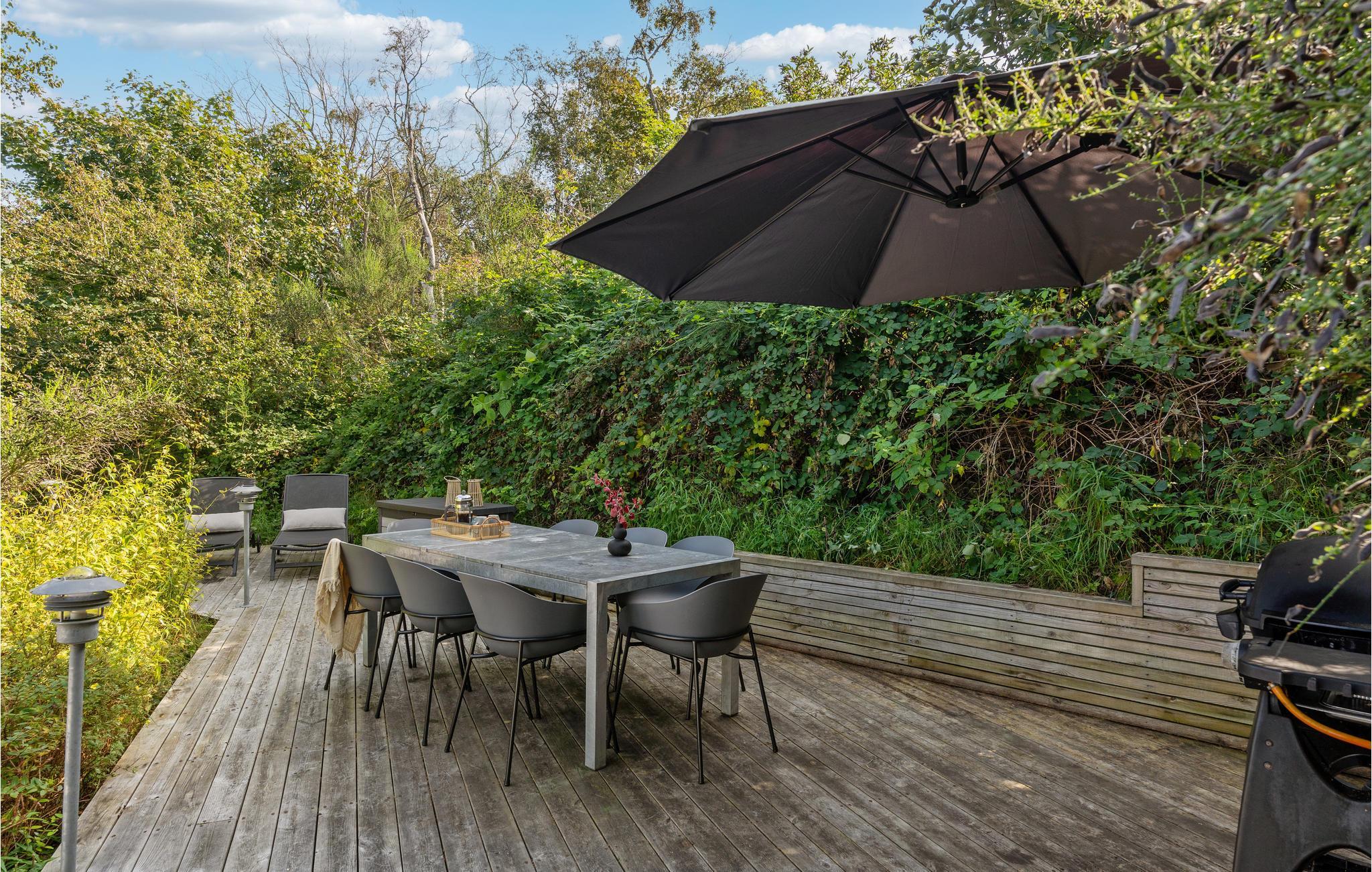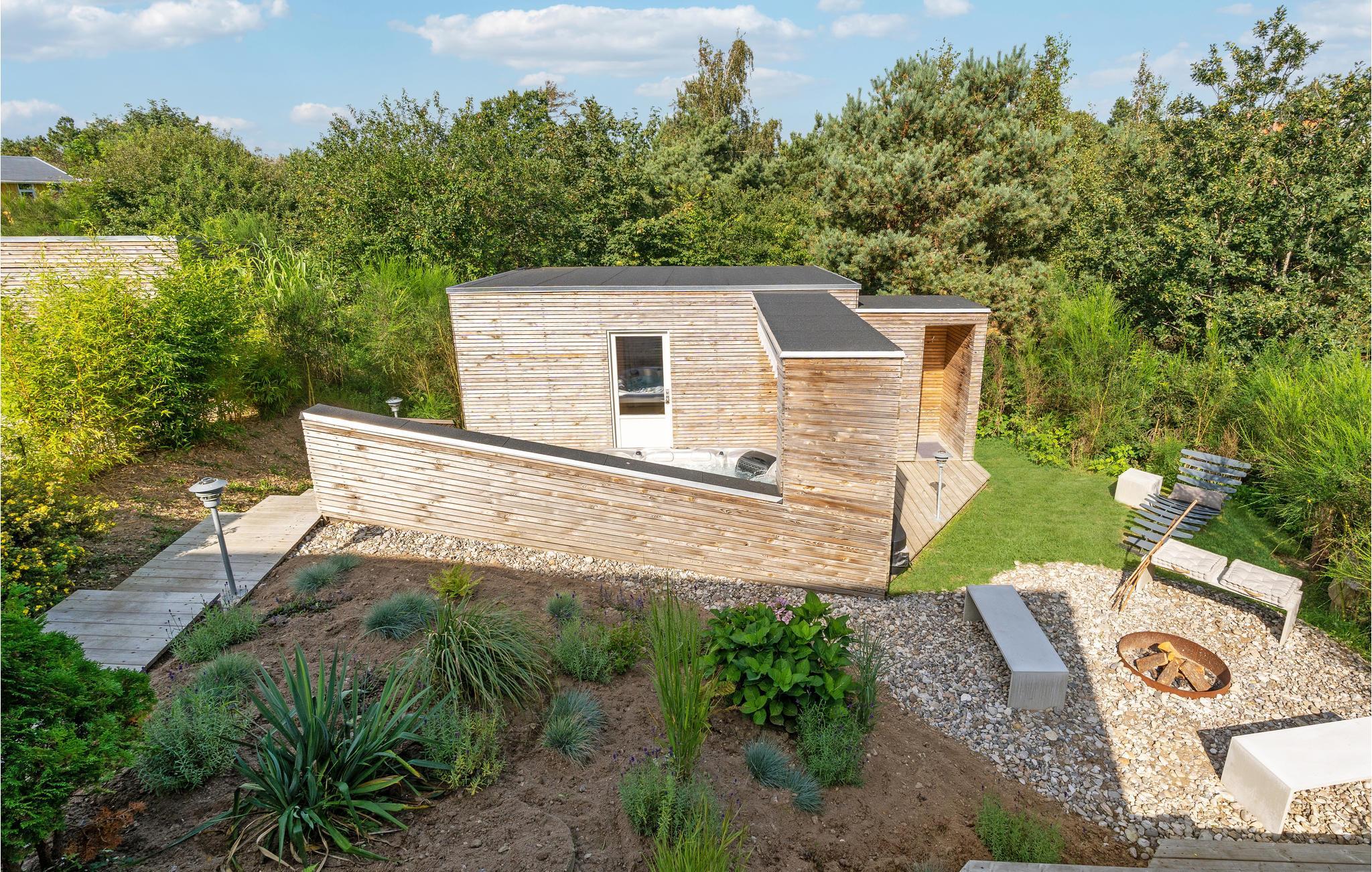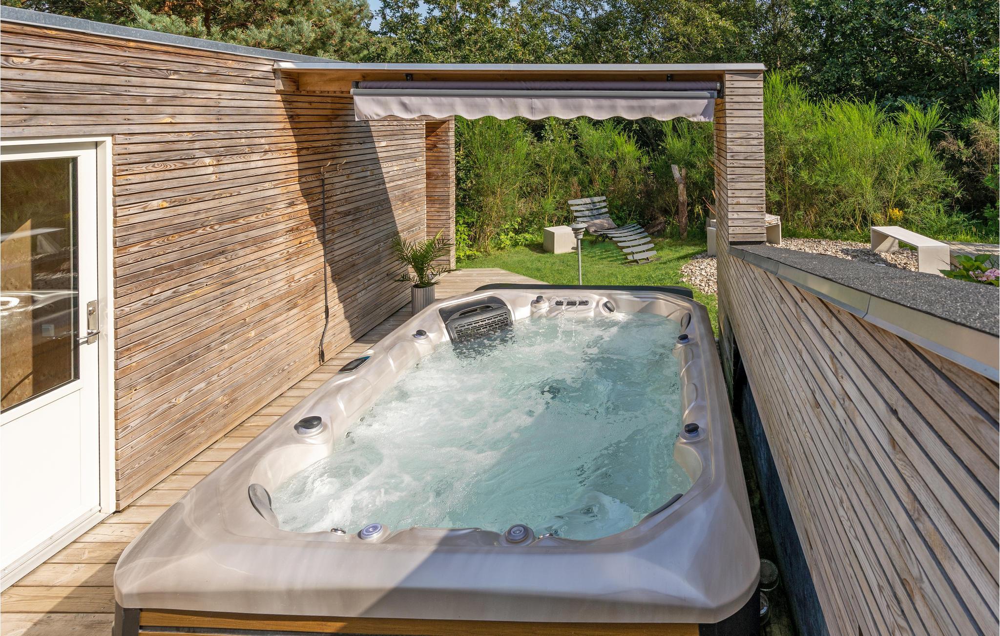 Med såvel Ebeltoft by som golfbane indenfor gåafstand har dette feriehus en perfekt beliggenhed i et roligt og populært område. Huset ligger på en dejlig naturgrund med sol på flere terraaser i forskudte plan og en wellnessafdeling. Så snart I kommer indenfor, vil I bemærke den flotte arkitektur med dejlige lysindfald og moderne møbler. Fra stuen har I udgang til en stor træterrasse der er placeret højt i terrænnet ( 8 trin op ) hvor I kan nyde aftensolen og måltiderne. Med husets centrale beliggenhed har I nem adgang til Ebeltofts mange attraktioner, små butikker, caféer og spisesteder. Huset har sin egen fantastiske wellnessafdeling med en stor 8 personer jacuzzi, sauna og udendørsbruser, her kan udelivet virkelig nydes.