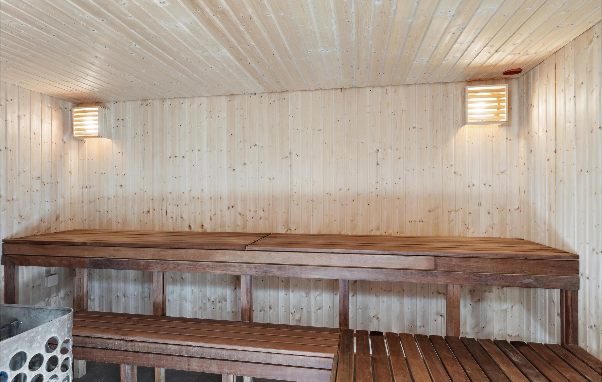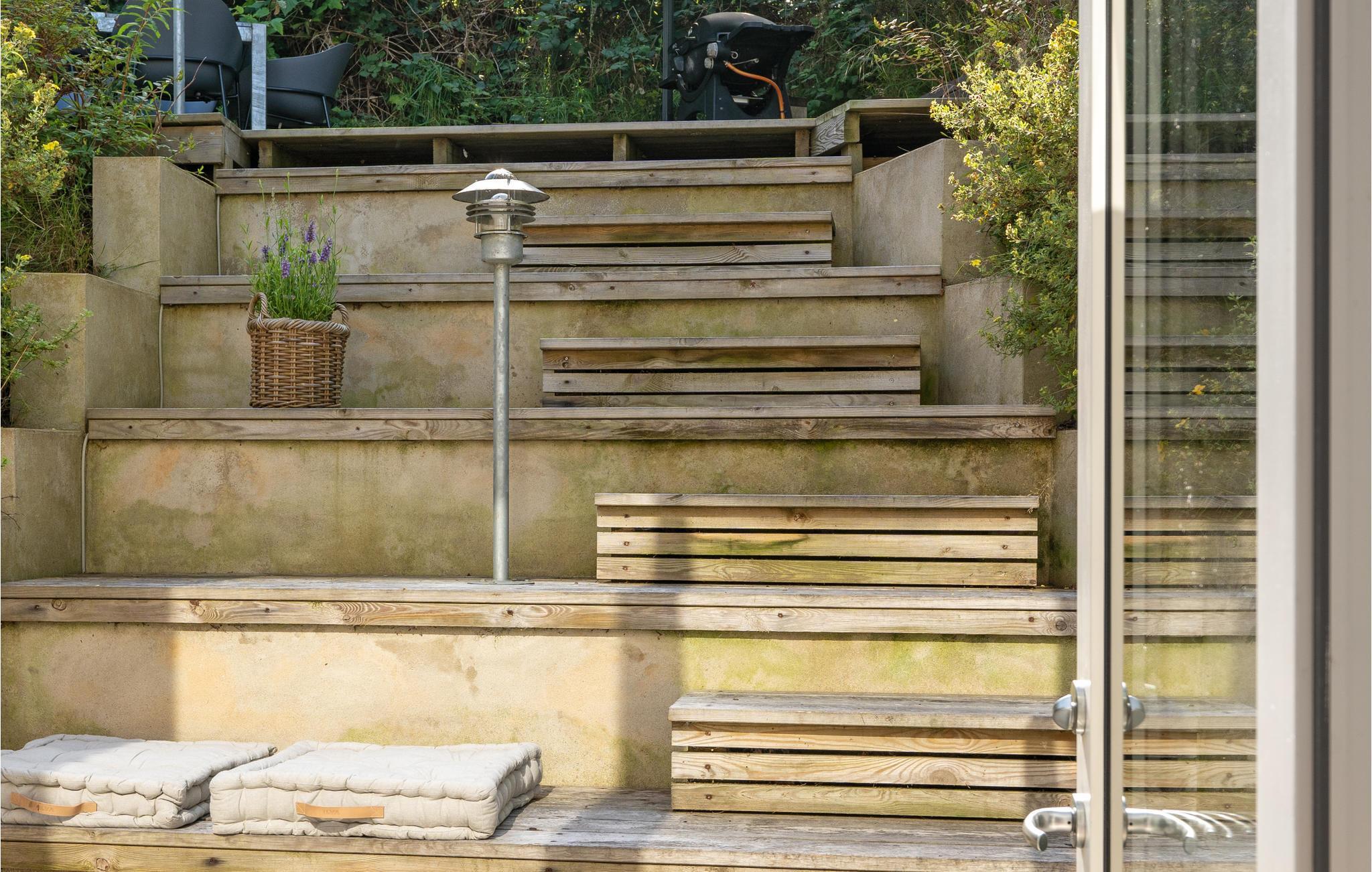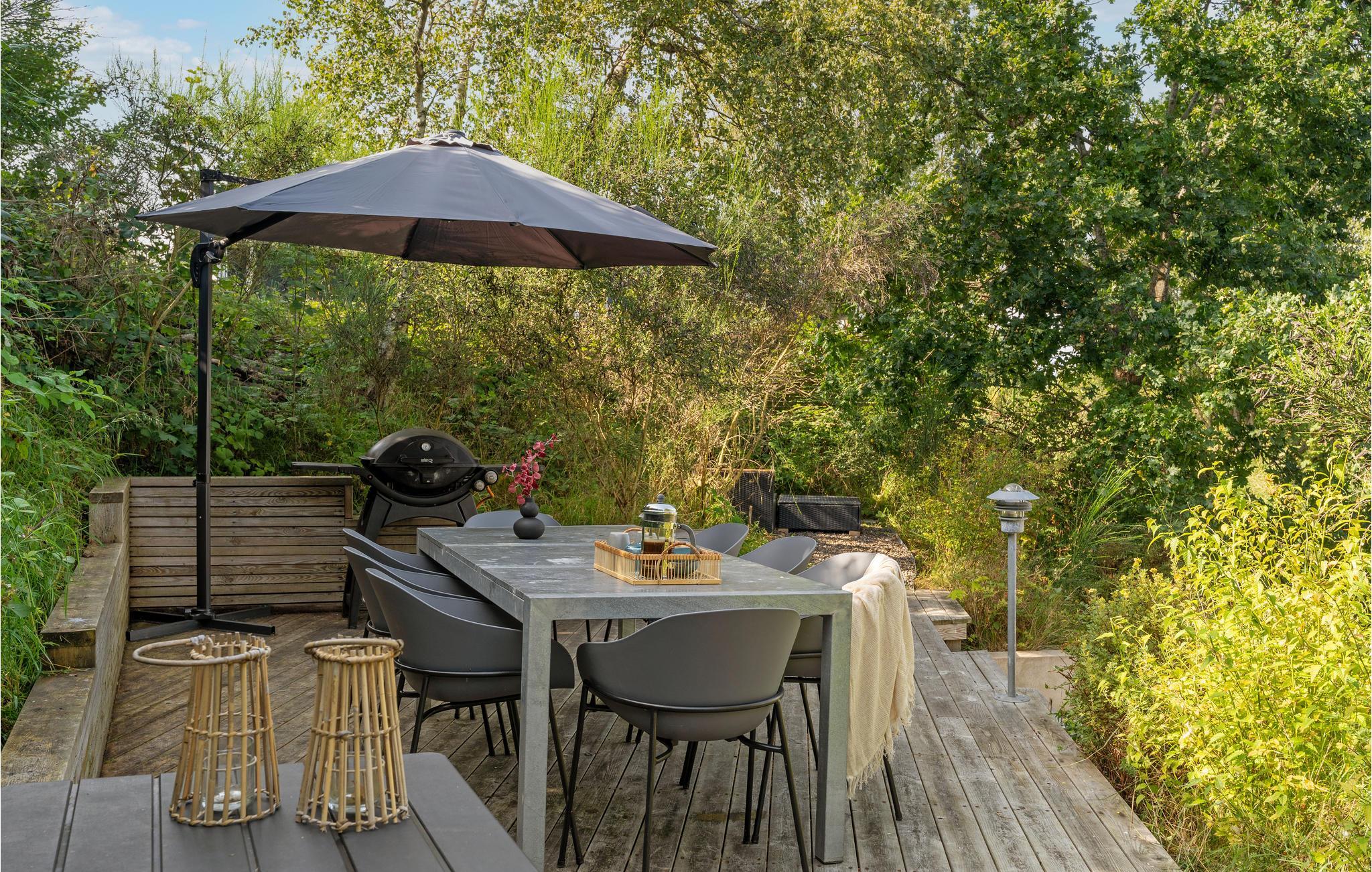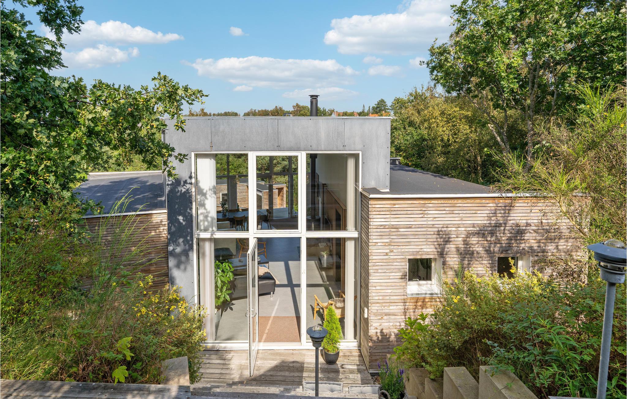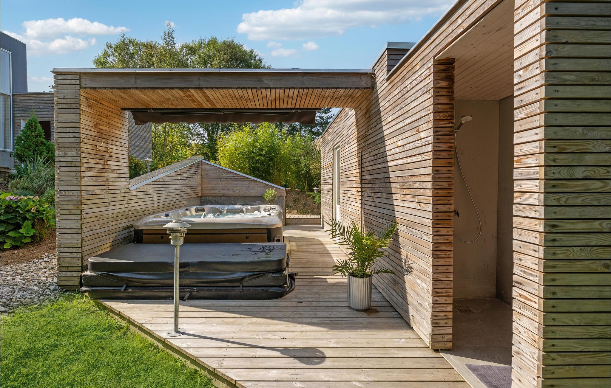 Med såvel Ebeltoft by som golfbane indenfor gåafstand har dette feriehus en perfekt beliggenhed i et roligt og populært område. Huset ligger på en dejlig naturgrund med sol på flere terraaser i forskudte plan og en wellnessafdeling. Så snart I kommer indenfor, vil I bemærke den flotte arkitektur med dejlige lysindfald og moderne møbler. Fra stuen har I udgang til en stor træterrasse der er placeret højt i terrænnet ( 8 trin op ) hvor I kan nyde aftensolen og måltiderne. Med husets centrale beliggenhed har I nem adgang til Ebeltofts mange attraktioner, små butikker, caféer og spisesteder. Huset har sin egen fantastiske wellnessafdeling med en stor 8 personer jacuzzi, sauna og udendørsbruser, her kan udelivet virkelig nydes.
