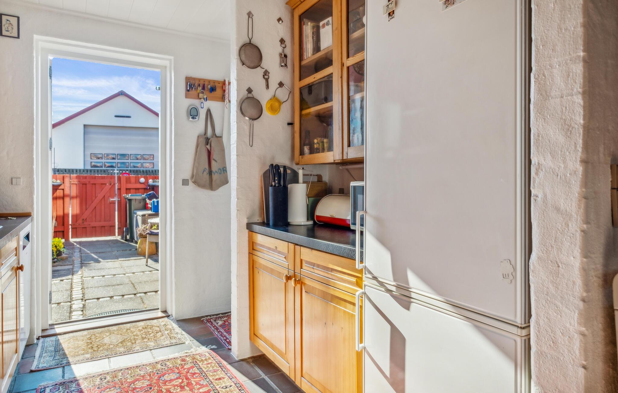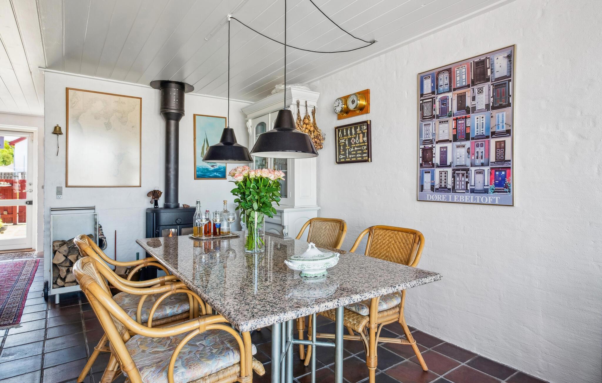 Der er en helt særlig stemning i dette skønne hus, som ligger placeret lige ud til havnepromenaden i Ebeltoft og har udsigt til Mols Bjerge. Her kan I sætte hverdagen på pause og lade batterierne op i de hyggeligste omgivelser. I det charmerende køkken kan I tilberede friskfangede fisk og servere ferieretterne i spisestuen, mens I nyder varmen fra brændeovnen. Læn jer tilbage i den hyggelige stue, slap af med en god bog eller film eller sæt jer til rette med udsigten til bådene og livet på havnen.