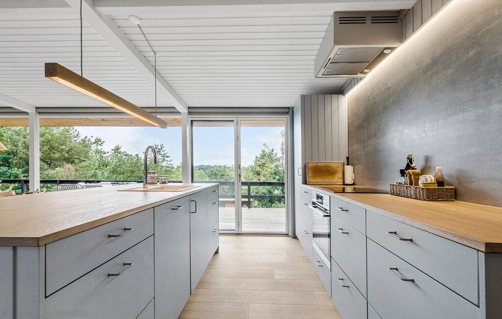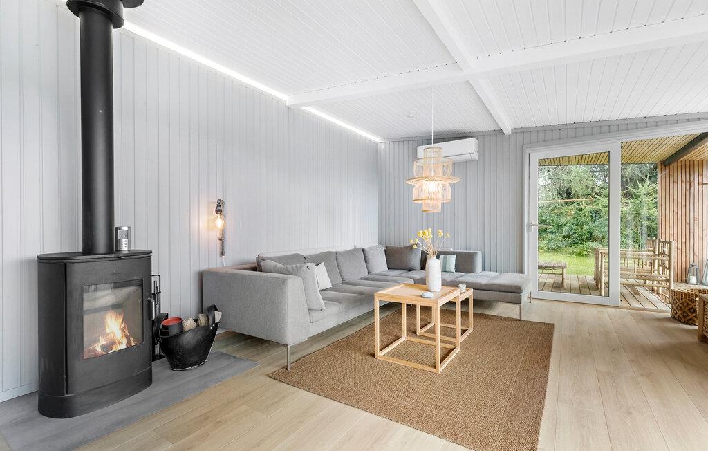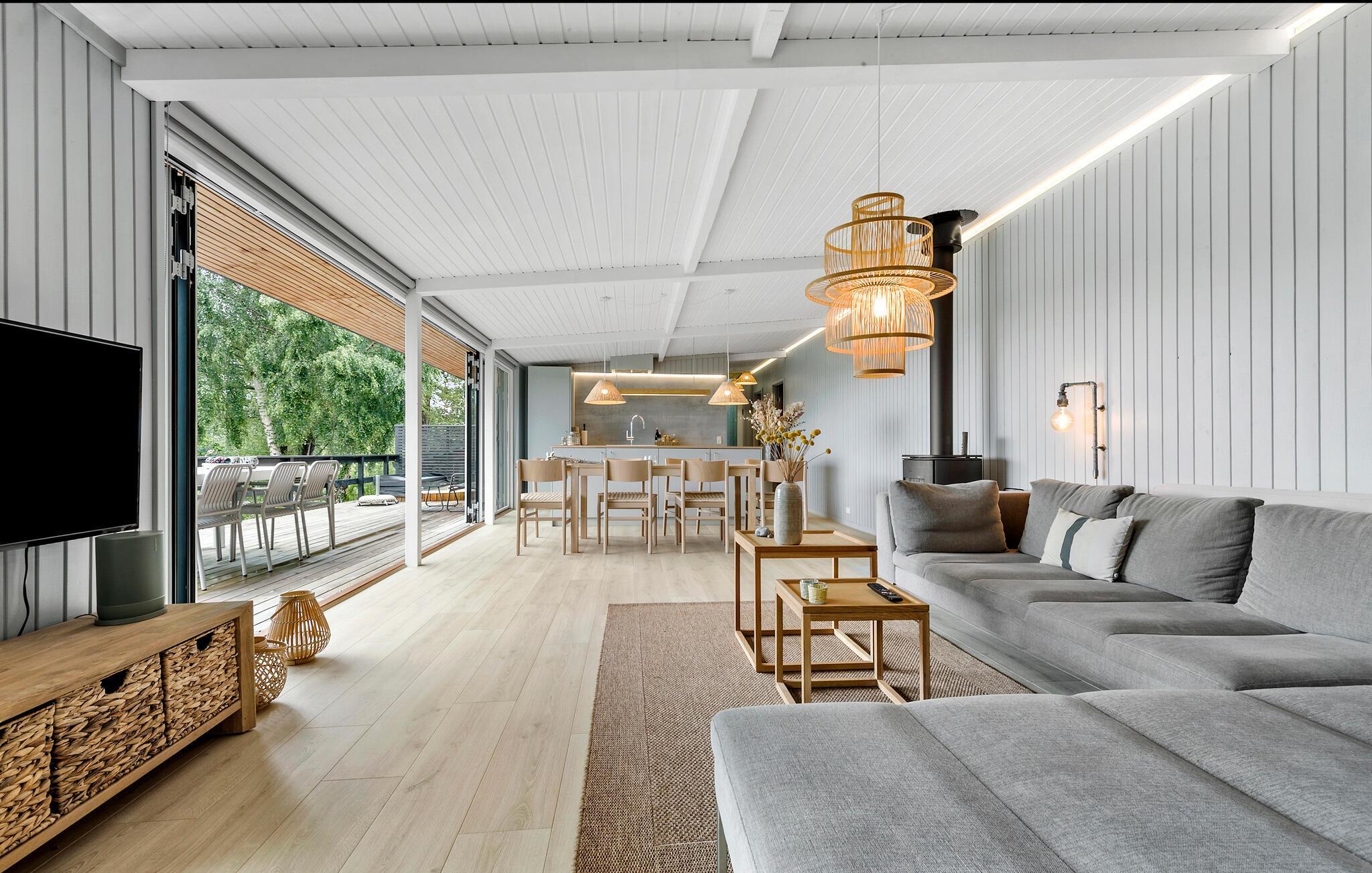 Skuldrene sænker sig automatisk, fra I træder ind i dette hus. Her står tiden nærmest stille, for alt ånder fred og idyl på dette skønne sted. Huset er renoveret med respekt for den oprindelige stil og samtidig er der lagt vægt på gedigne naturmaterialer, som skaber en vidunderlig ro. De brede vinduespartier gør, at inde og ude smelter sammen, så I har altid naturen tæt på - også hvis vejret er køligt. Sæt jer til rette i den rummelige stue og nyd den moderne nordiske indretning, som kombinerer høj komfort og funktionalitet.