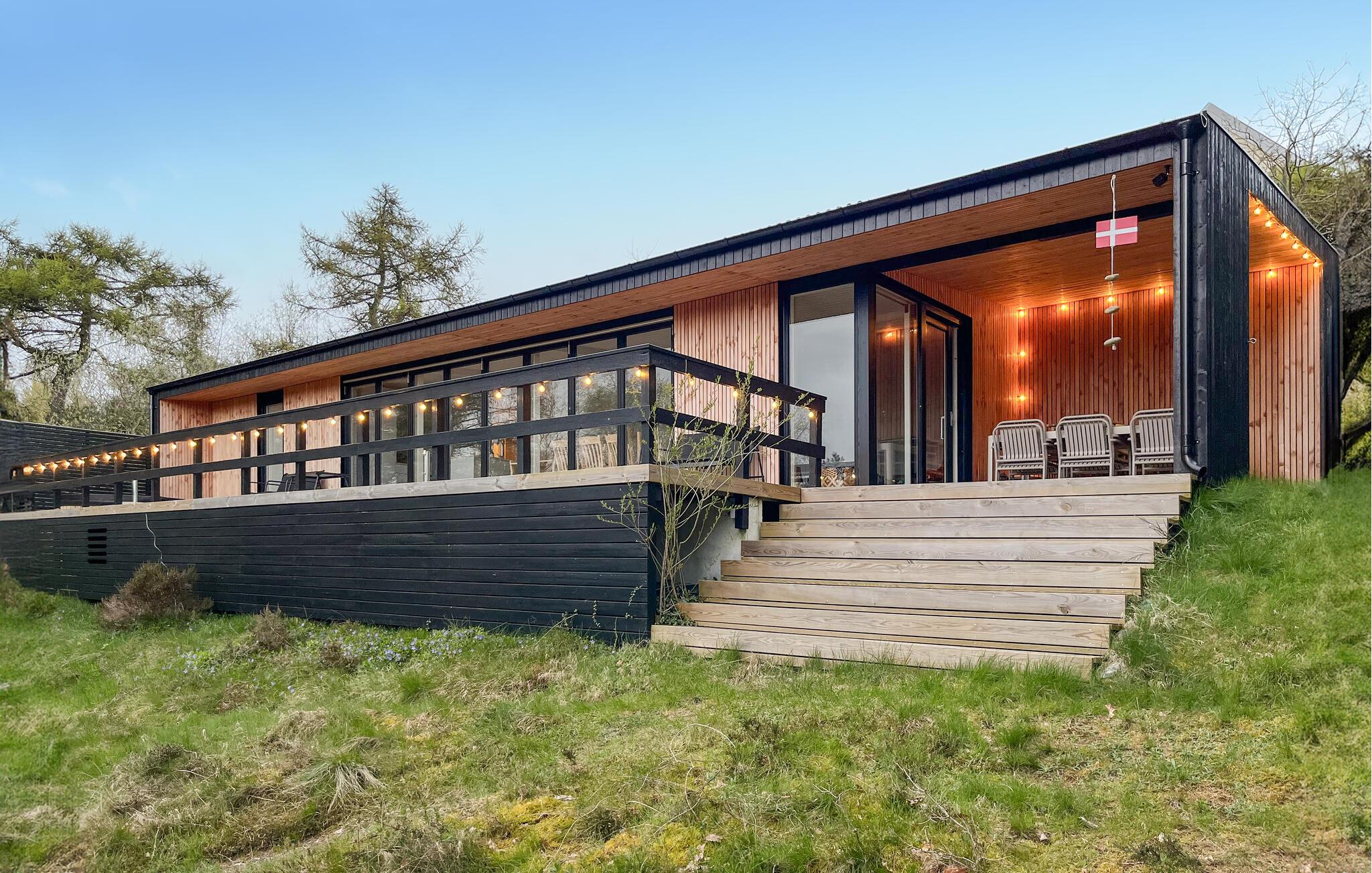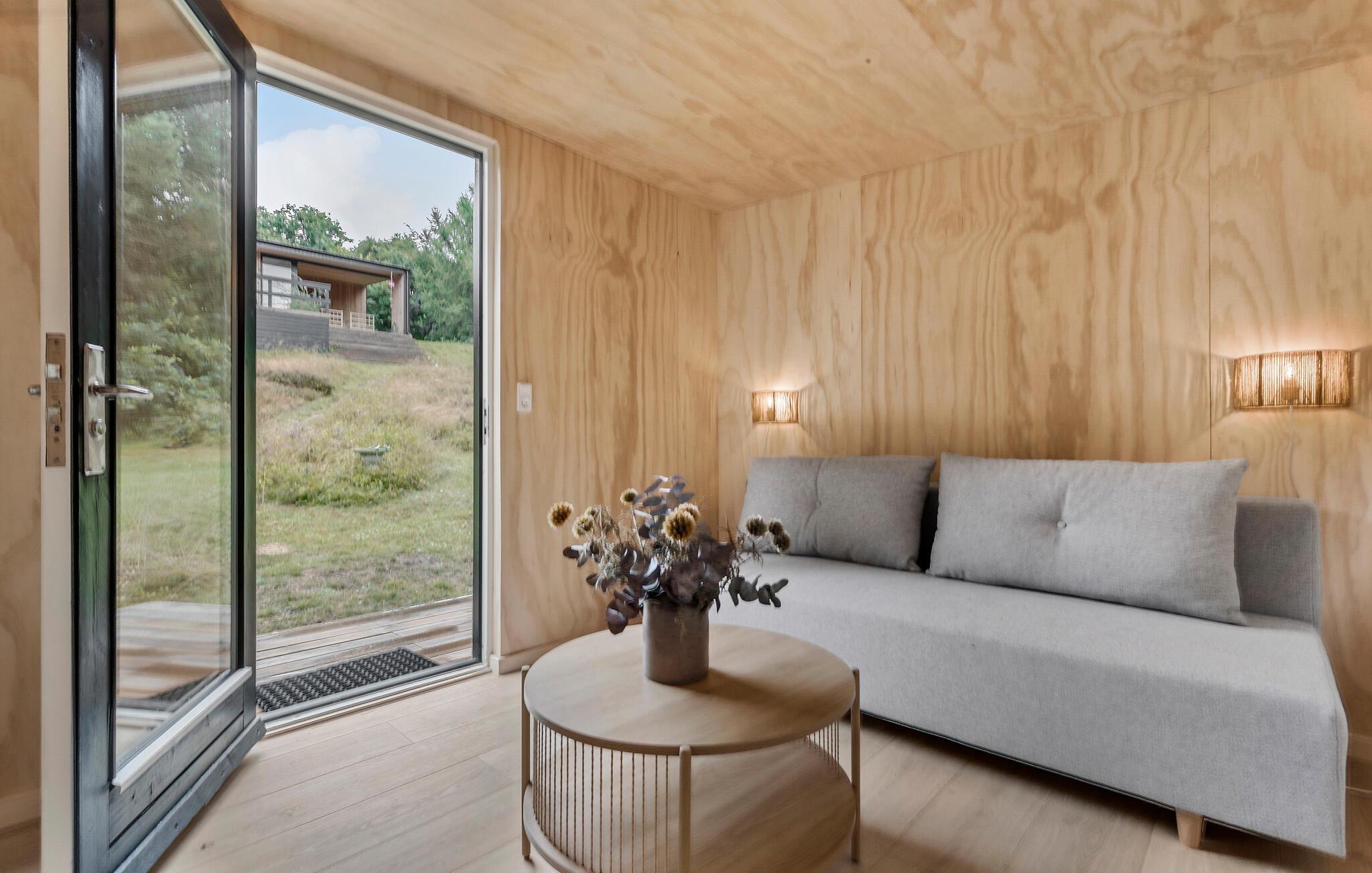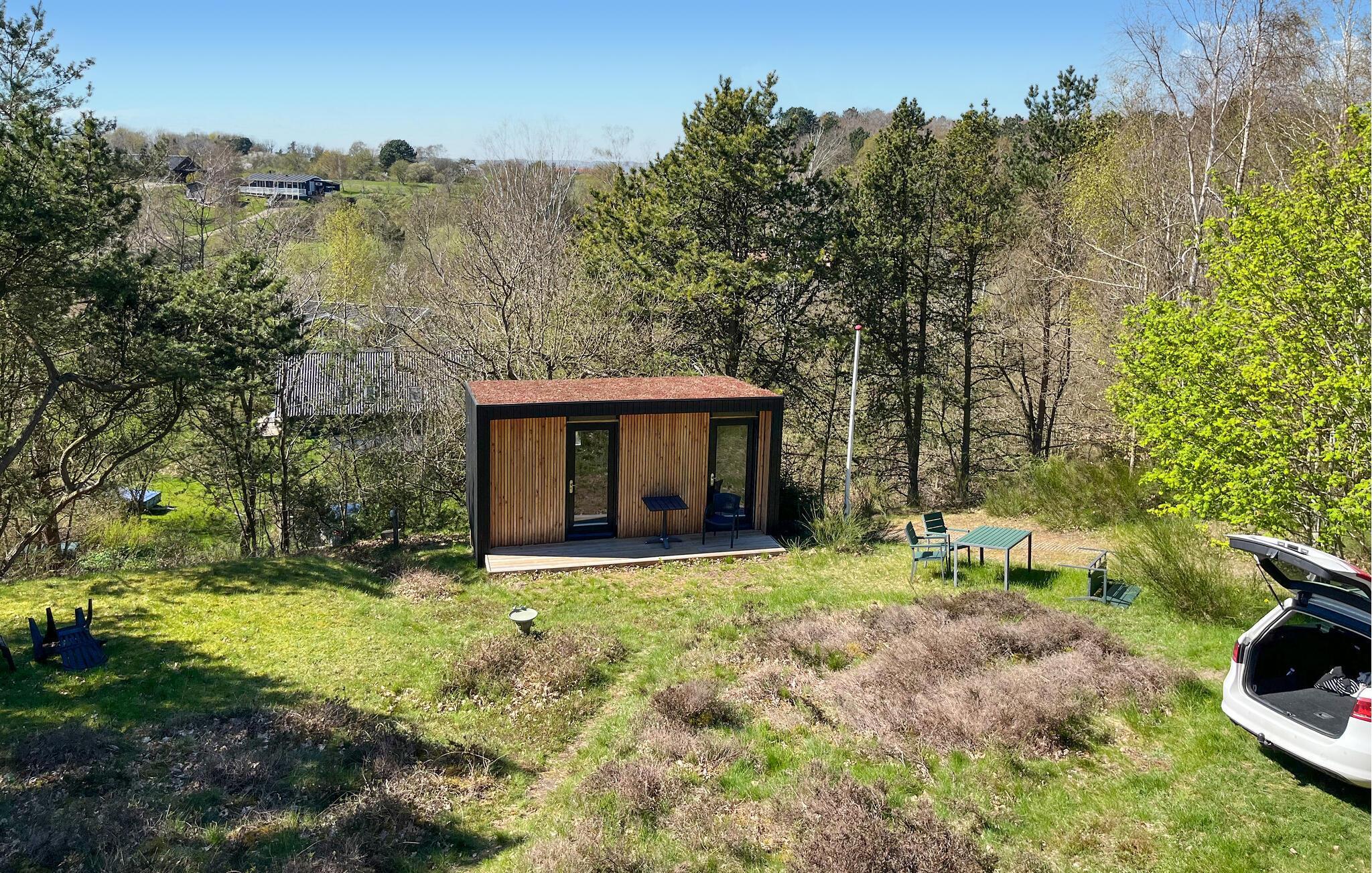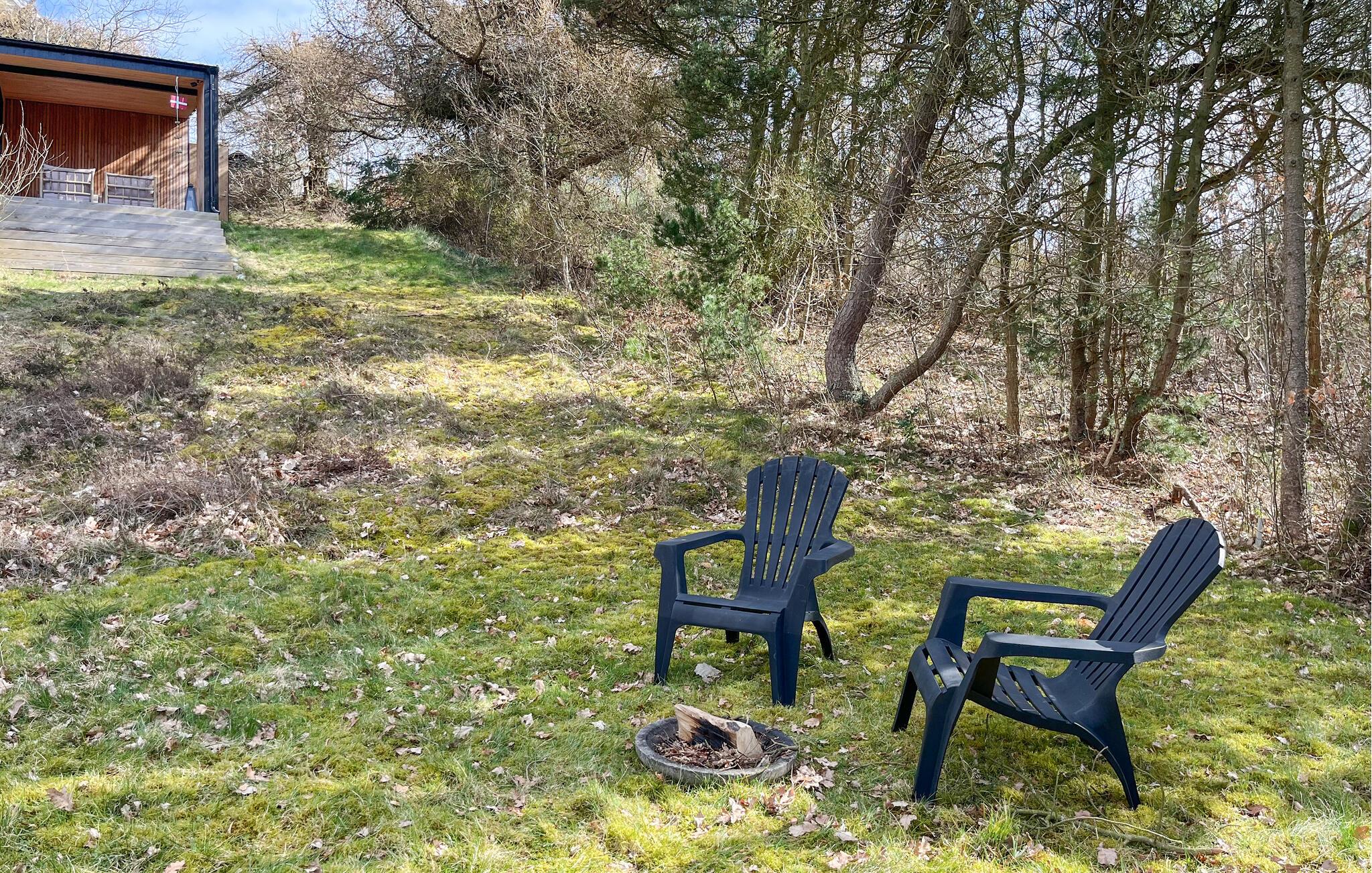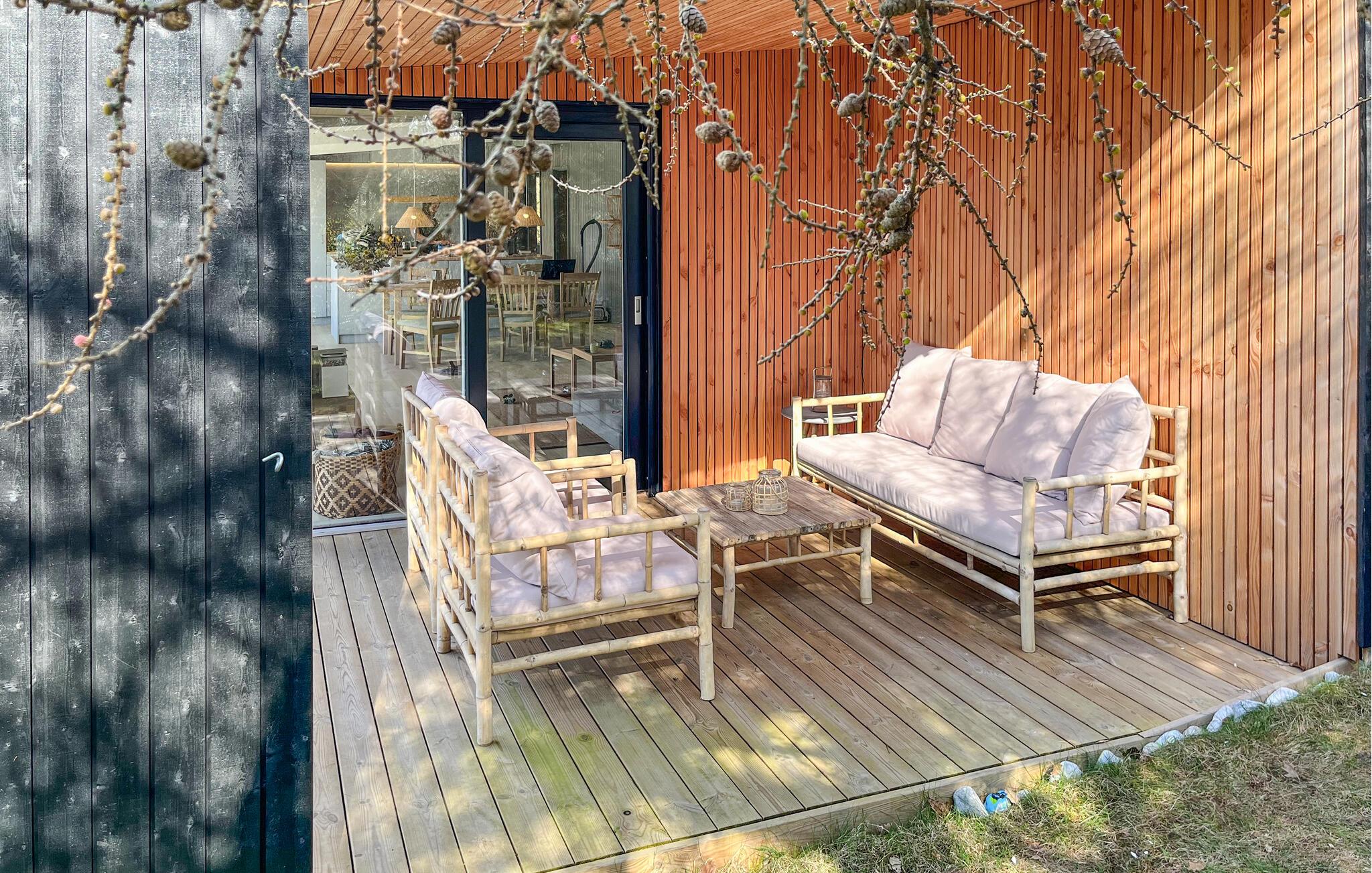 Når solen er fremme, kan I trække ud på den rummelige terrasse, hvor I både kan finde sol og skygge. Gør brug af den lukkede have, som giver jer privatliv og er et herligt sted at lege for børnene. Som noget særligt kan I læne jer tilbage i vildmarksbadet efter en lang dag på farten og lytte til tonerne af fuglesang, mens I slapper af i vandet.