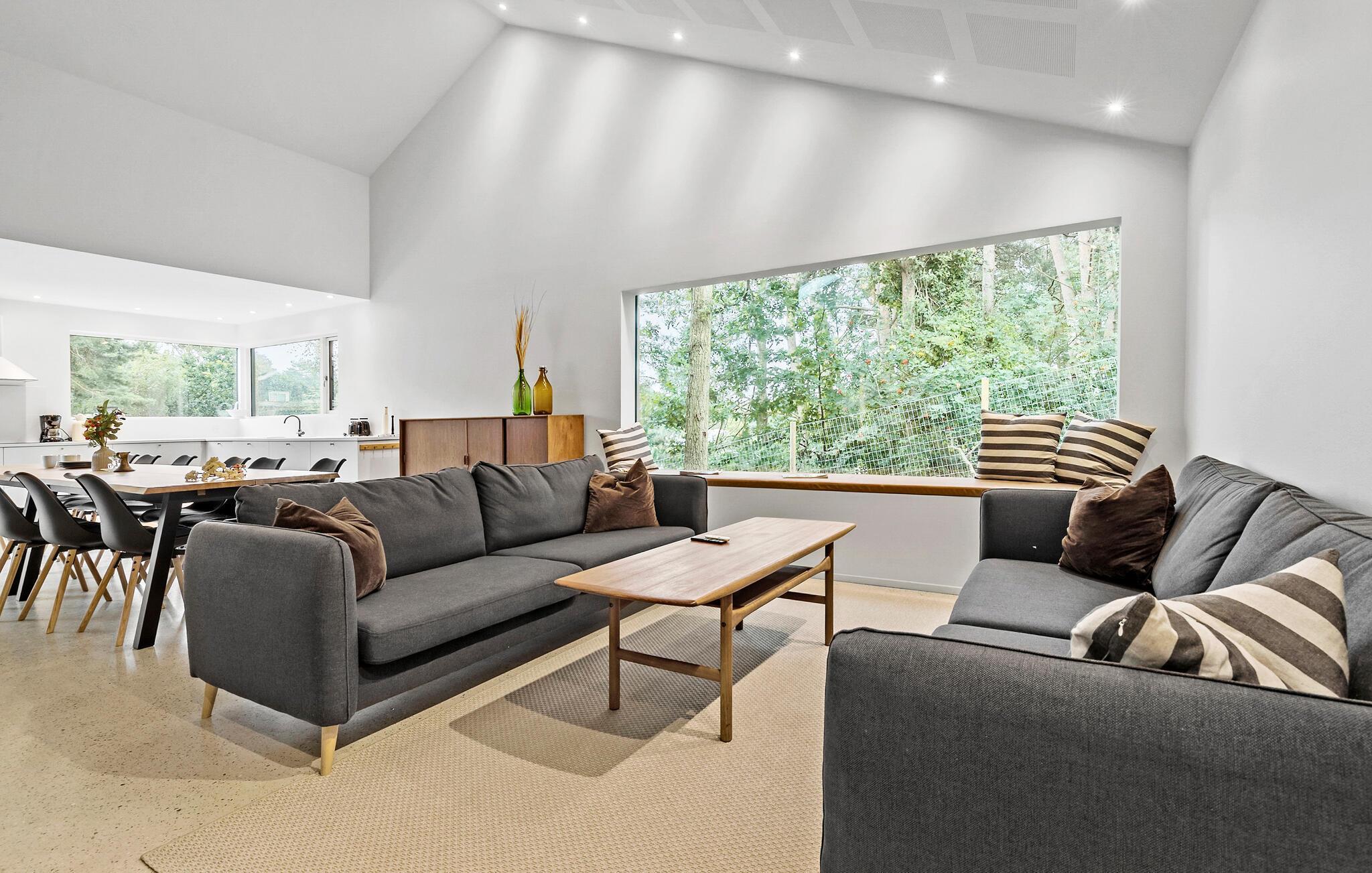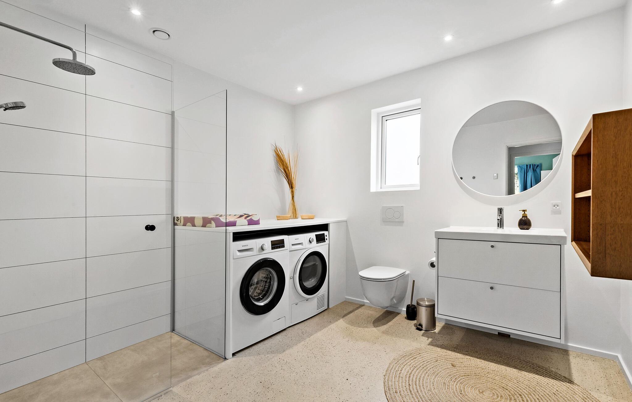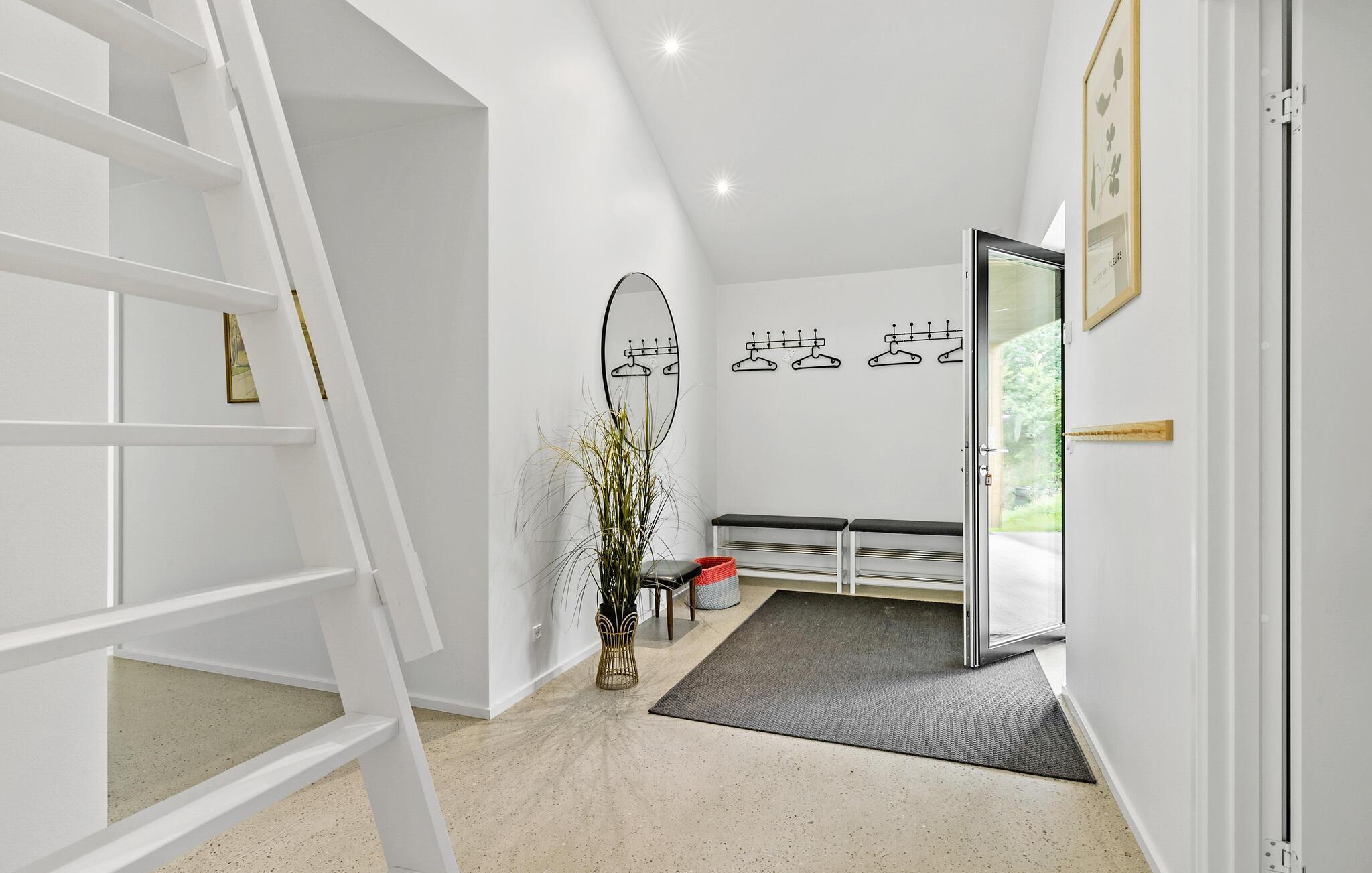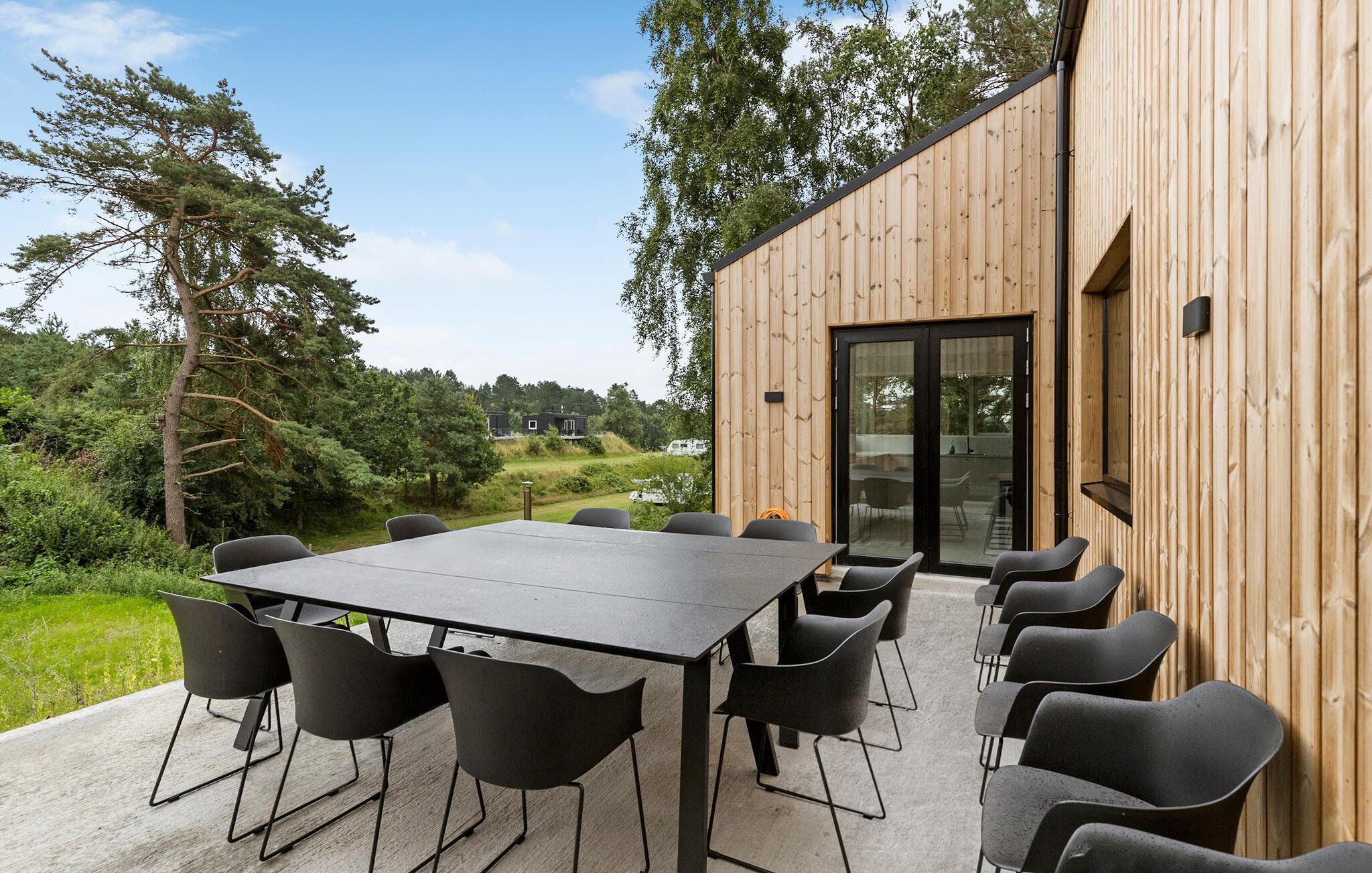 Hvis I er på udkig efter en feriebolig med plads til hele den store familie, og vil I gerne bo midt i den skønne natur tæt på stranden, er dette komfortable hus ved Ebeltoft det helt rette valg. Indretningen fremtræder virkelig flot og kombinerer skandinavisk minimalisme med moderne bekvemmeligheder, så I kan nyde god komfort og hygge på tværs af generationerne. Husets hjerte er den åbne opholdsstue, der får dejlige lysindfald gennem de store vinduespartier, der samtidig giver en skøn udsigt til det grønne. Køkkenet er moderne og fuldt udstyret, så lad endelig familiens kokke tage sig god tid med madlavningen, mens andre duellerer i aktivitetsrummet eller dækker op ved spisebordet med plads til alle.