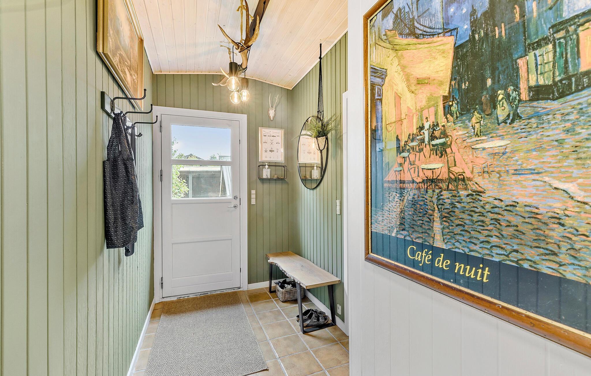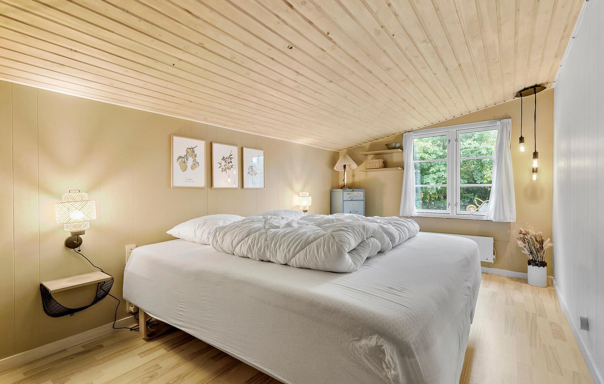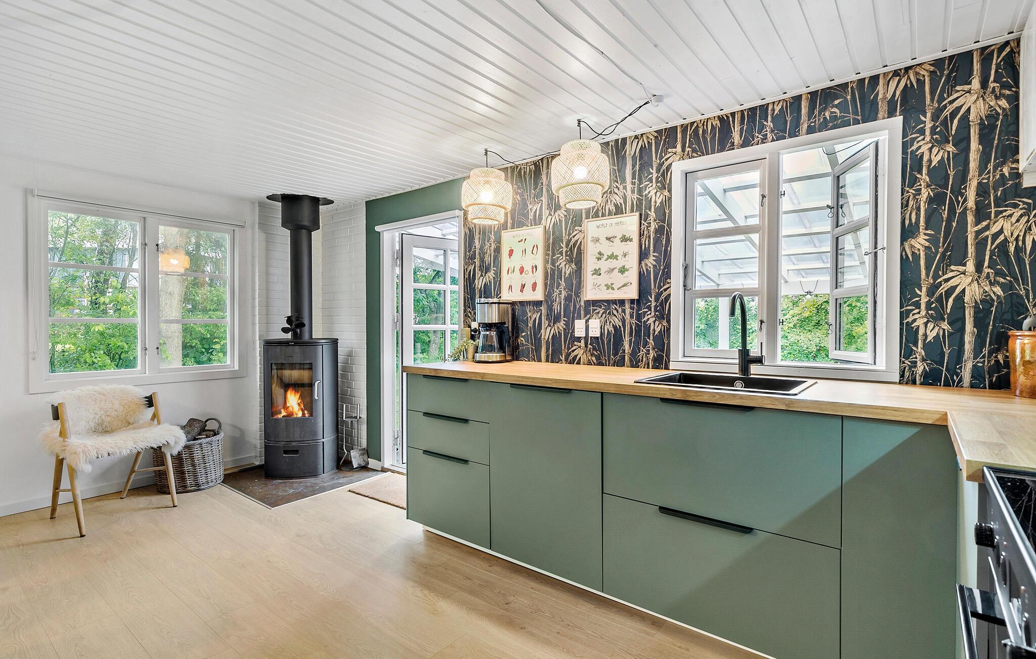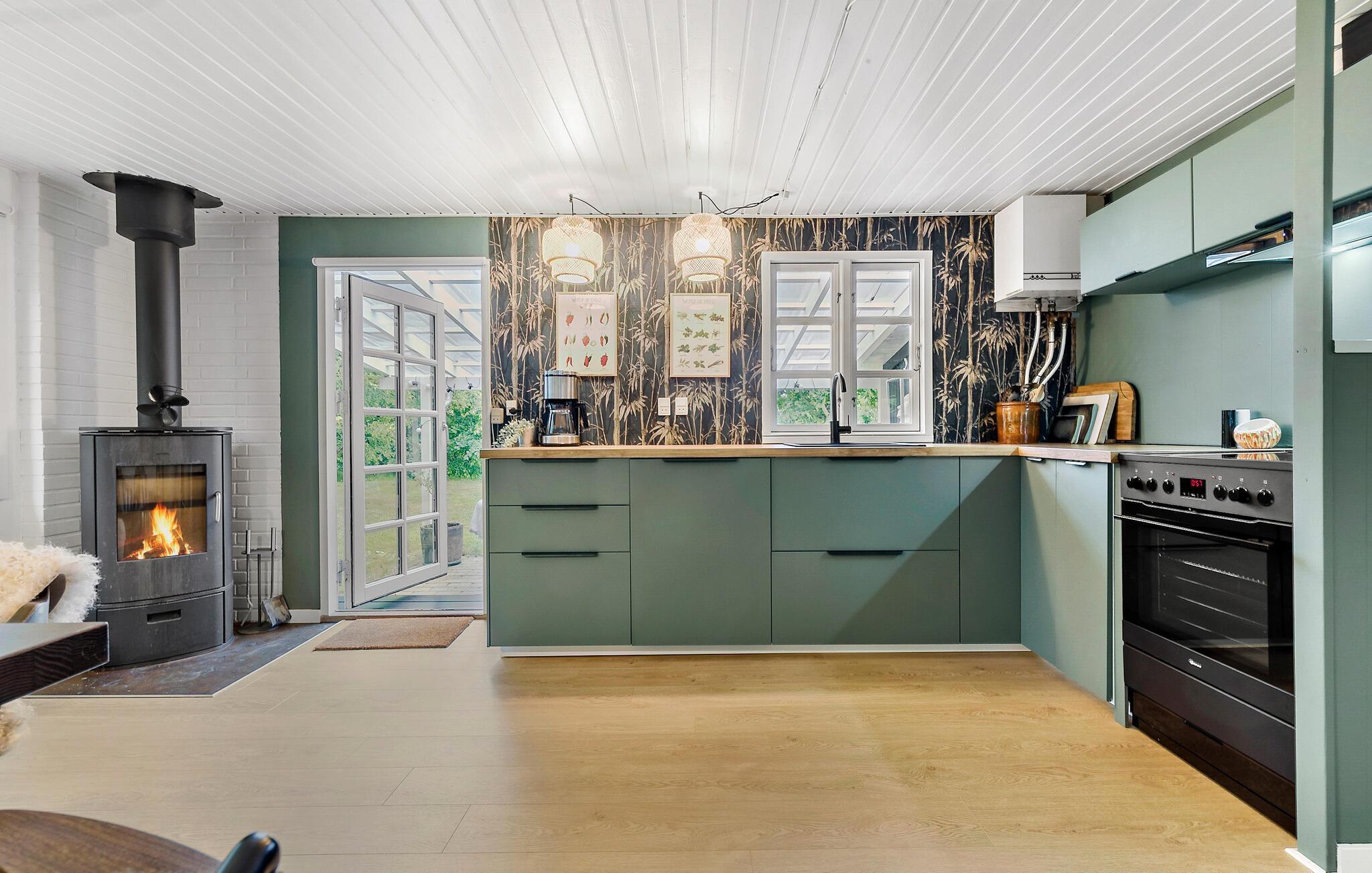 Træd ind, og lad jer fortrylle af husets charme. Smukt design, bløde farver og en indretning, der udstråler hygge, inviterer jer til at slappe af og nyde livet. Tænd op i brændeovnen, og nyd det flotte trædesign i de forskellige rum. Hyg jer i sofaen om aftenen, og brug projektoren til underholdende filmaftener. Husk at medbringe en computer til formålet. Ellers kan I også arrangere spilleaftener ved spisebordet.