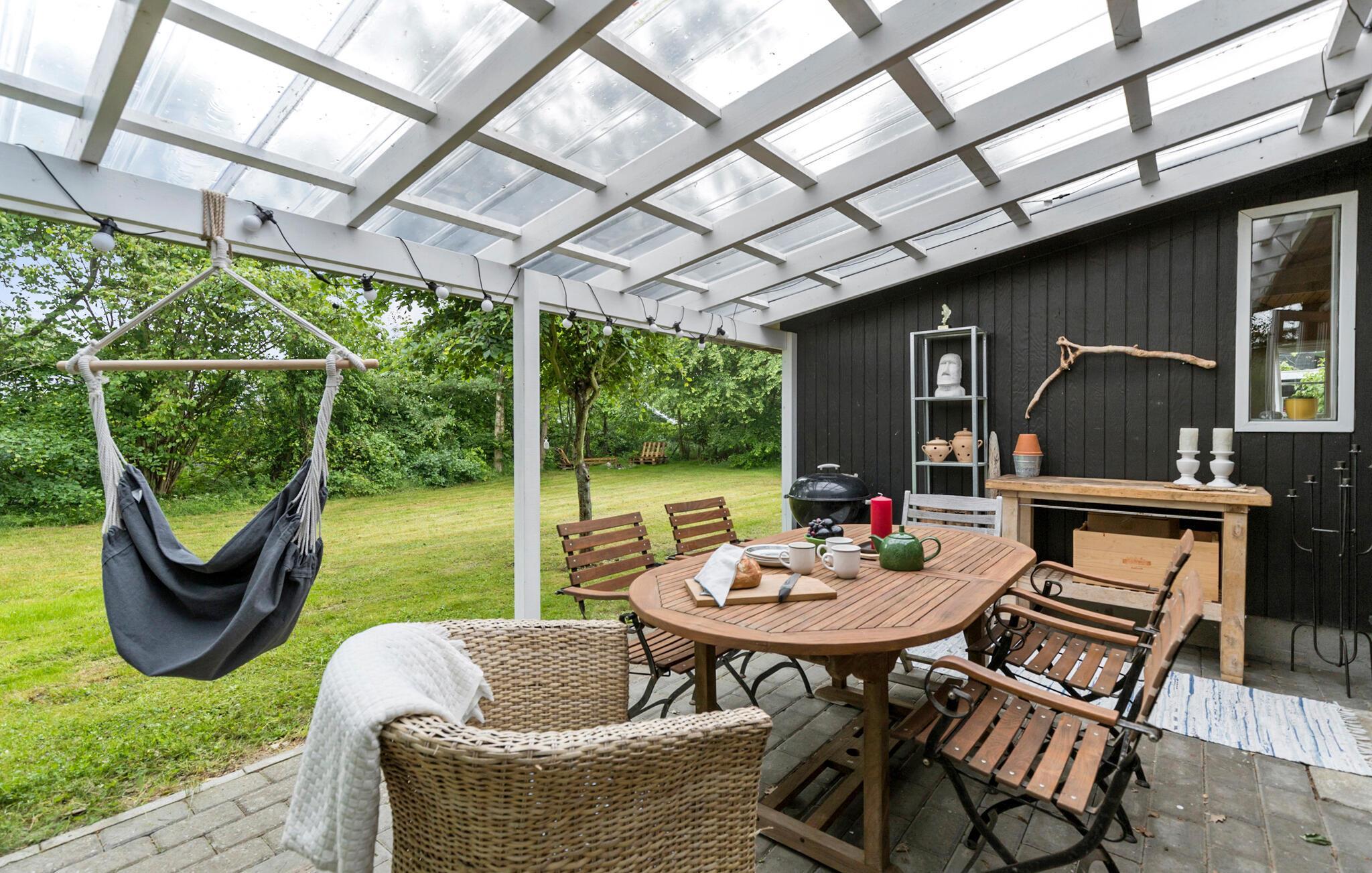 To skønne terrasseområder giver jer de bedste betingelser for at tilbringe tid udendørs, uanset om solen skinner eller det regner. Slap af i hængekøjen, grill og spil bold med dine børn på græsplænen.