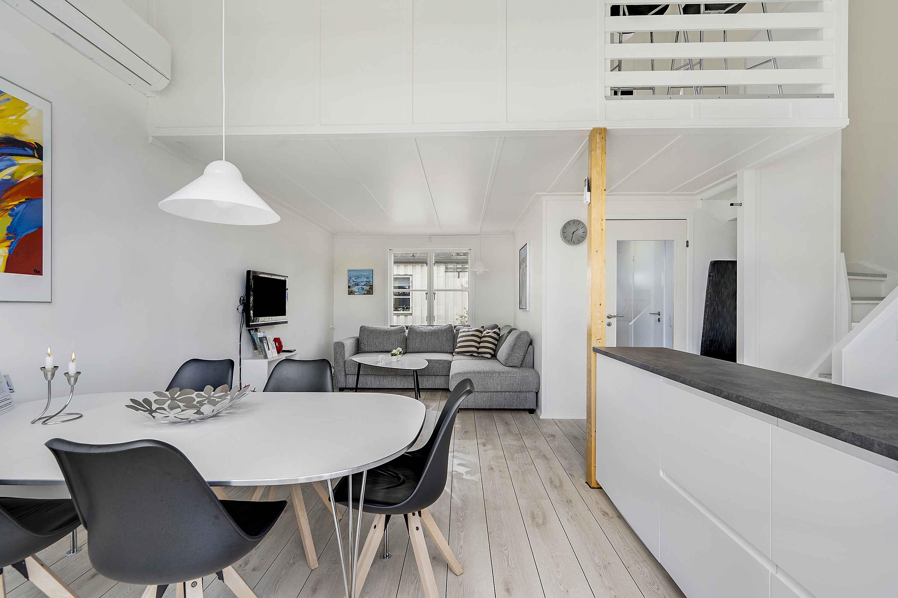 Det energivenlige og charmerende sommerhus på 63 m² ligger direkte ud til kanalen i Øer Maritime Ferieby. Her får I en velindrettet bolig med nye kvalitetsmøbler, to soveværelser og i alt fire sovepladser. Indretningen er enkel, funktionel og skabt til en afslappet ferie. Huset rummer entré med plads til overtøj, et badeværelse med stor brusekabine samt et åbent køkken-alrum. Køkkenet er veludstyret med service og redskaber til alle måltider. Stuen har stor sofa, tv, spiseplads og udgang til terrassen, hvor der står loungemøbler, hynder og grill. På første sal finder I master bedroom med dobbeltseng og skabe. Det mindre værelse har dobbeltseng og en hems. Det hele blev renoveret i 2021, så alt fremstår moderne og praktisk. Udenfor bliver feriemulighederne endnu bedre. Feriebyen har sportshal med padel, badminton og fitness. Udendørs findes minigolf, tennisbaner, boldbaner og en stor legeplads. De små øer, broer og kanaler giver området en helt særlig maritim stemning. Området er et oplagt valg til en aktiv ferie. I kan vandre eller cykle i Nationalpark Mols’ varierede landskaber og nyde både strand og skov. Turen til Ebeltoft byder på hyggelige gader og cafeer, mens golfbaner, Ree Park, Skandinavisk Dyrepark, Kattegatcentret og Djurs Sommerland ligger inden for kort køreafstand. Her får I en feriebolig, der kombinerer ro, aktivitet og naturoplevelser.