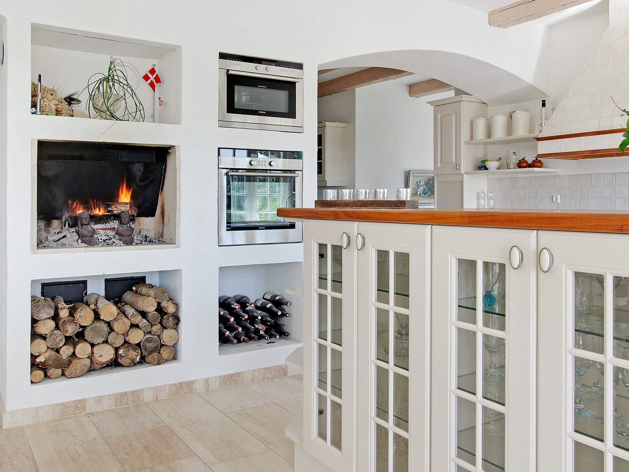 1 Opholdsstue: Pejs, brændeovn, dvd-afspiller, tv, høj stol