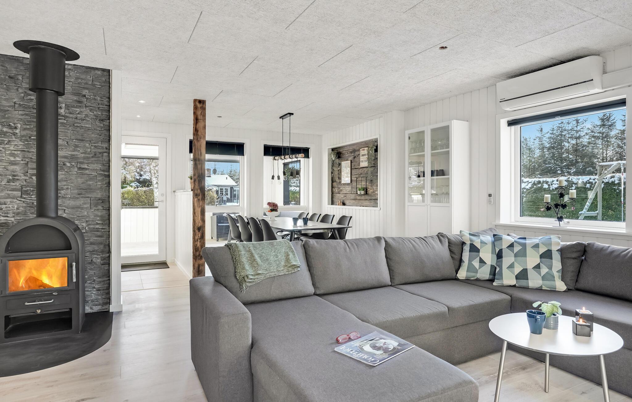 På en rolig beliggenhed tæt på Limfjorden og Kattegat finder I dette smukke feriehus med plads til den store familie. Det komfortabelt indrettede interiør giver et indbydende indtryk og indbyder til at føle sig godt tilpas. Tilbring hyggelige feriedage i de lyse værelser med jeres kære, og tilbered lækre måltider sammen i det store køkken. I kan underholde jer selv om aftenen med brætspil med de bløde lyde fra brændeovnen i baggrunden.