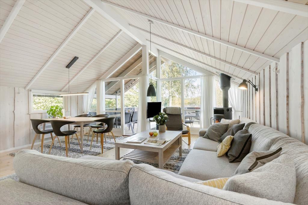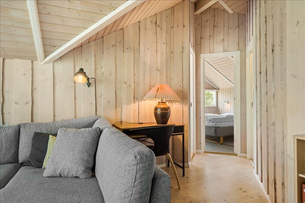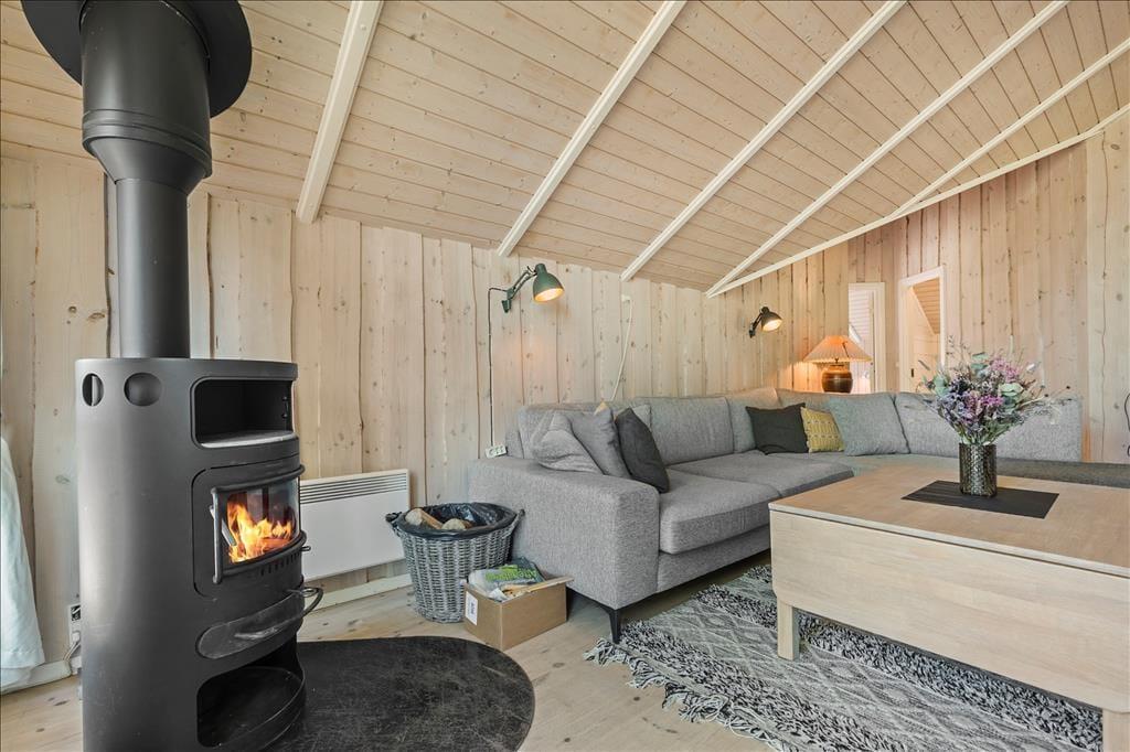 Inde i huset bliver I mødt af en lys og behagelig atmosfære, hvor de store vinduer lader lyset strømme ind. Stuen er indrettet med komfortable møbler og en hyggelig brændeovn, der indbyder til afslapning med en god bog eller film via Chromecast og gratis WiFi. Det åbne køkken er veludstyret med opvaskemaskine, køleskab med fryser og alt, hvad I skal bruge for at lave feriens måltider. Huset har plads til seks personer fordelt på to soveværelser med dobbeltsenge og et værelse med enkeltsenge – perfekt til både familier og venner. Badeværelset er som en lille wellness-oase med wc, bruseniche, sauna og spabad, hvor I kan forkæle jer selv efter en lang dag med oplevelser.