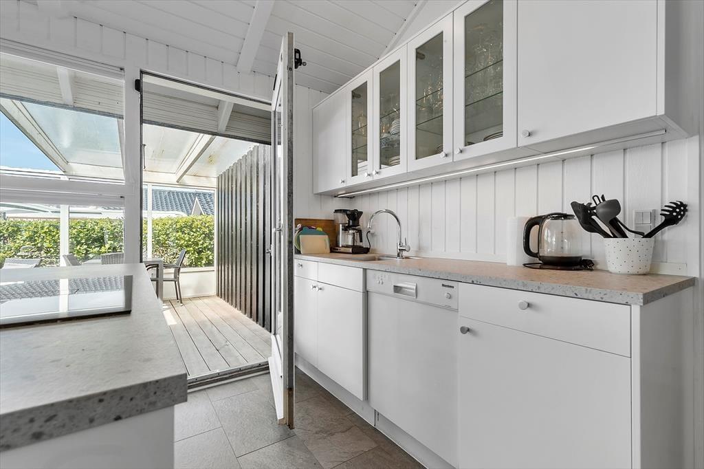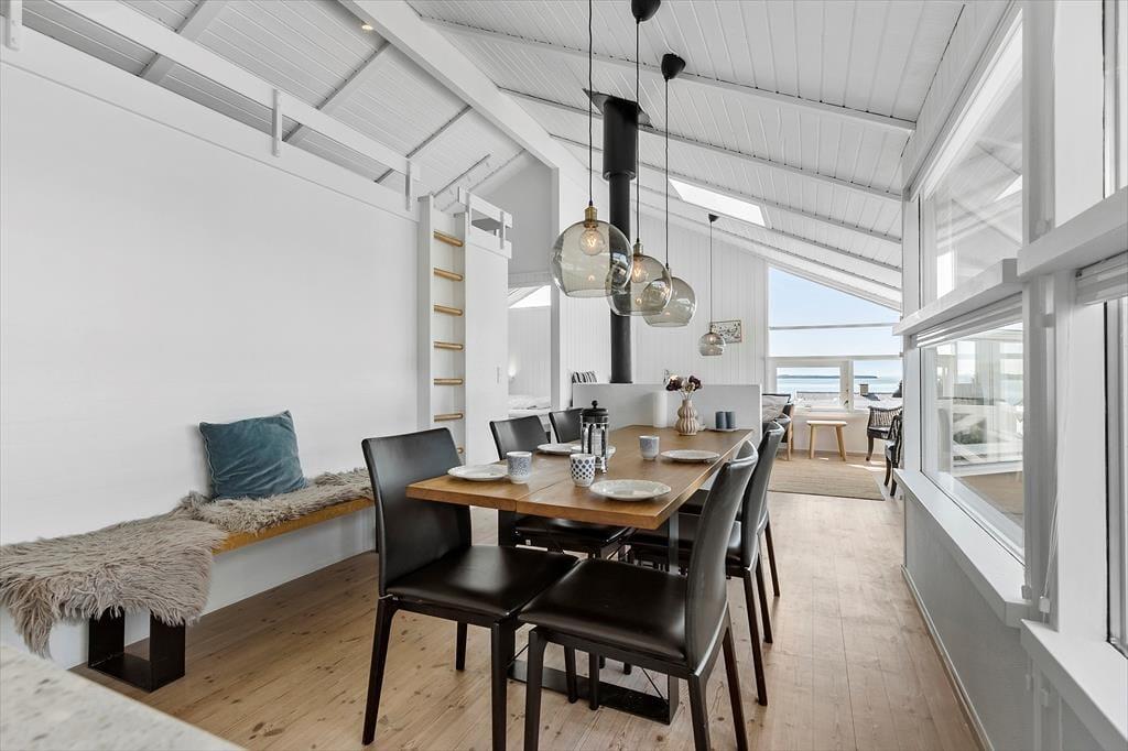 Her finder du et lyst og hyggelig indrettet køkken alrum samt stue med gode møbler. I forbindelse med stuen ligger køkkenet, hvorfra du naturligvis også kan se ud på vandet, mens der laves mad. Du har også udgang til en overdækket skøn terrasse med 180 graders udsigt over Ebeltoft Vig.