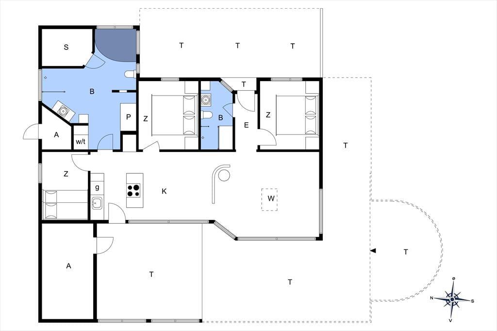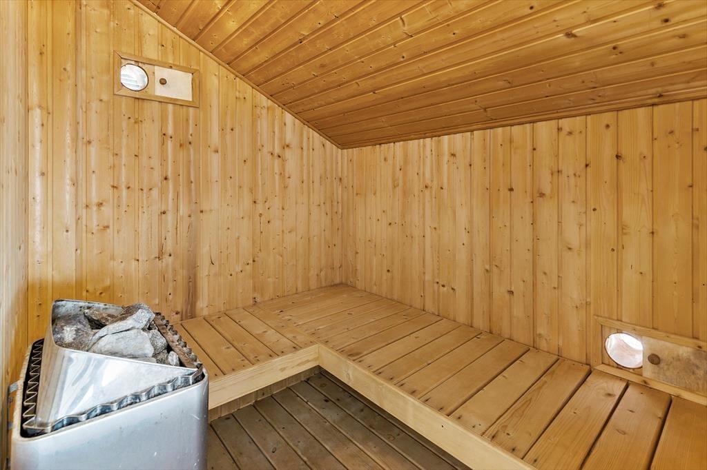 2 stk. badeværelserne det ene med spa og sauna, det andet med bruseniche. Husets sovepladser fordeler sig på 3 soveværelser.