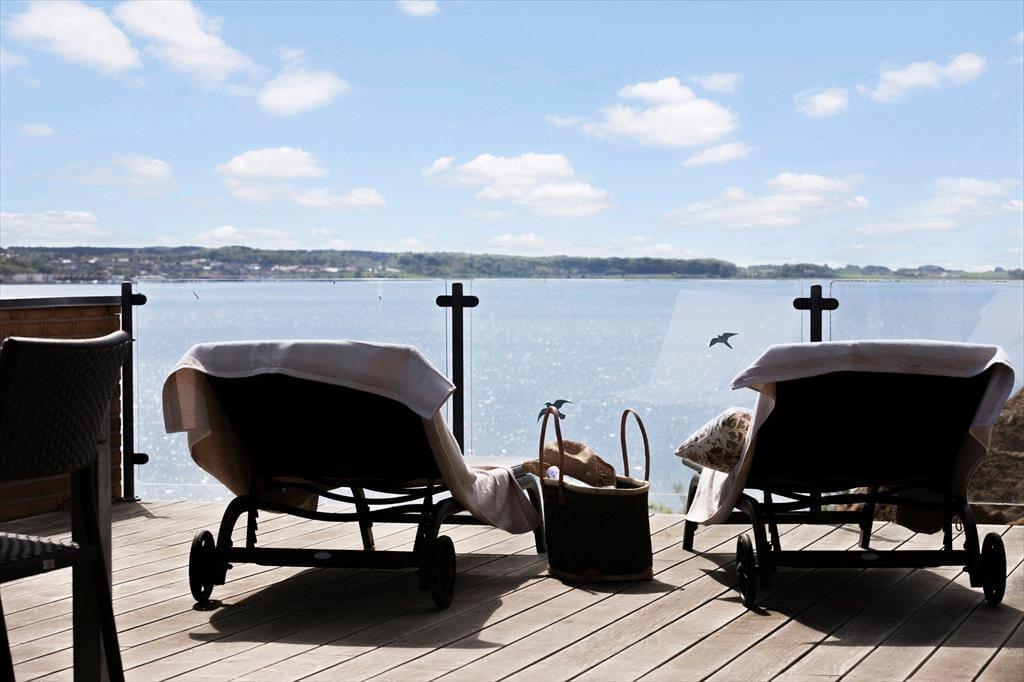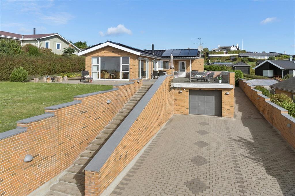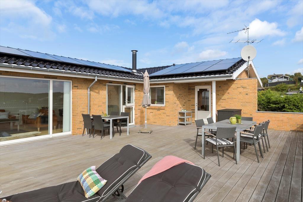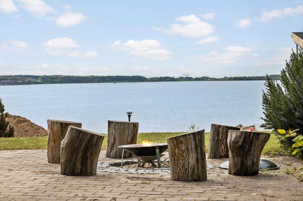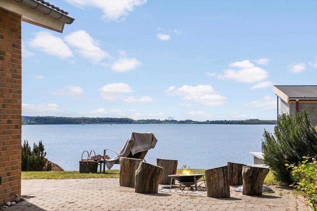 Når solen stråler ned fra en klar himmel, er det svært at modstå fristelsen til at nyde livet på den store, indbydende terrasse. Her kan du vælge din perfekte spot – måske starter du dagen med en dampende kop kaffe i hånden, mens du lader blikket glide ud over den betagende panoramaudsigt over Ebeltoft Vig. Når aftenen falder på, tændes grillen eller bål stedet, og med havemøblerne samlet omkring er der skabt den ideelle ramme til lange, hyggelige sommeraftener under åben himmel. Huset, som ligger højt med adgang via en trappe, giver dig en helt uforstyrret udsigt – som om verden står stille, og det hele er dit eget lille ferieparadis.