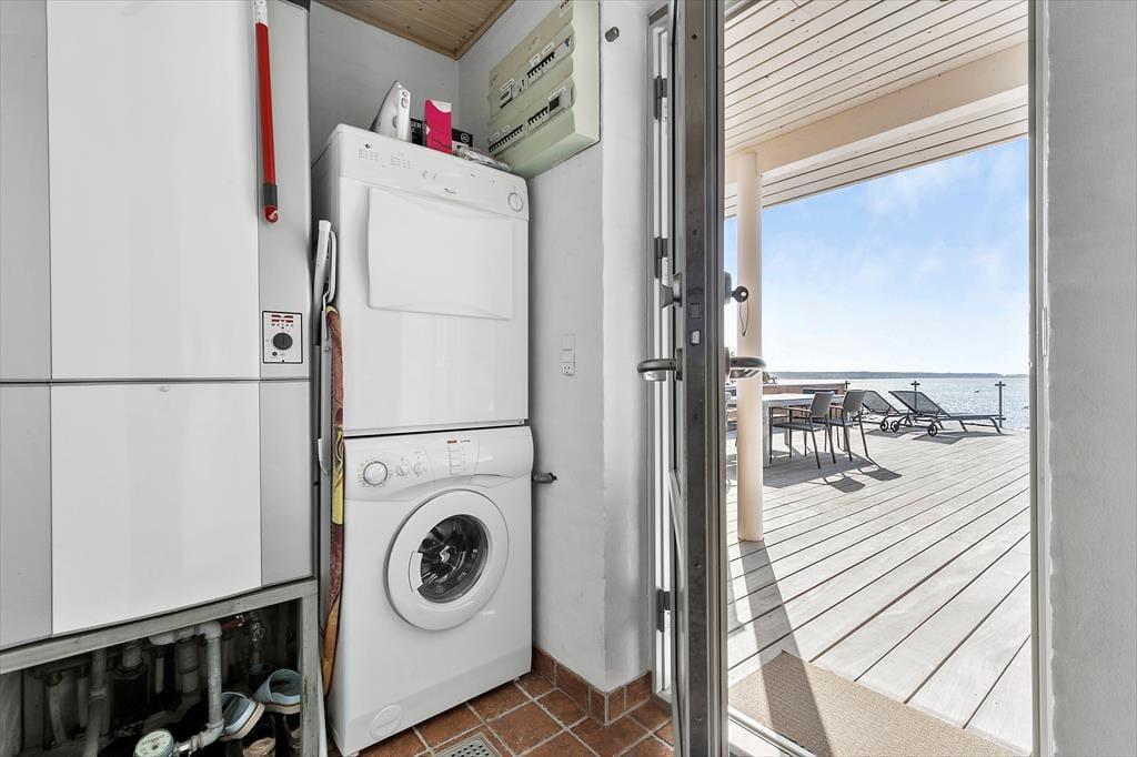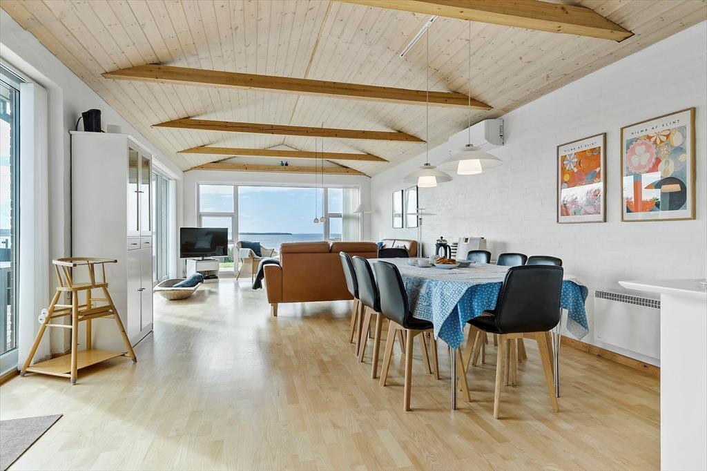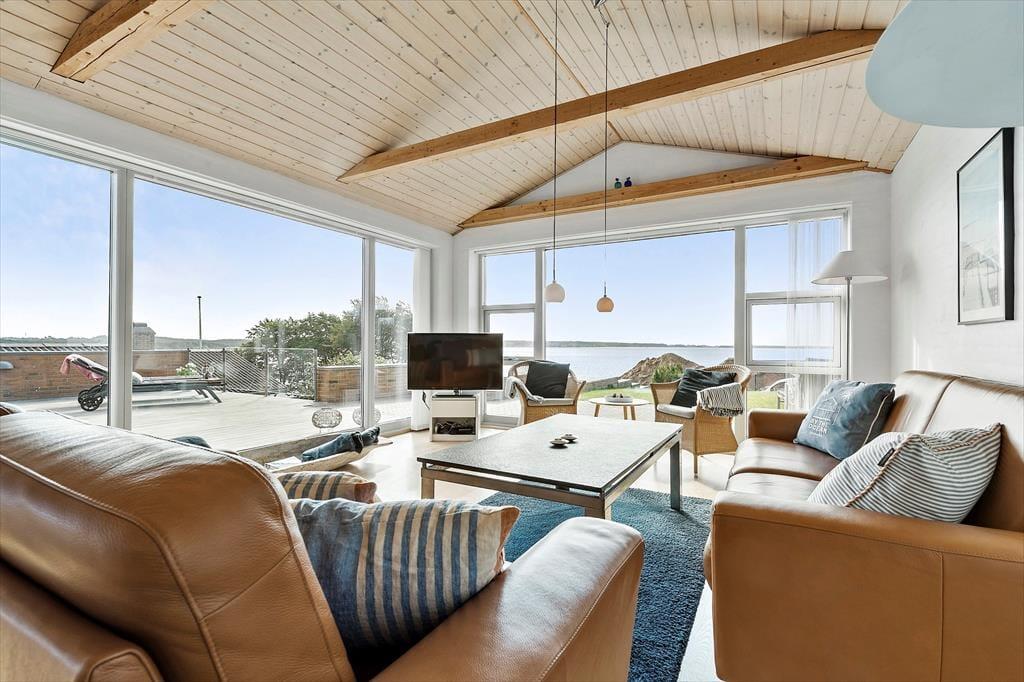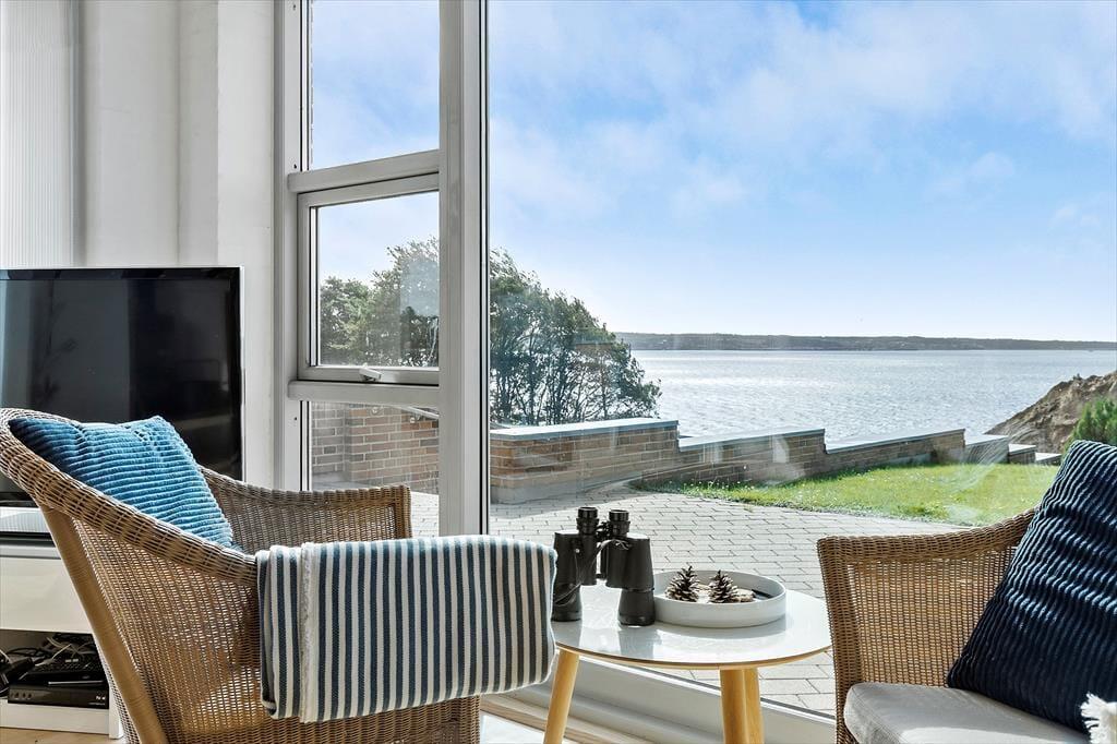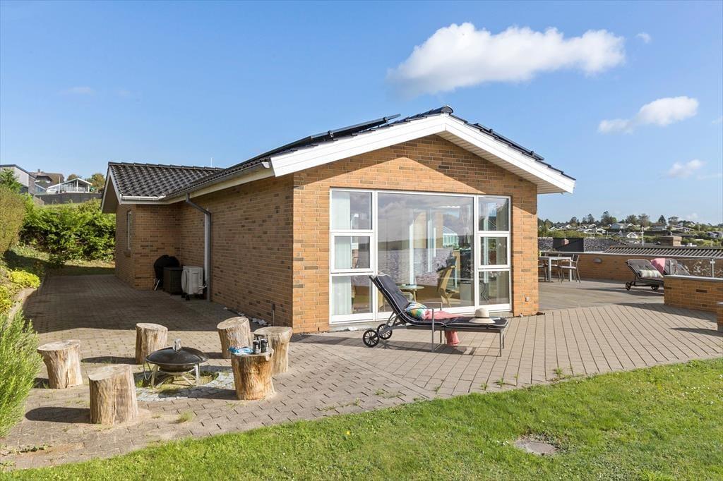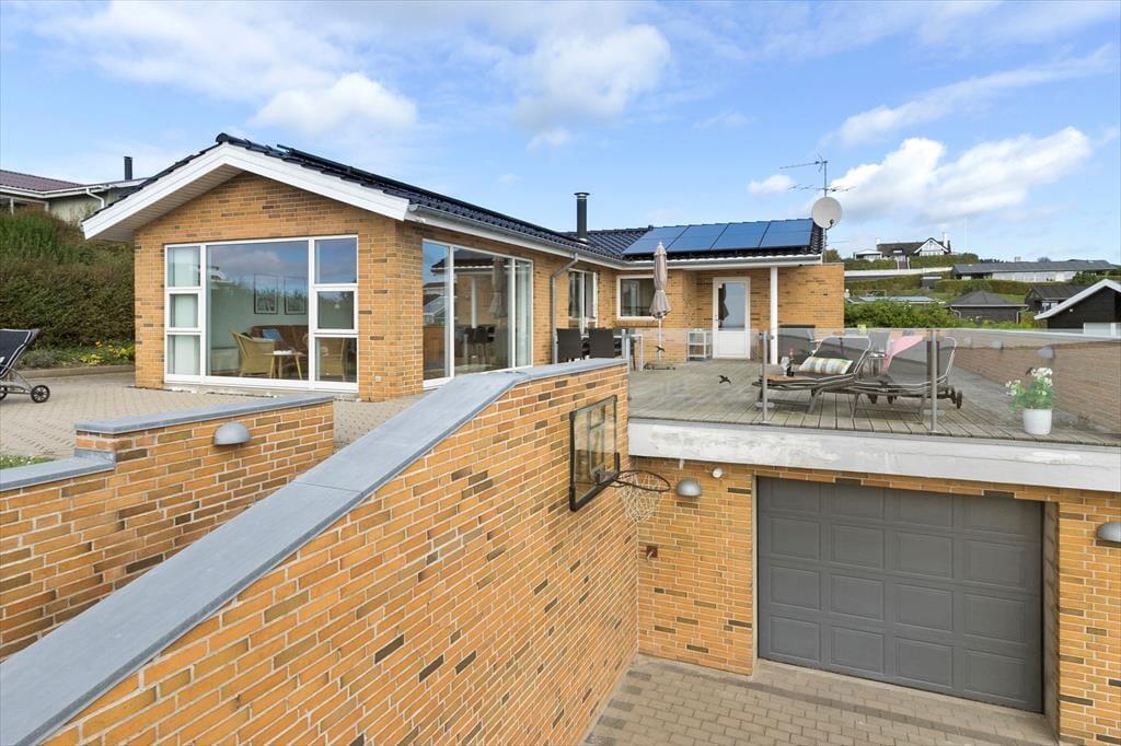 Når solen stråler ned fra en klar himmel, er det svært at modstå fristelsen til at nyde livet på den store, indbydende terrasse. Her kan du vælge din perfekte spot – måske starter du dagen med en dampende kop kaffe i hånden, mens du lader blikket glide ud over den betagende panoramaudsigt over Ebeltoft Vig. Når aftenen falder på, tændes grillen eller bål stedet, og med havemøblerne samlet omkring er der skabt den ideelle ramme til lange, hyggelige sommeraftener under åben himmel. Huset, som ligger højt med adgang via en trappe, giver dig en helt uforstyrret udsigt – som om verden står stille, og det hele er dit eget lille ferieparadis.