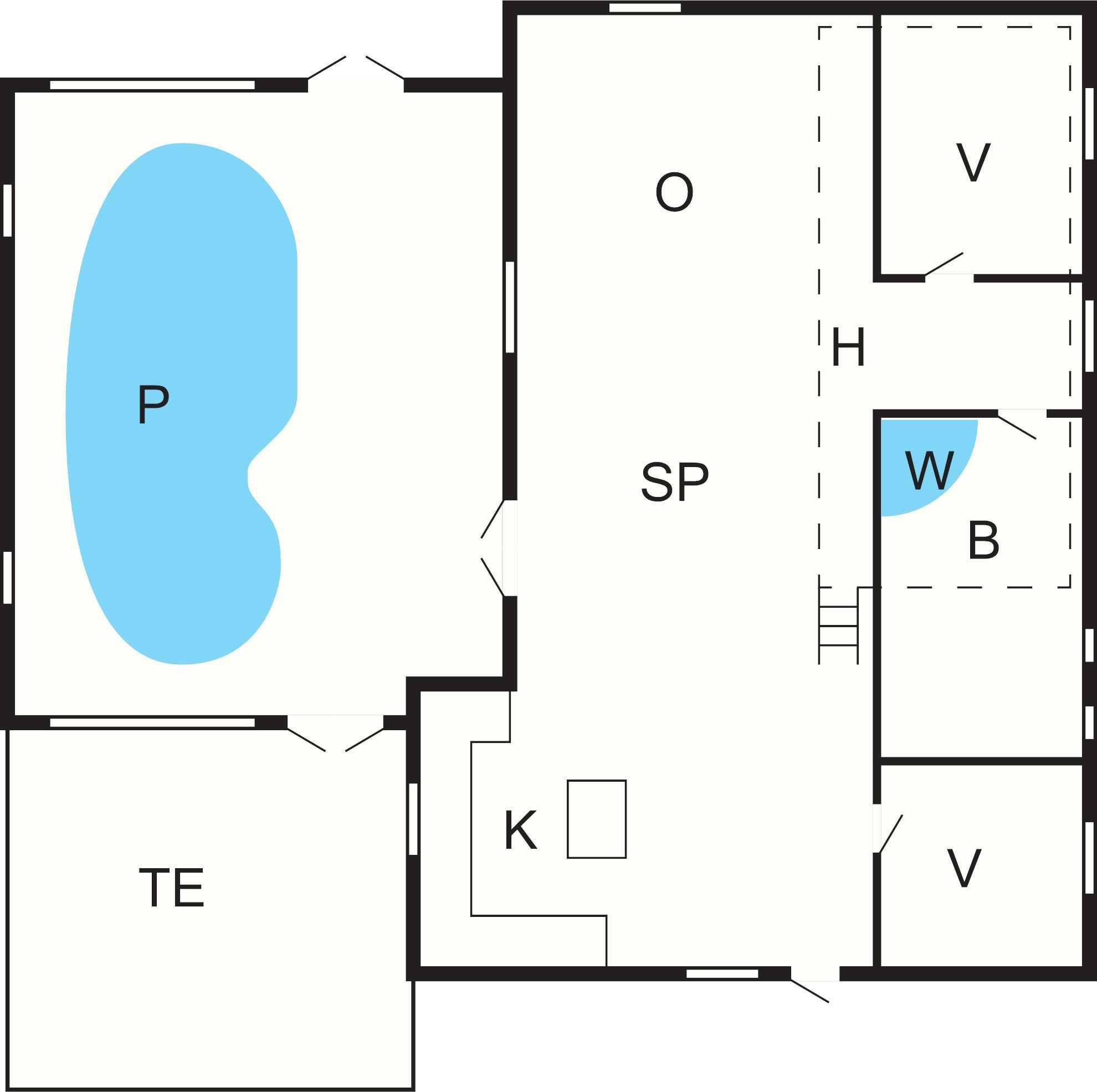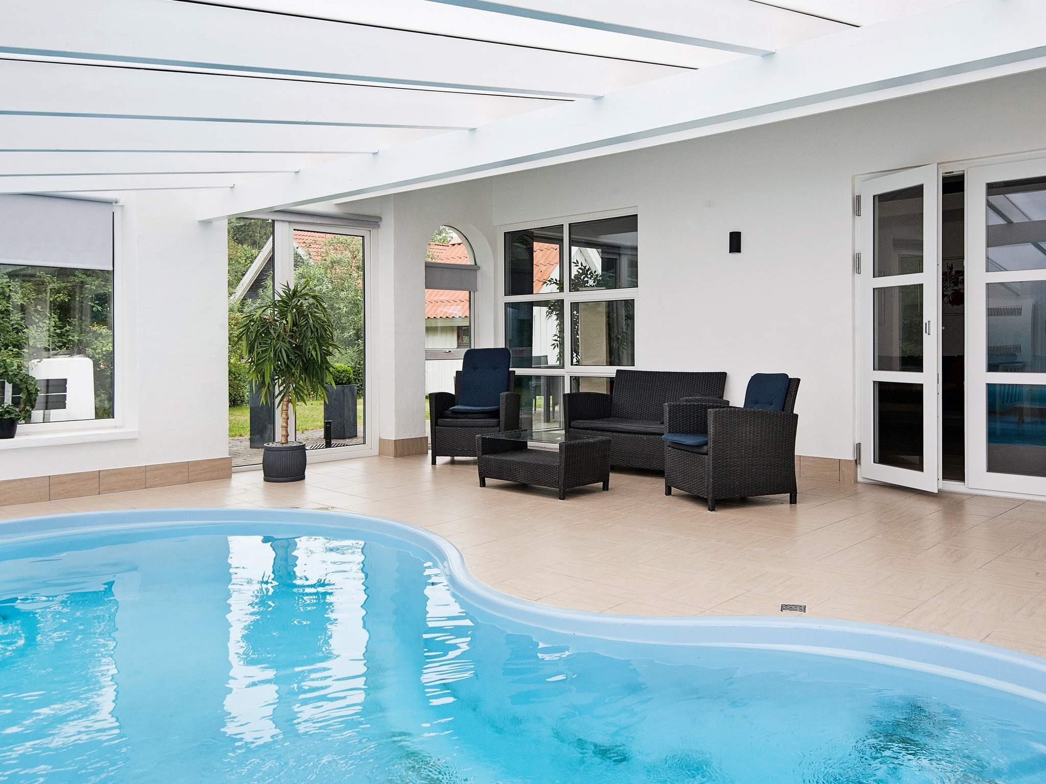 Sommerhus i topklasse med spabad og en stor swimmingpool. Swimmingpoolen er 8-tals formet. Der er udsyn direkte til poolrummet, så der er mulighed for holde et vågent øje.