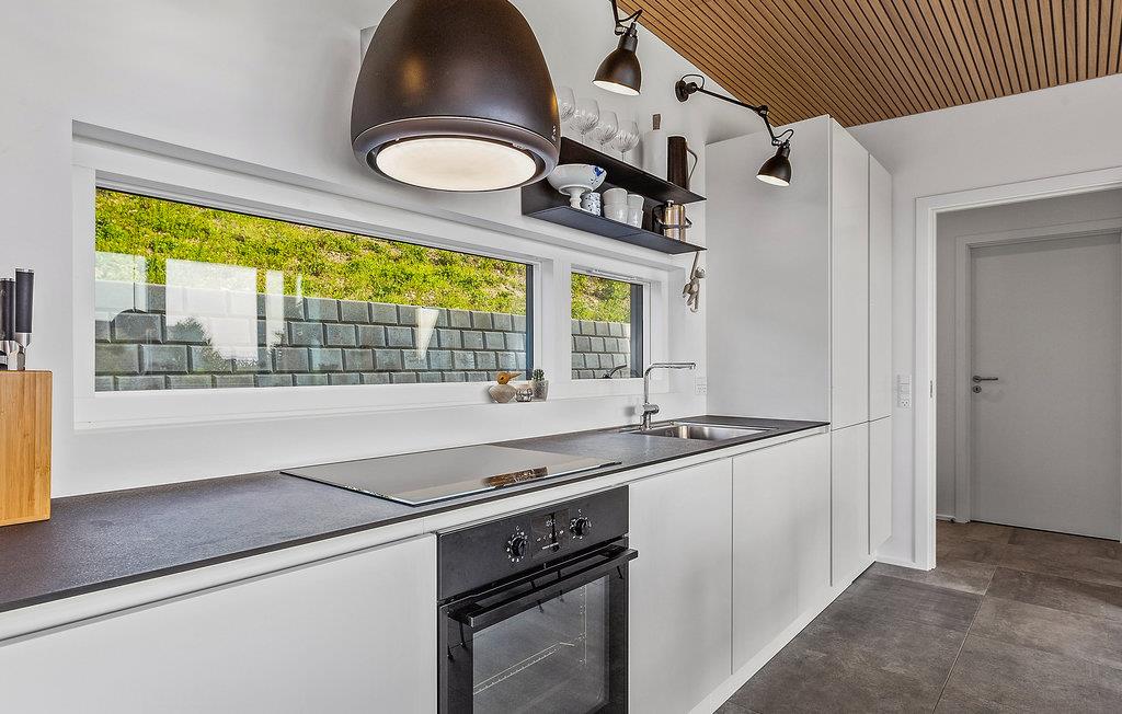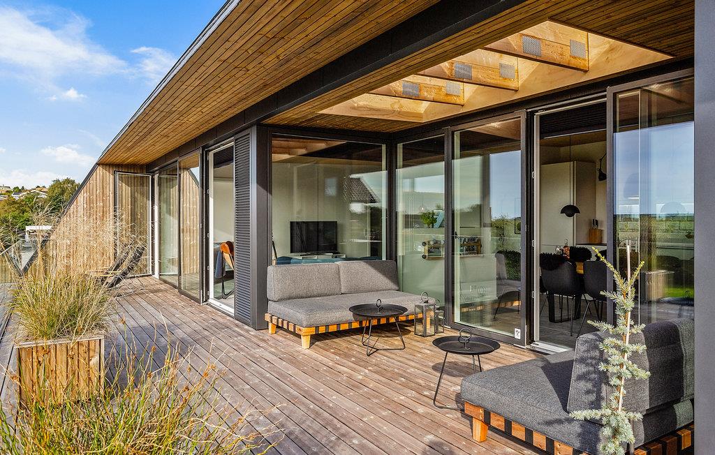 Moderne feriehus med panoramaudsigt og luksuskøkken ved Egsmark Strand.