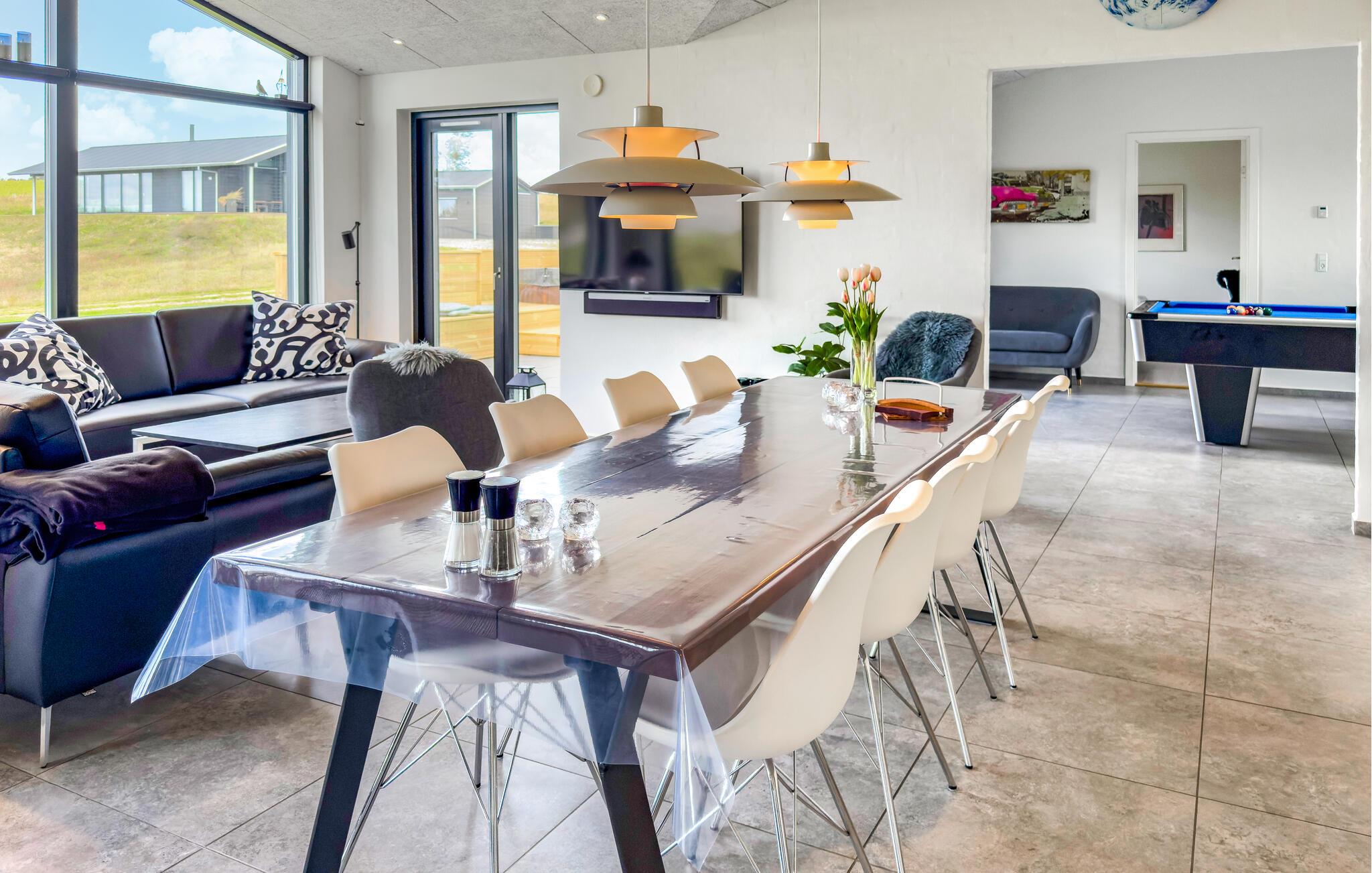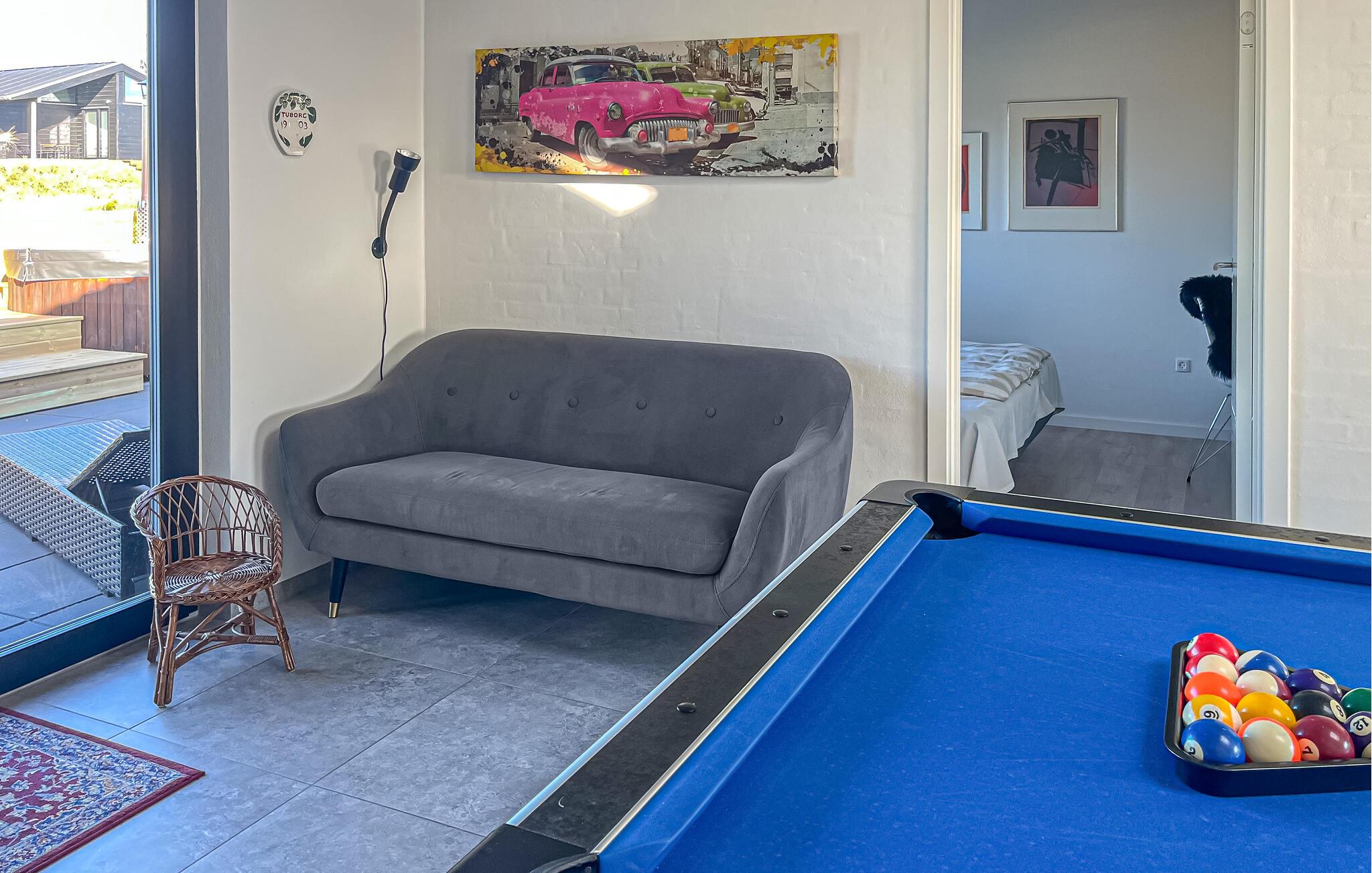 Leder I efter et sommerhus, hvor komfort, hygge og gode oplevelser går hånd i hånd, så har dette moderne og rummelige feriehus de perfekte rammer til en afslappende og aktiv ferie. Her får I en feriebase, hvor både store og små kan finde plads til leg, afslapning og uforglemmelige oplevelser – midt i hjertet af Djursland. Indretningen er lys, stilren og gennemtænkt med god plads til både familie og venner. I aktivitetsrummet kan I udfordre hinanden i bordtennis, pool eller billard. Eller I kan dyste på Arcado-spillemaskinen med sjove spil fra 80’erne.