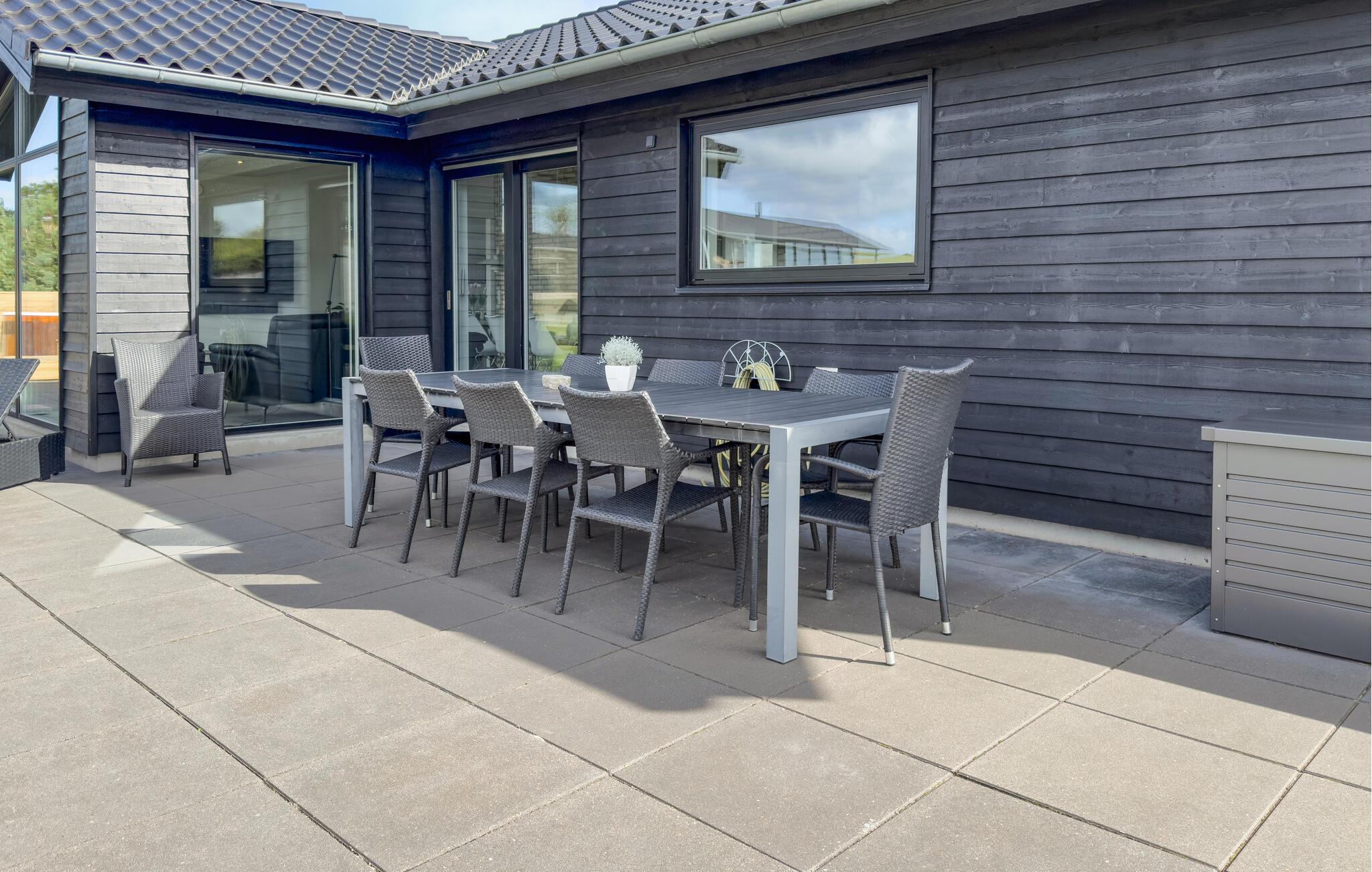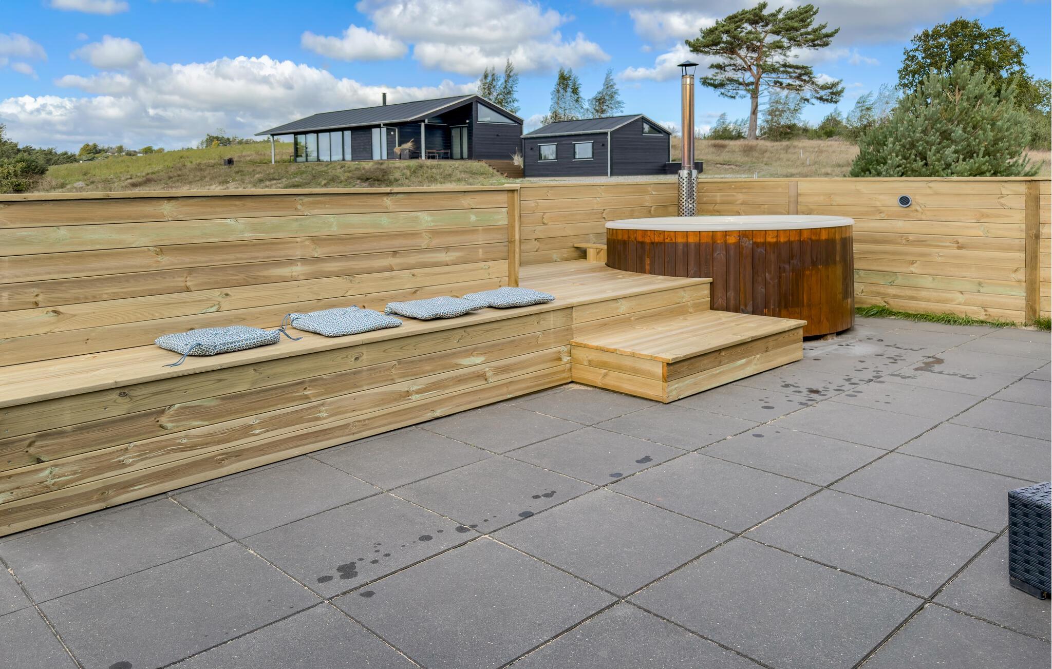 Luksus sommerhus i Egsmark Strand med vildmarksbad, aktivitetsrum og flere terrasser nær børnevenlig strand.