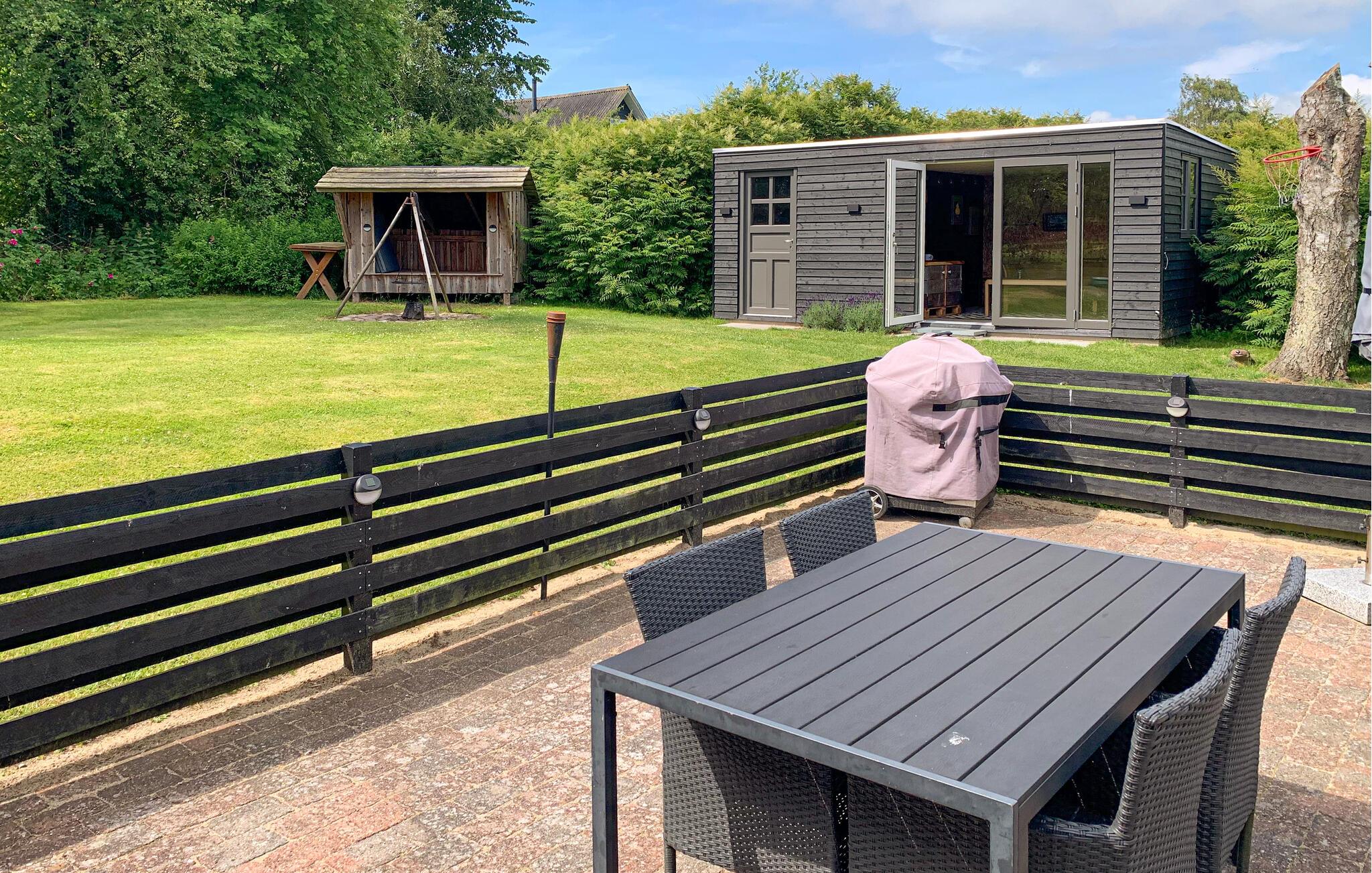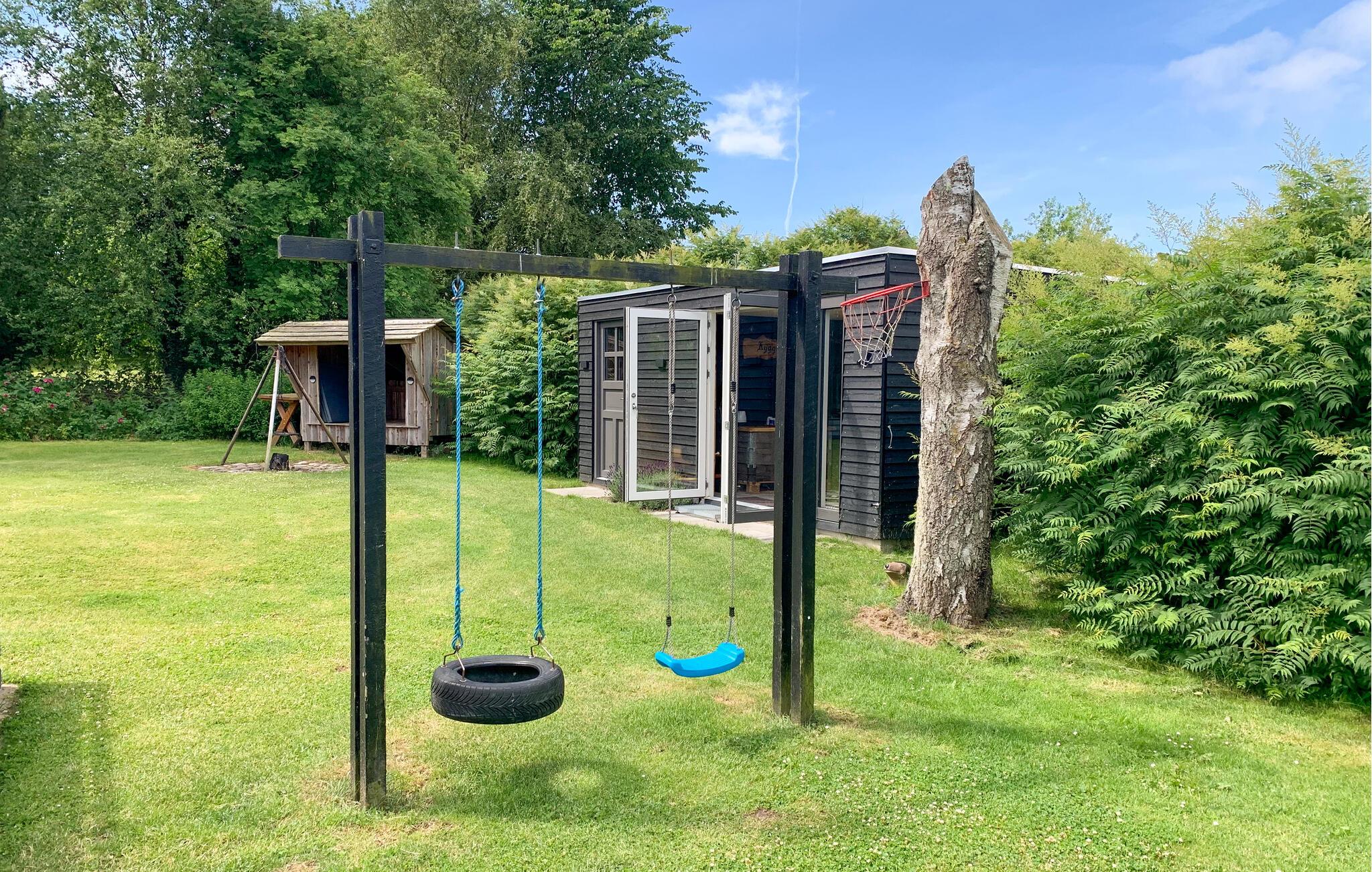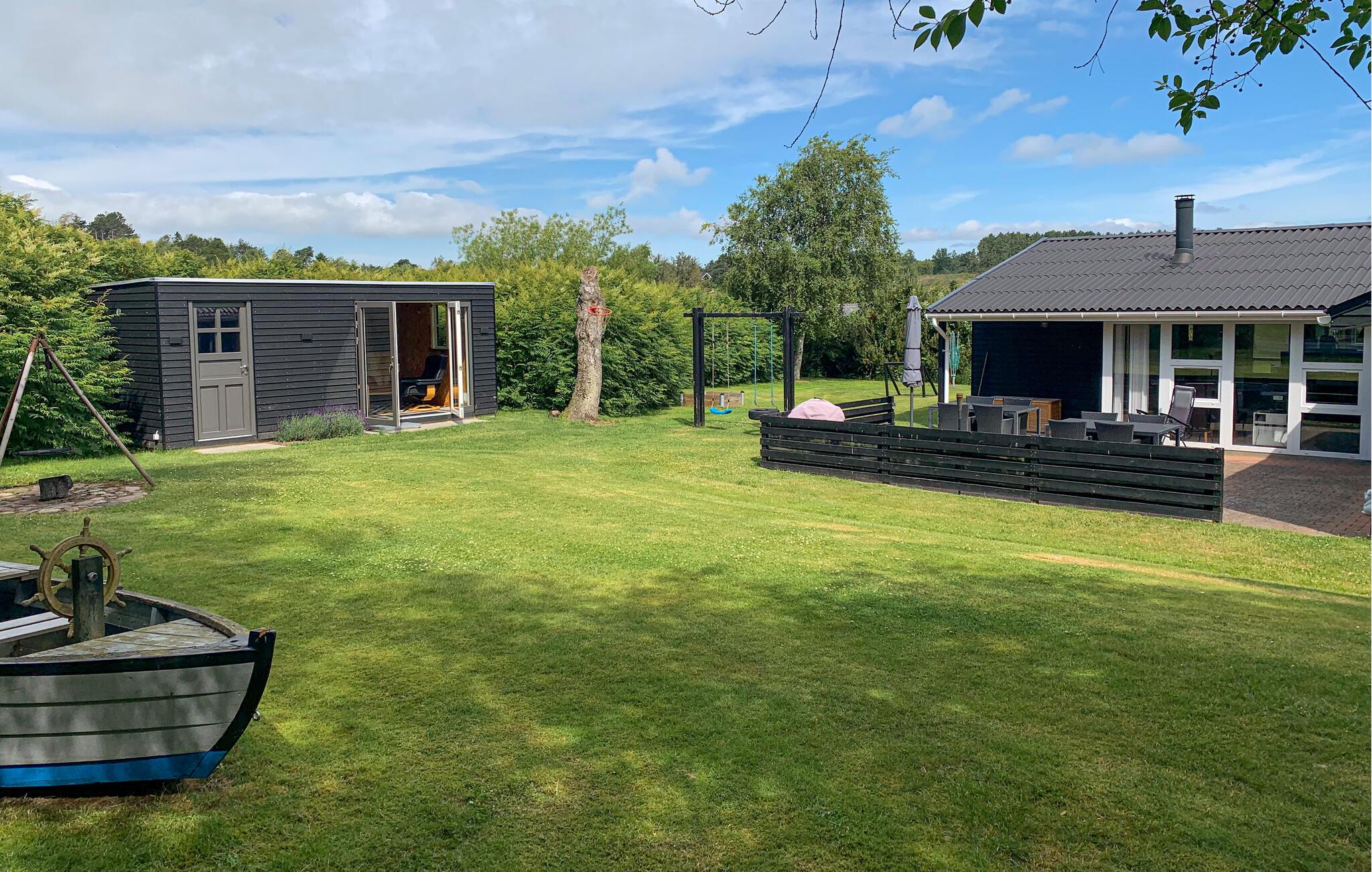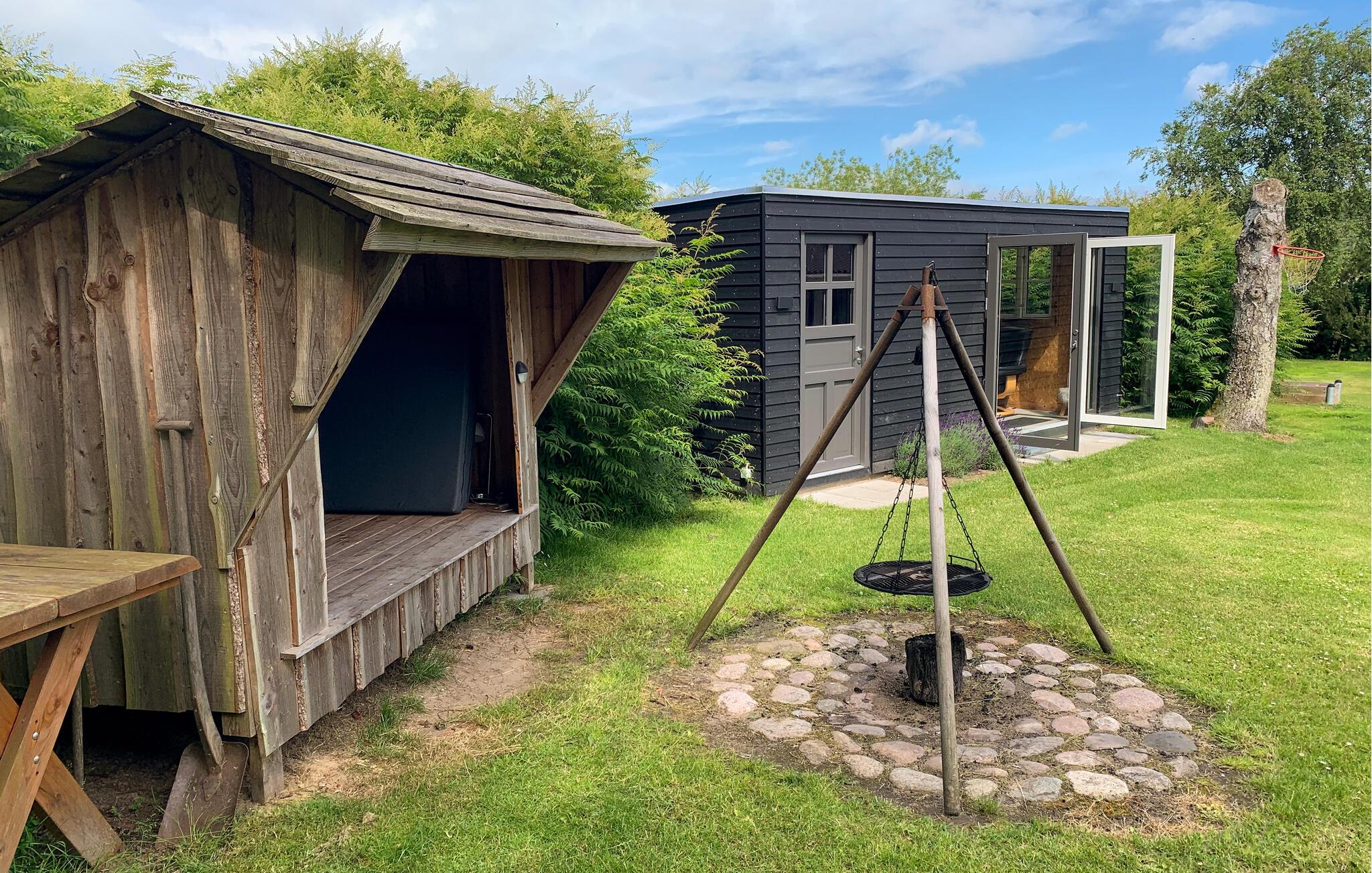 Huset ligger på en stor grund med sydvestvendt terrasse med grill, og havemøbler, gynge, fodboldmål, basketballnet og sandkasse til de små. Der er også mulighed for at gå på opdagelse på den store naturgrund. Hvor der er opsat shelter med madrasser, samt bålplads med grill, mens I også kan nyde en hyggelig stund i det charmerende anneks.