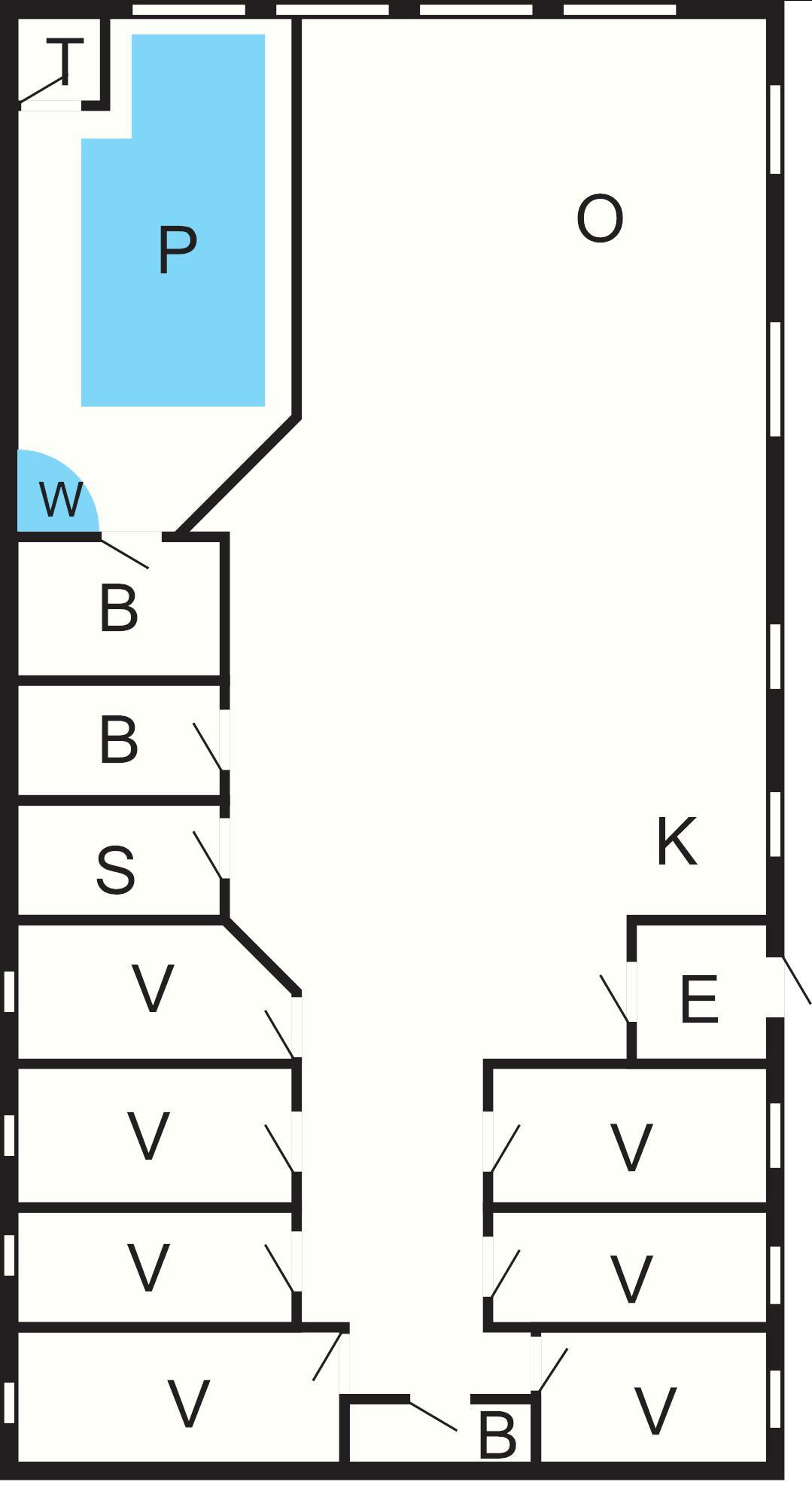 7 Soveværelser: (1DS)+(1DS)+(1DS)+(1DS)+(1DS)+(1DS)+(2S), barneseng