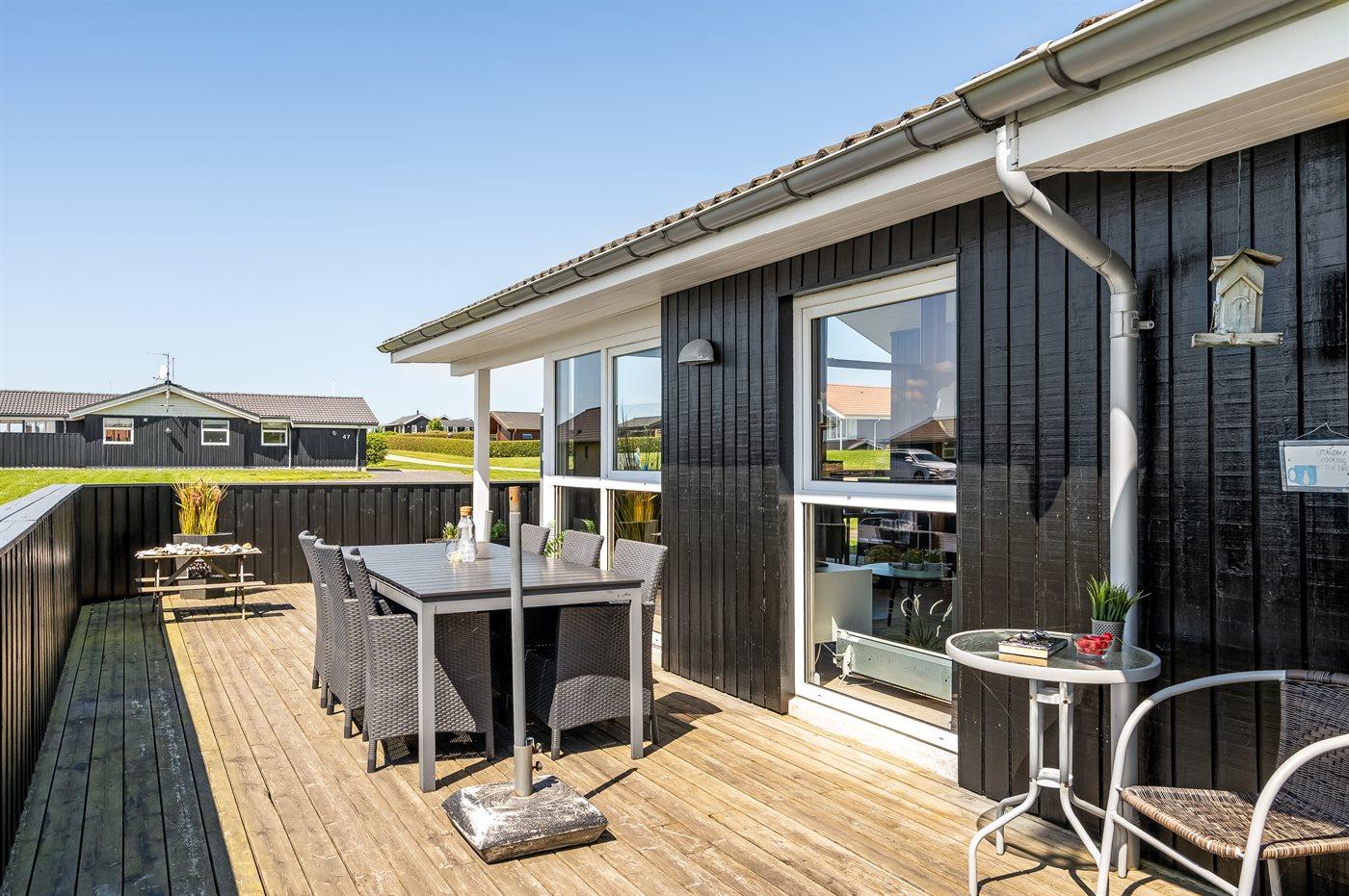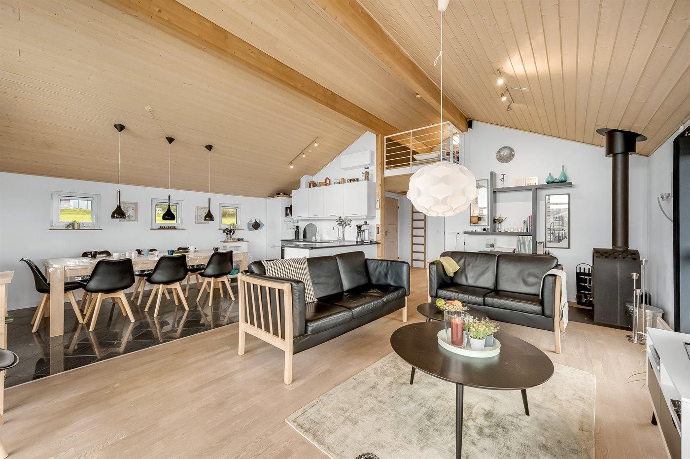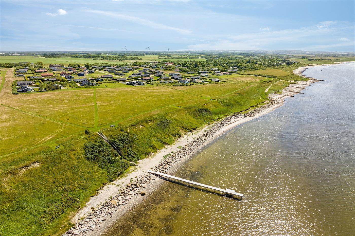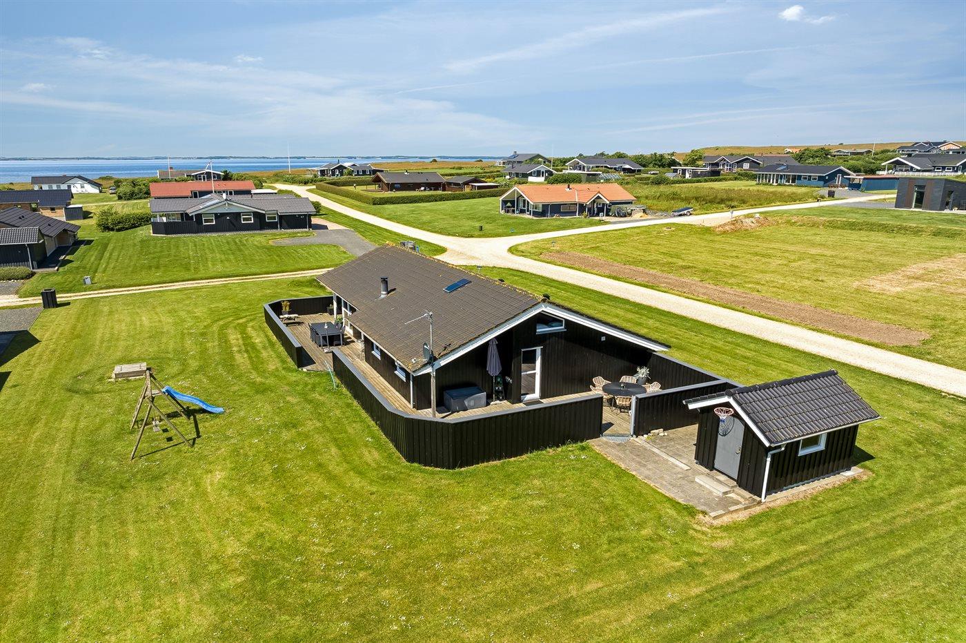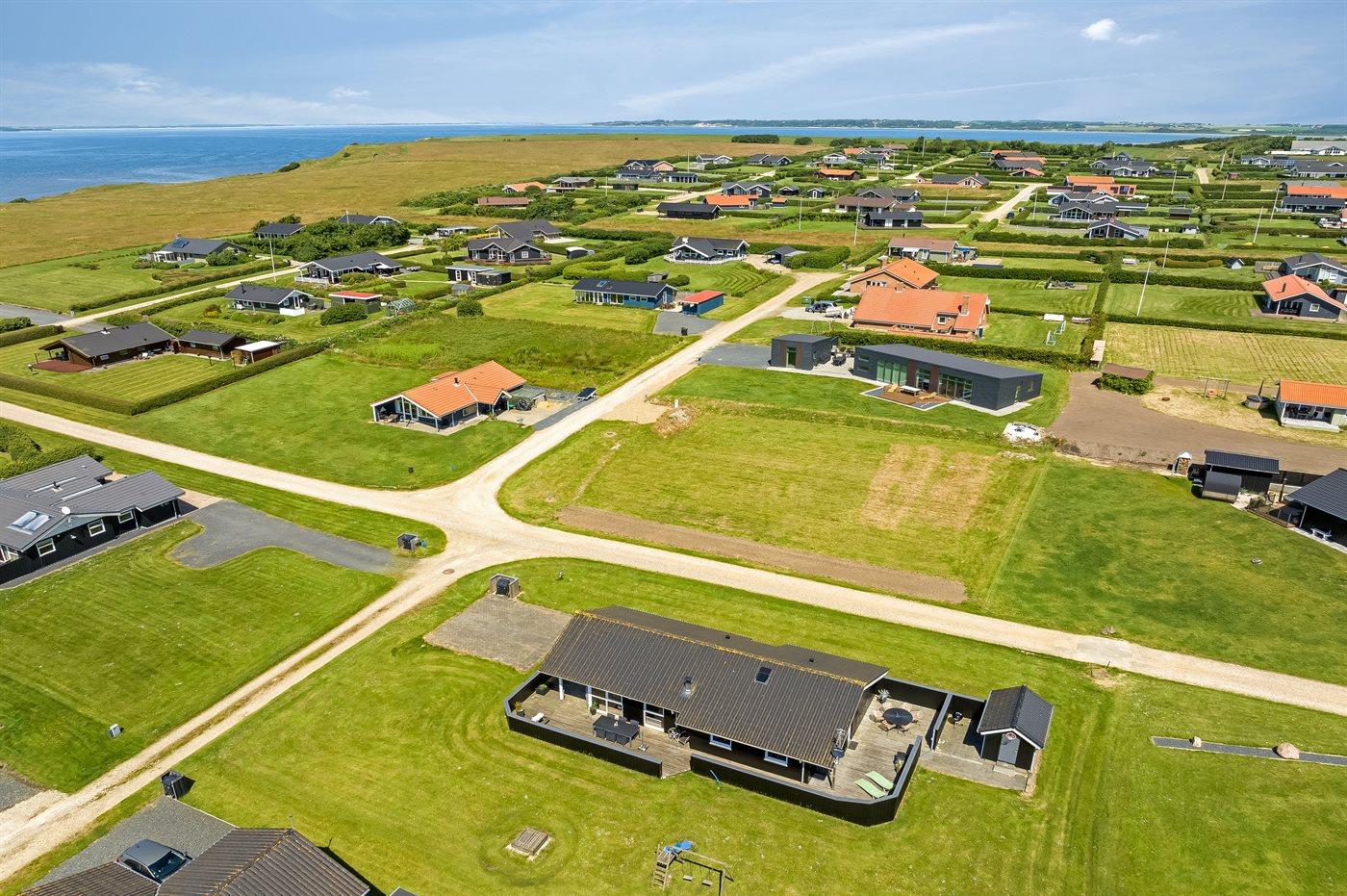 Særdeles flot sommerhus i træ, bygget i 2005, beliggende på en dejlig natur-/havegrund kun 300 m fra vandet. Fra såvel hus som grund er der en flot udsigt over vandet. Til huset hører dejlig stor såvel åben som overdækket terrasse med diverse havemøbler. Flotte opvarmede klinkegulve i køkken, spiseafdeling og på badeværelse. Trægulve i de øvrige rum. Lyse malede vægge samt trælofter. Dejligt stort badeværelse med bruseniche, lækker 2-pers. spa samt direkte adgang til husets sauna. Endvidere dejligt gæstetoilet. Køkken i åben forbindelse med stuen, der er udstyret med bl.a. opvaskemaskine, mikrobølgeovn, varmluftovn, komfur med keramiske kogeplader og fryser. Dejlig stor og pænt møbleret stue med brændeovn, DVD-afspiller, TV med parabol (digital) og stereoanlæg med CD-afspiller samt gratis trådløs internetforbindelse. Husets sovepladser fordeler sig på 2 soverum med dobbeltseng og 1 med 2 enkeltsenge samt god hems med 2 sovepladser til børn. Af yderligere udstyr kan vaskemaskine samt tørretumbler nævnes og der er installeret energibesparende varmepumpe. Til de mindste feriegæster findes der høj barnestol og barneseng samt sandkasse, gynge, rutsjebane og diverse spil. Et virkelig dejligt sommerhus på alle årstider, beliggende i et dejligt ferieområde med mange aktivitetsmuligheder, bl.a. windsurfing, fiskeri, Put & Take, badning samt gåture i den dejlige natur.