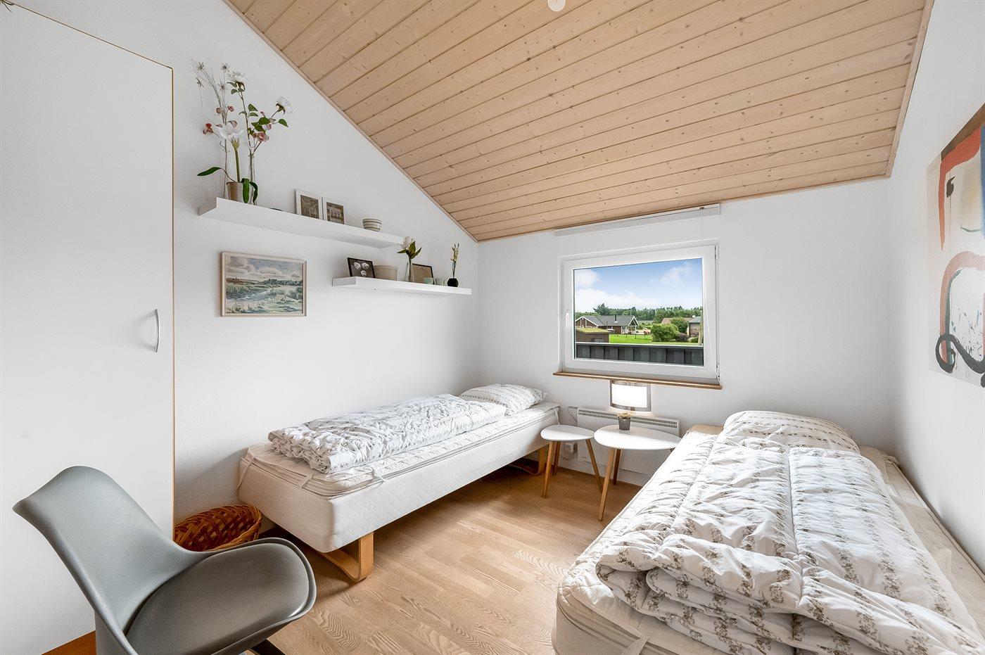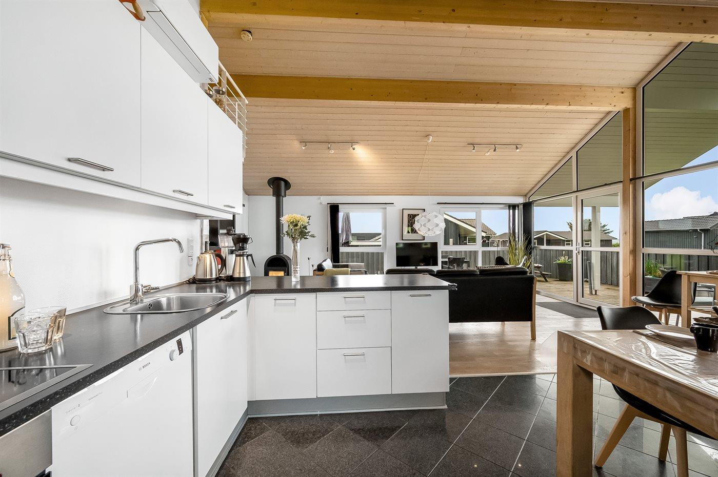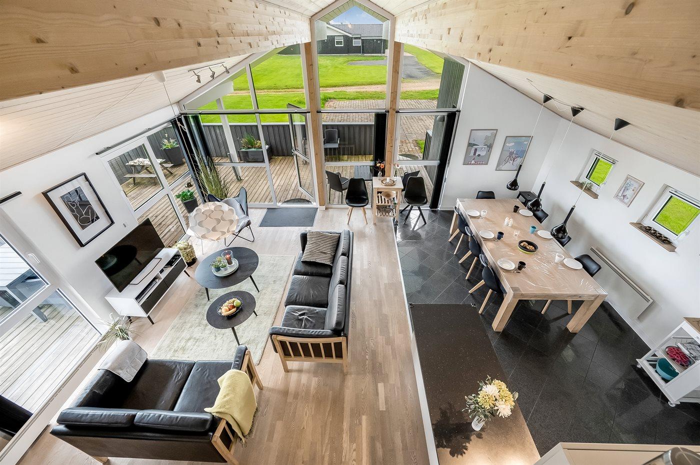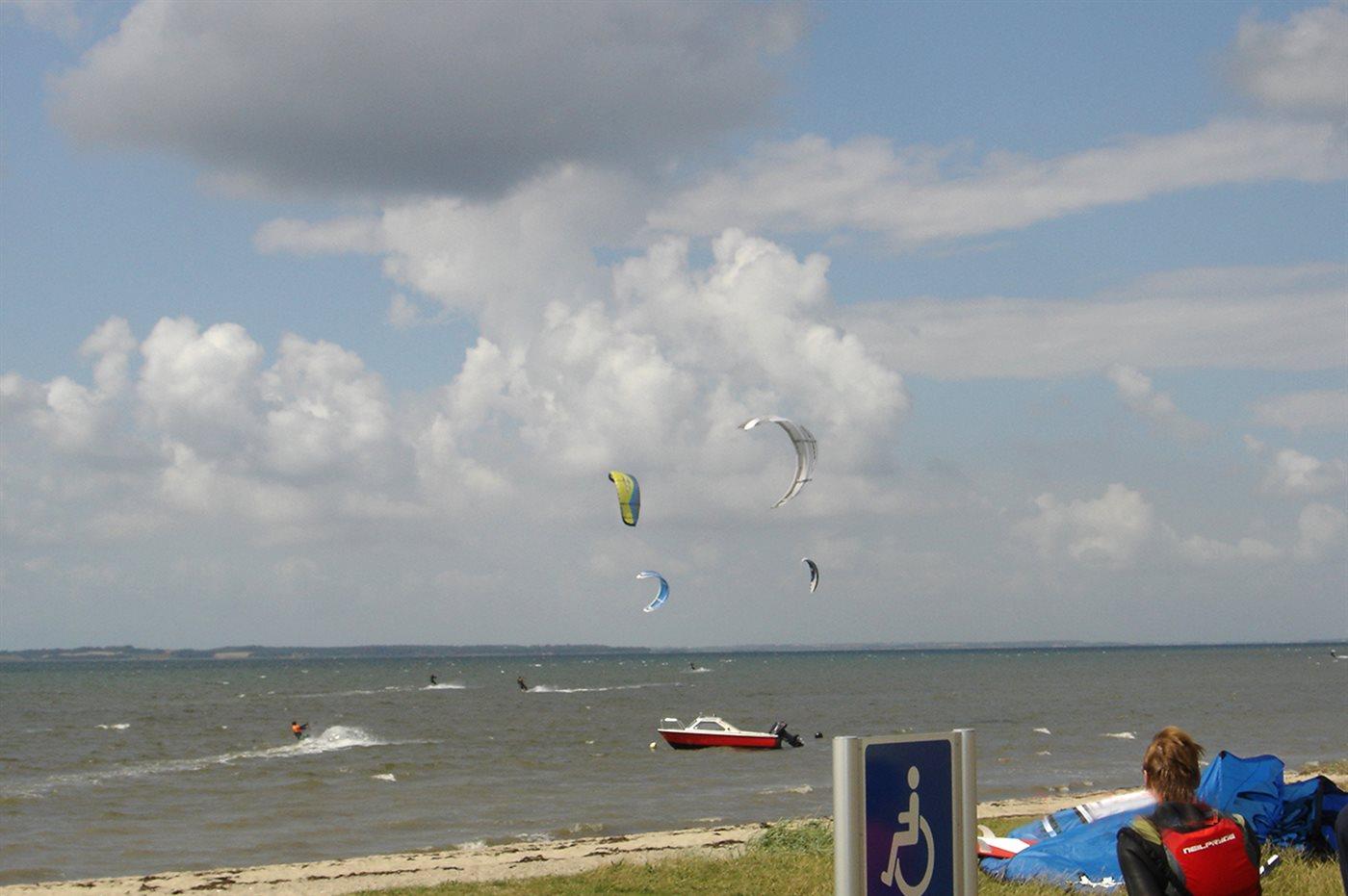 Særdeles flot sommerhus i træ, bygget i 2005, beliggende på en dejlig natur-/havegrund kun 300 m fra vandet. Fra såvel hus som grund er der en flot udsigt over vandet. Til huset hører dejlig stor såvel åben som overdækket terrasse med diverse havemøbler. Flotte opvarmede klinkegulve i køkken, spiseafdeling og på badeværelse. Trægulve i de øvrige rum. Lyse malede vægge samt trælofter. Dejligt stort badeværelse med bruseniche, lækker 2-pers. spa samt direkte adgang til husets sauna. Endvidere dejligt gæstetoilet. Køkken i åben forbindelse med stuen, der er udstyret med bl.a. opvaskemaskine, mikrobølgeovn, varmluftovn, komfur med keramiske kogeplader og fryser. Dejlig stor og pænt møbleret stue med brændeovn, DVD-afspiller, TV med parabol (digital) og stereoanlæg med CD-afspiller samt gratis trådløs internetforbindelse. Husets sovepladser fordeler sig på 2 soverum med dobbeltseng og 1 med 2 enkeltsenge samt god hems med 2 sovepladser til børn. Af yderligere udstyr kan vaskemaskine samt tørretumbler nævnes og der er installeret energibesparende varmepumpe. Til de mindste feriegæster findes der høj barnestol og barneseng samt sandkasse, gynge, rutsjebane og diverse spil. Et virkelig dejligt sommerhus på alle årstider, beliggende i et dejligt ferieområde med mange aktivitetsmuligheder, bl.a. windsurfing, fiskeri, Put & Take, badning samt gåture i den dejlige natur.