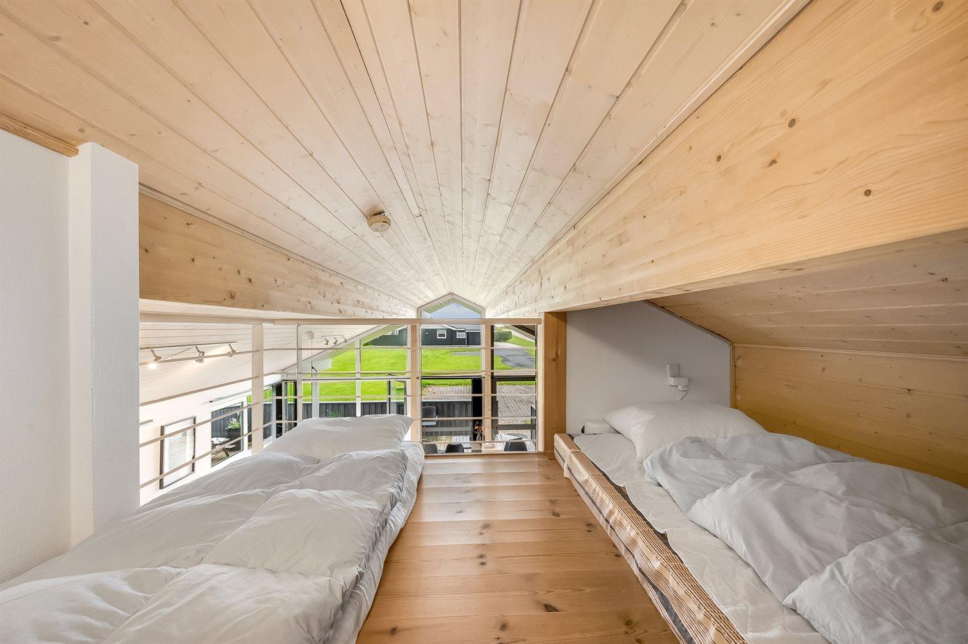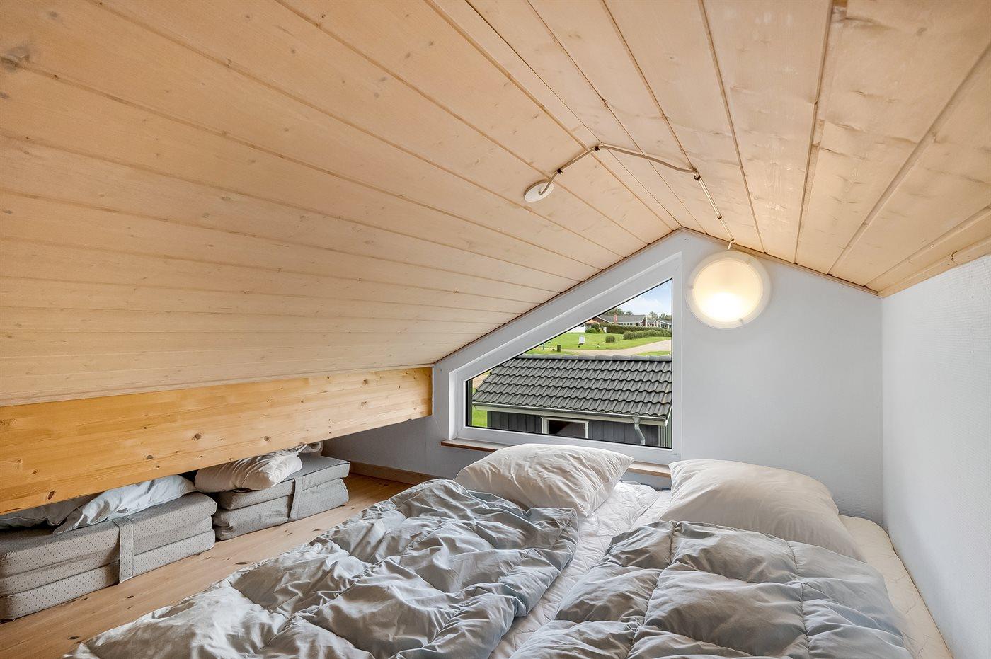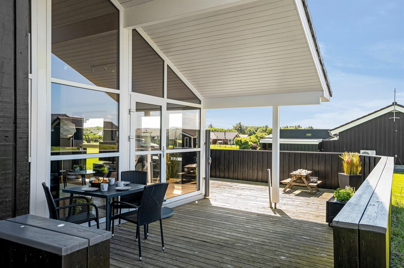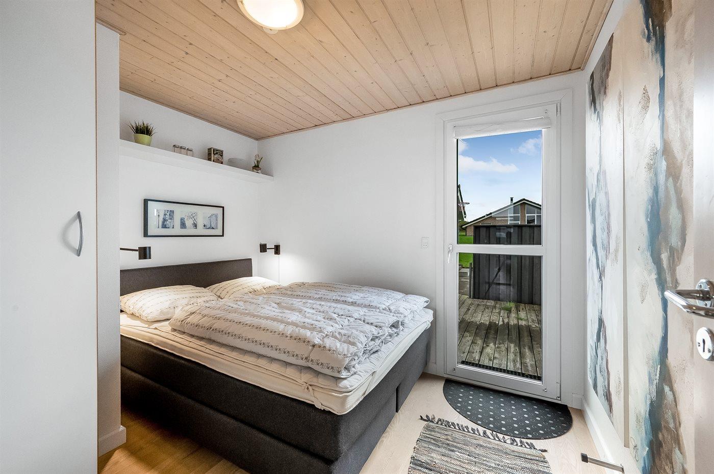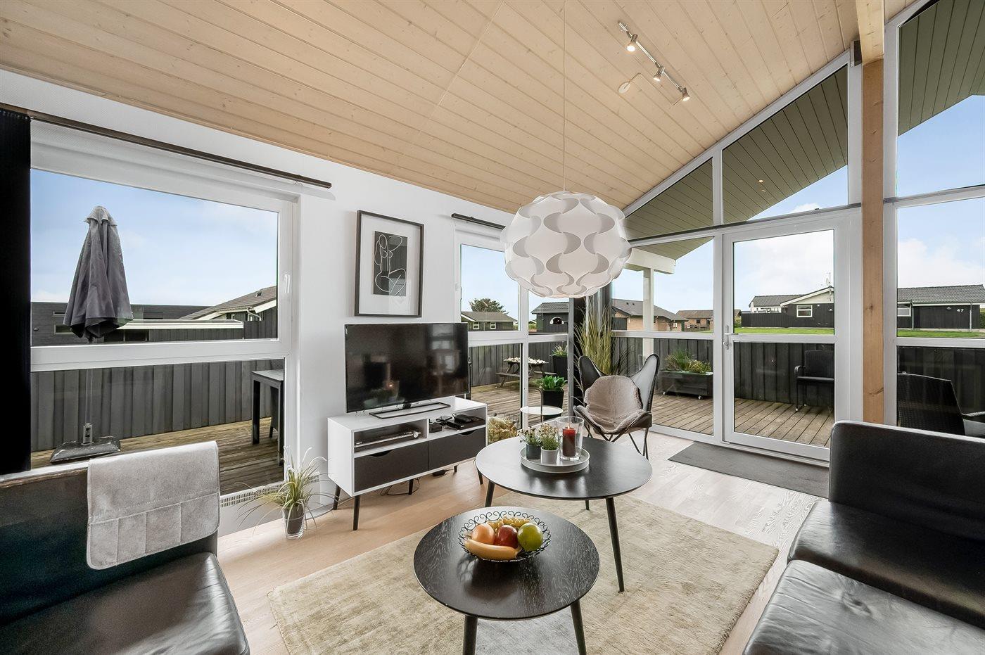 Særdeles flot sommerhus i træ, bygget i 2005, beliggende på en dejlig natur-/havegrund kun 300 m fra vandet. Fra såvel hus som grund er der en flot udsigt over vandet. Til huset hører dejlig stor såvel åben som overdækket terrasse med diverse havemøbler. Flotte opvarmede klinkegulve i køkken, spiseafdeling og på badeværelse. Trægulve i de øvrige rum. Lyse malede vægge samt trælofter. Dejligt stort badeværelse med bruseniche, lækker 2-pers. spa samt direkte adgang til husets sauna. Endvidere dejligt gæstetoilet. Køkken i åben forbindelse med stuen, der er udstyret med bl.a. opvaskemaskine, mikrobølgeovn, varmluftovn, komfur med keramiske kogeplader og fryser. Dejlig stor og pænt møbleret stue med brændeovn, DVD-afspiller, TV med parabol (digital) og stereoanlæg med CD-afspiller samt gratis trådløs internetforbindelse. Husets sovepladser fordeler sig på 2 soverum med dobbeltseng og 1 med 2 enkeltsenge samt god hems med 2 sovepladser til børn. Af yderligere udstyr kan vaskemaskine samt tørretumbler nævnes og der er installeret energibesparende varmepumpe. Til de mindste feriegæster findes der høj barnestol og barneseng samt sandkasse, gynge, rutsjebane og diverse spil. Et virkelig dejligt sommerhus på alle årstider, beliggende i et dejligt ferieområde med mange aktivitetsmuligheder, bl.a. windsurfing, fiskeri, Put & Take, badning samt gåture i den dejlige natur.