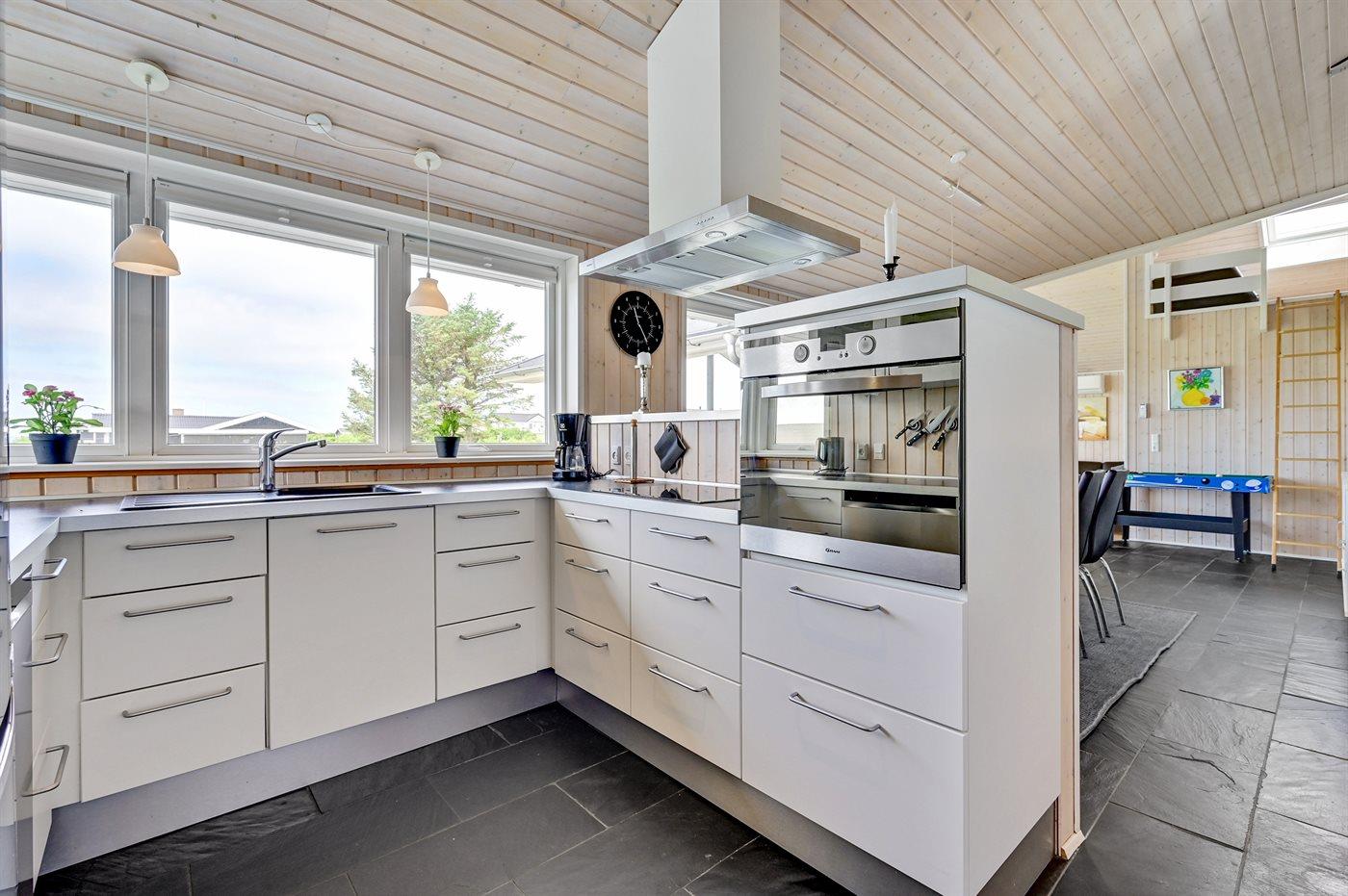 Køkkenet er udstyret med 1 køleskab. Der er 4 induktionskogeplader, varmluftovn, mikrobølgeovn samt opvaskemaskine Der er gulvvarme i køkkenet.