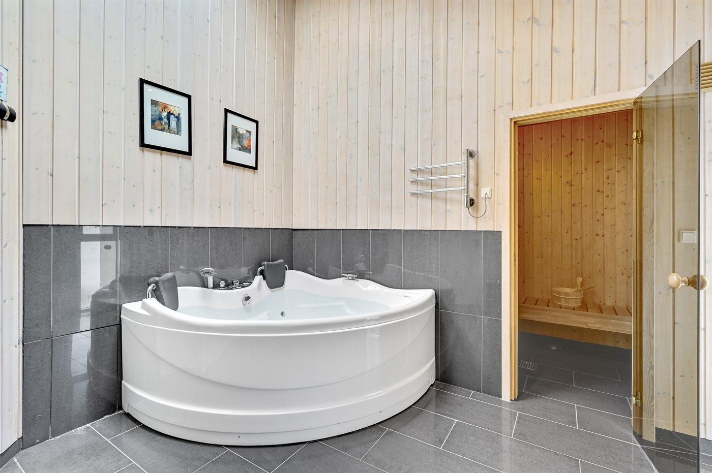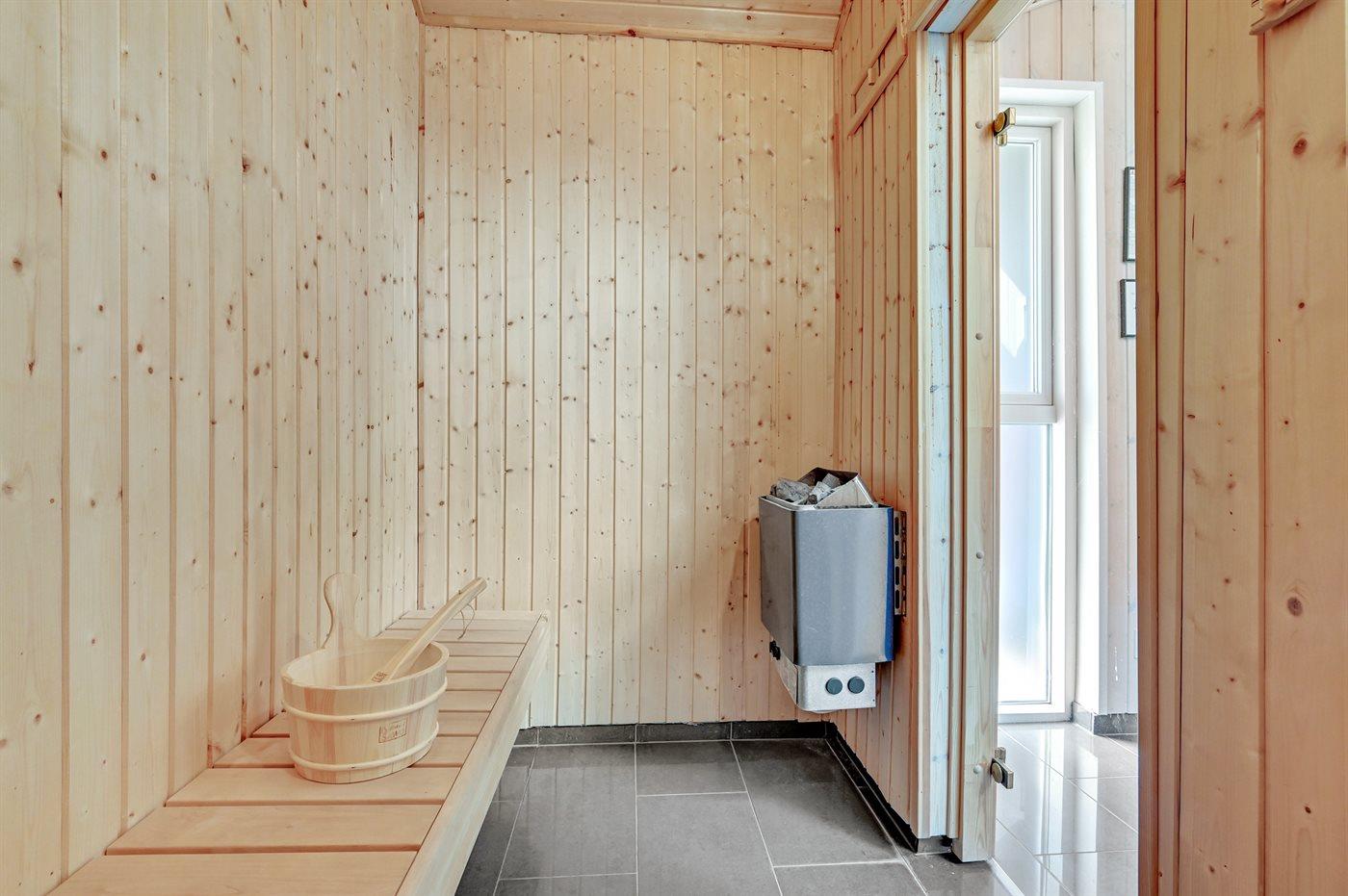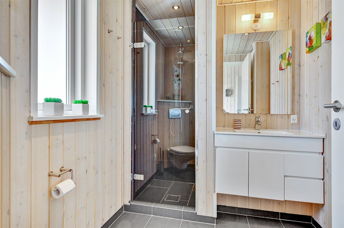 Der er 2 badeværelser med bruseniche og 2 toiletter. Der er gulvvarme på 2 badeværelser. I saunaen er der mulighed for afslapning.