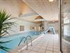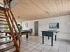 Dette meget rummelige stråtækte hus i to etager med pool, sauna og spabad, aktivitetsrum og havelegeplads i et roligt boligområde tilbyder plads til den helt store familiesammenkomst eller flere vennefamilier. Feriehuset er meget veludstyret og moderne indrettet. Nyd en skøn tid med fælles madlavning, spillehygge, sjov i det private indendørs badeland med palmer, rutsjebane og jacuzzi, selvforkælelse i saunaen og lækre måltider for hele gruppen ved det kilometerlange bord i henholdsvis spisestuen og på terrassen. Mens de udvalgte kokke laver mad, kan børnene gynge og hoppe til svimlende højder på trampolinen. Nyd dejlige måltider på terrassen med vidunderlig sommerstemning og et glas vin eller en cocktail under åben himmel, når børnene er lagt i seng.. Det store højdepunkt er og bliver dog nok den private minigolfbane med 5 huller. Grib strandtasken og tilbring mange timer på sandstranden ved fjorden. Om aftenen kan I nyde skønne gåture langs vandet i solnedgangens skær.