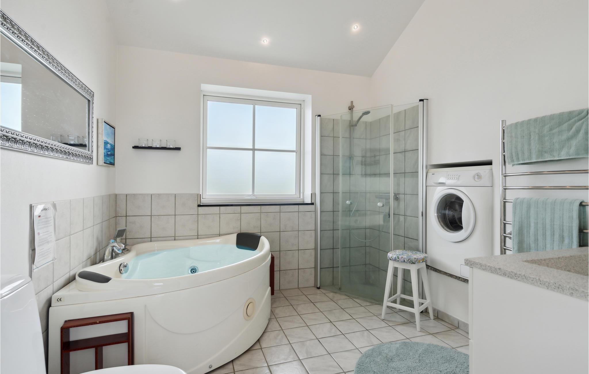 Her er der tale om et lækkert indrettet feriehus med udsigt over Venø Bugt. Nyd det flotte farvespil i vandet alt efter solens placering og se lysene fra Struer by, når mørket falder på. Huset er opført i flotte materialer med sans for detaljen. Der er en dejlig stor hems på 25 m2 med ekstra TV til dvd-afspiller - spillekonsol kan tilsluttes. Der er udsigt over fjorden fra de fleste værelser i huset og fra det meste af terrassen, som omkranser hele huset. I tilknytning til huset er der en separat udendørs wellnessafdeling med solvogne, udendørs bruser med både varmt og koldt vand, vildmarksbad (finsk bad) og sauna. Saunaen og vildmarksbadet er brændeopvarmet. Brænde kan medbringes (der er også mulighed for at købe det til rimelige priser ved huset). Arealet med wellnessafdelingen er nedsænket 40 cm og lavet i træ, ligesom husets øvrige terrasser. Den nedsænkede terrasse er ideel til små børn, da den kan fungere som en kæmpe kravlegård. Et skønt areal hvor I ugenert kan slappe af, og hvor I virkelig kan forkæle jer selv efter en aktiv dag i den skønne natur ved Limfjorden. I forbindelse med området er der desuden en 15 m2 overdækket terrasse. Området byder bl.a. på gode vandre-, surf- og fiskemuligheder i naturskønne omgivelser i nærheden af huset. Syv golfbaner, fem put and take fiskesøer indenfor en radius af 40 km. Badebro og mulighed for leje af kajak 10 km fra huset. Fodboldgolf 500 m. Efter en dejlig gåtur på ca. 700 m langs vandet.