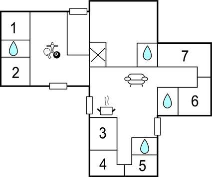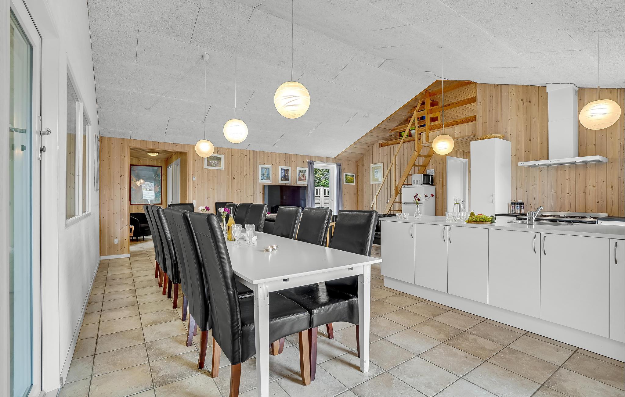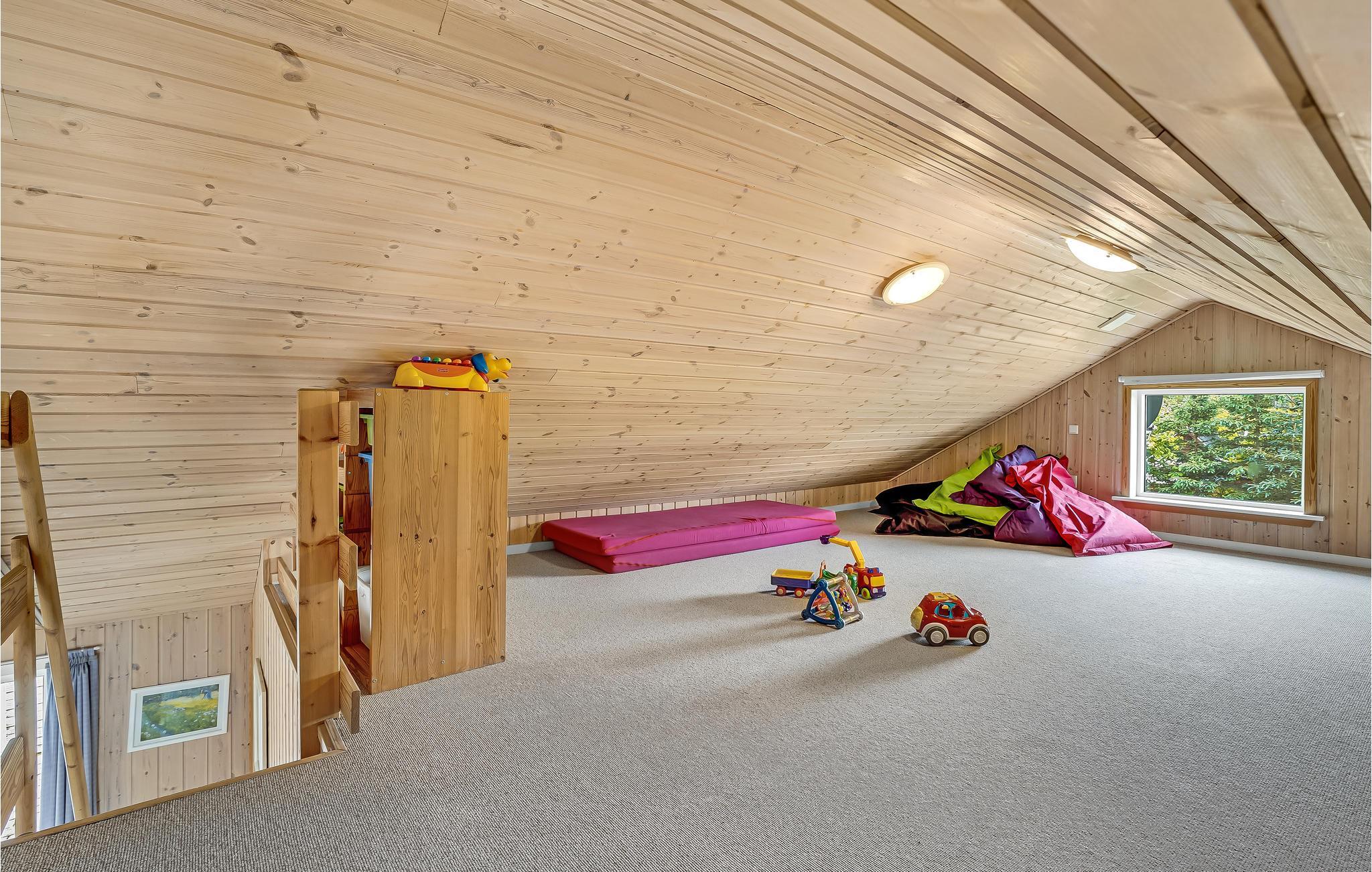 Inde i det rummelige og veludstyrede feriehus er der syv soveværelser, fire badeværelser, et køkken og en smuk opholdsstue samt et aktivitetsrum, der sørger for masser af underholdning. Børnene vil elske de store hems, hvor de kan lege uforstyrret. Med forskellige spil, aktiviteter og WiFi bliver det ikke kedeligt selv på regnvejrsdage.