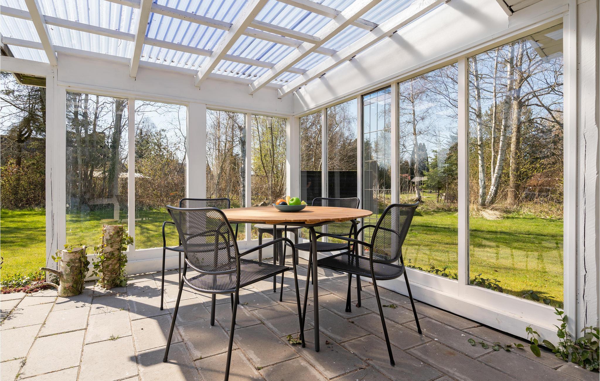 Udestuen giver jer en god mulighed for at udnytte solskinstimerne i årets kolde måneder. Når solen brager igennem, kan I læne jer tilbage på den skønne grund og lytte til fuglene, der synger og grillen, der simrer.