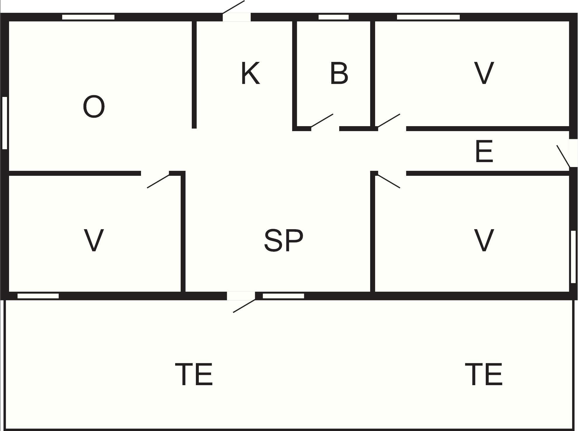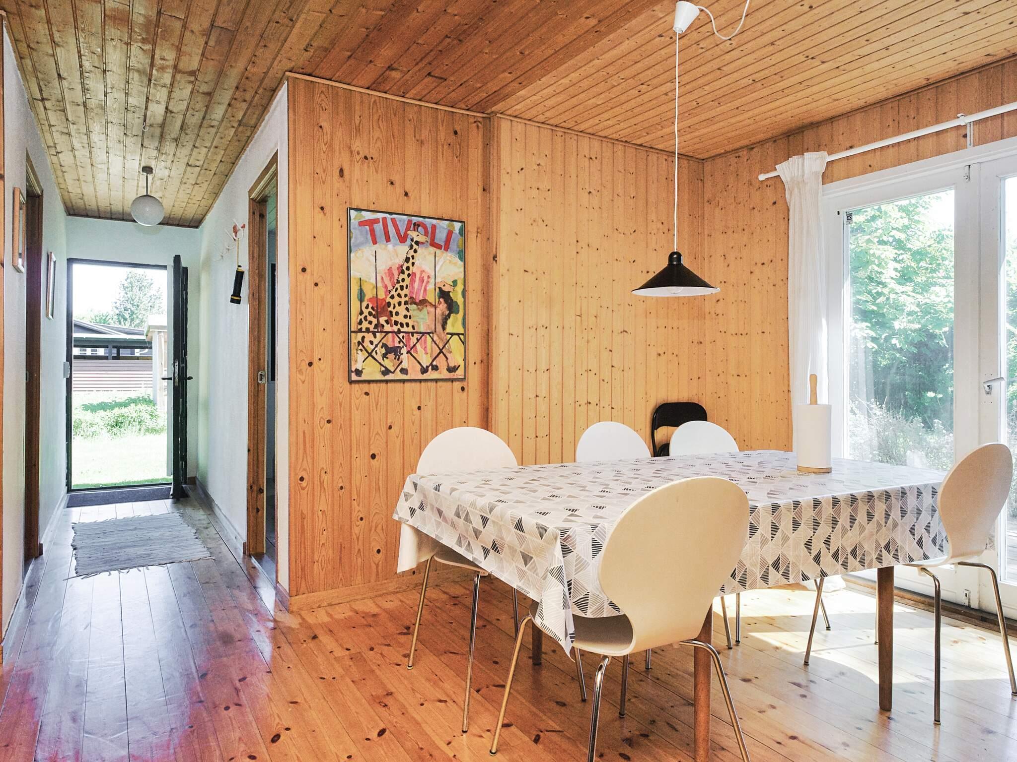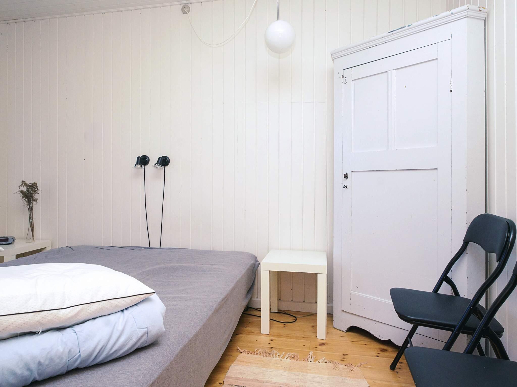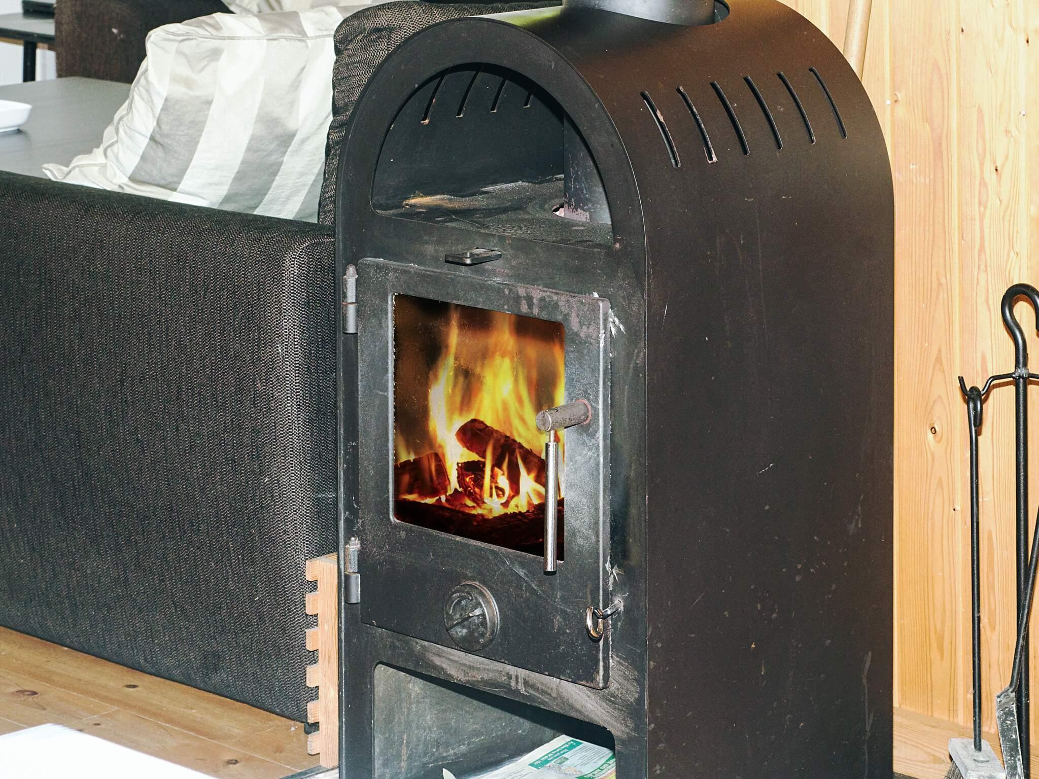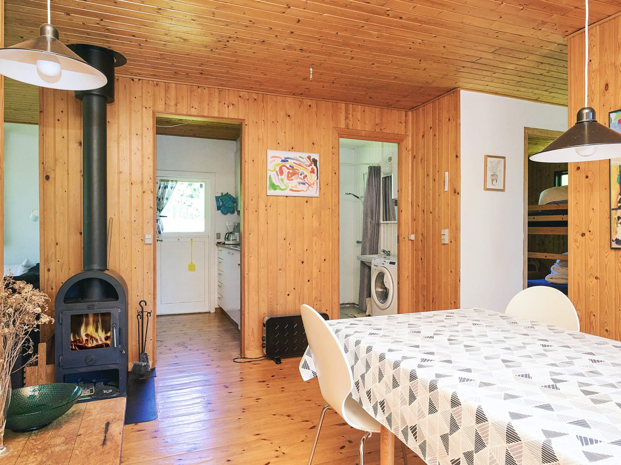 Indvendigt byder huset på et lille ældre køkken i forbindelse med spisepladsen, ideel til familiemåltider, og en indbydende stue med brændeovn. Gæster kan nyde deres yndlingsprogrammer ved at streame gennem deres egne tv-udbydere. Badeværelset er udstyret med en vaskemaskine, hvilket tilføjer bekvemmelighed til længere ophold. Interiøret kombinerer funktionelt design med en varm, hjemlig atmosfære velegnet til afslapning og socialt samvær.