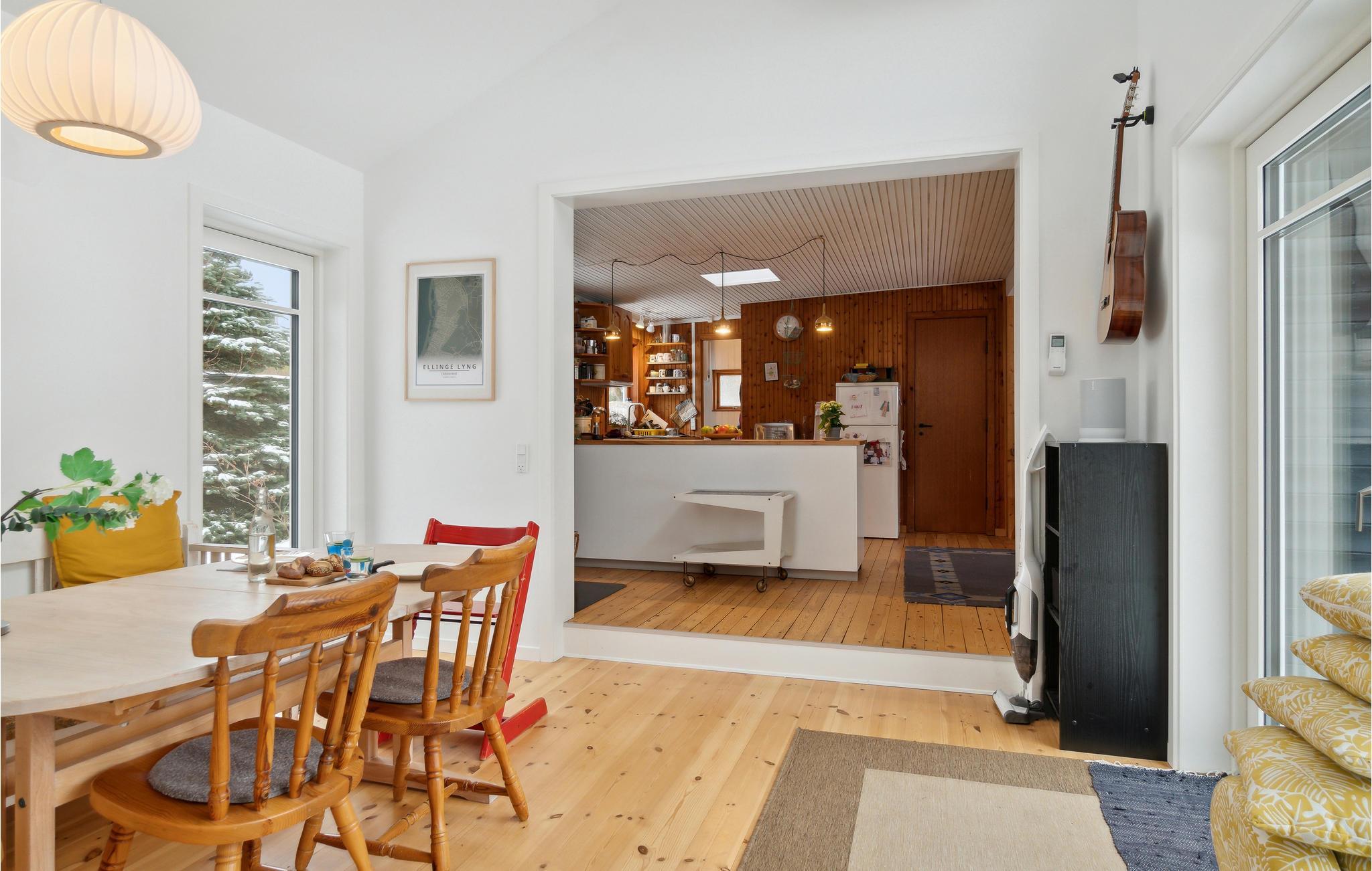 Velkommen til Ellinge Lyng og dette skønne feriehus, hvor der er lagt op til en rigtig dejlig familieferie. I de hyggelige værelser med træpaneler og lyse farver kan I glæde jer til at slappe helt og aldeles af. Her får I endelig tid til læse den bog, der har samlet støv for længe, og I kan også se frem til at spille brætspil eller måske spille musik sammen. Sengepladserne er godt fordelt, og to af dem finder I i annekset, så alle kan se frem til rolige nætter.