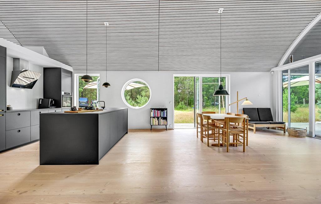 Oplev et arkitekttegnet feriehus nær børnevenlig sandstrand i Odsherred med store terrasser og moderne faciliteter.