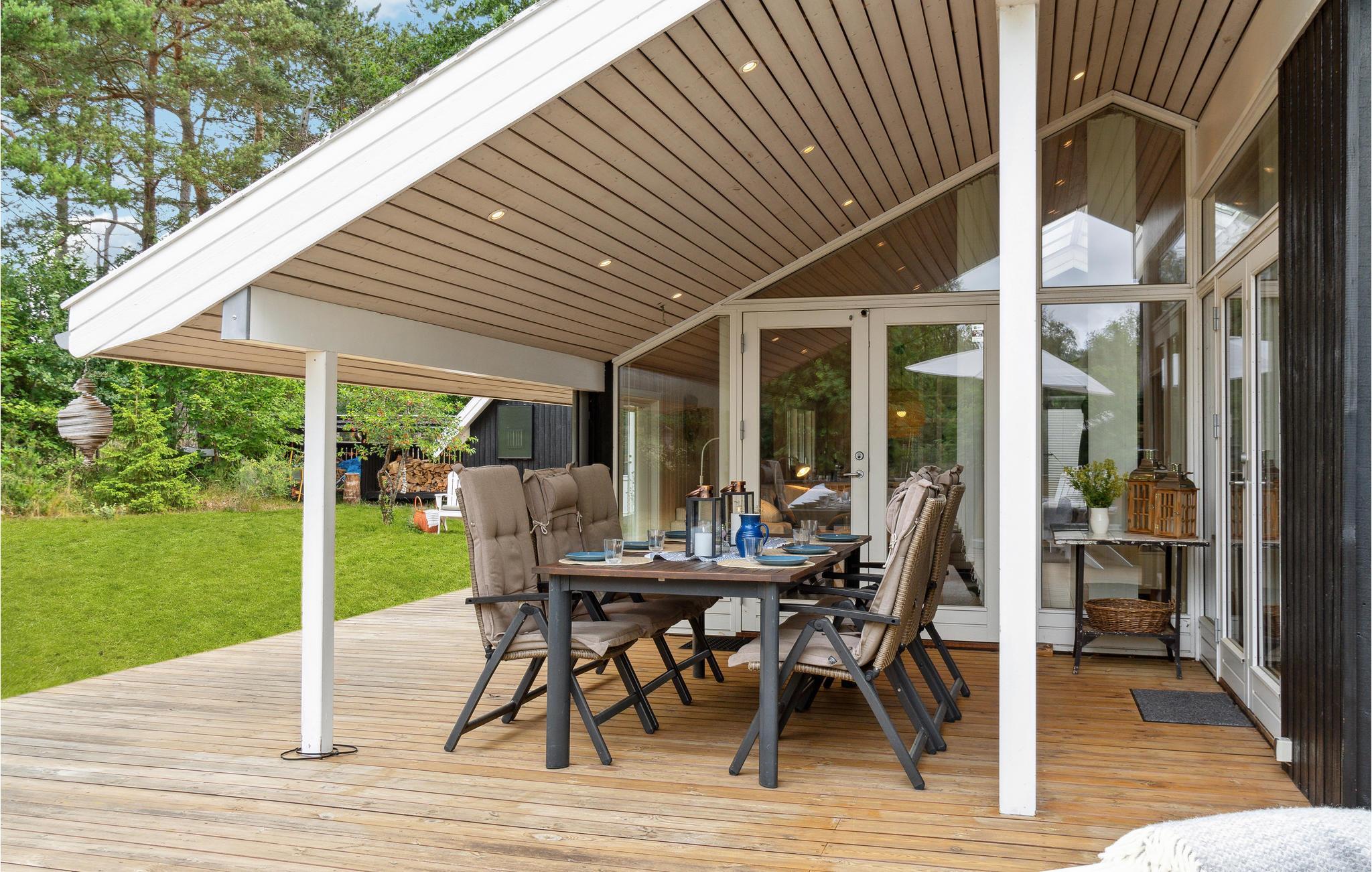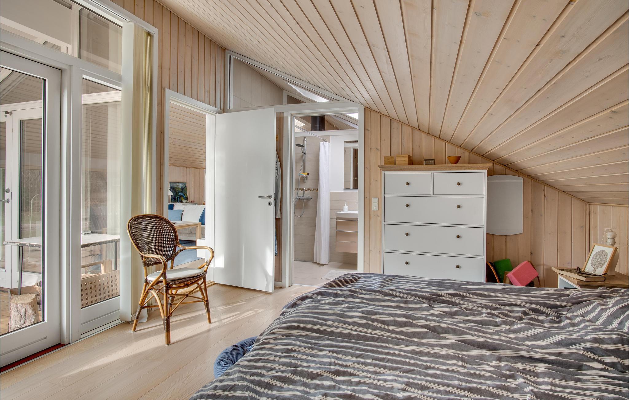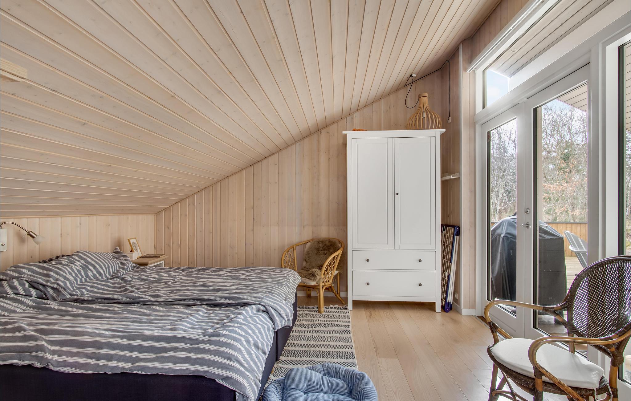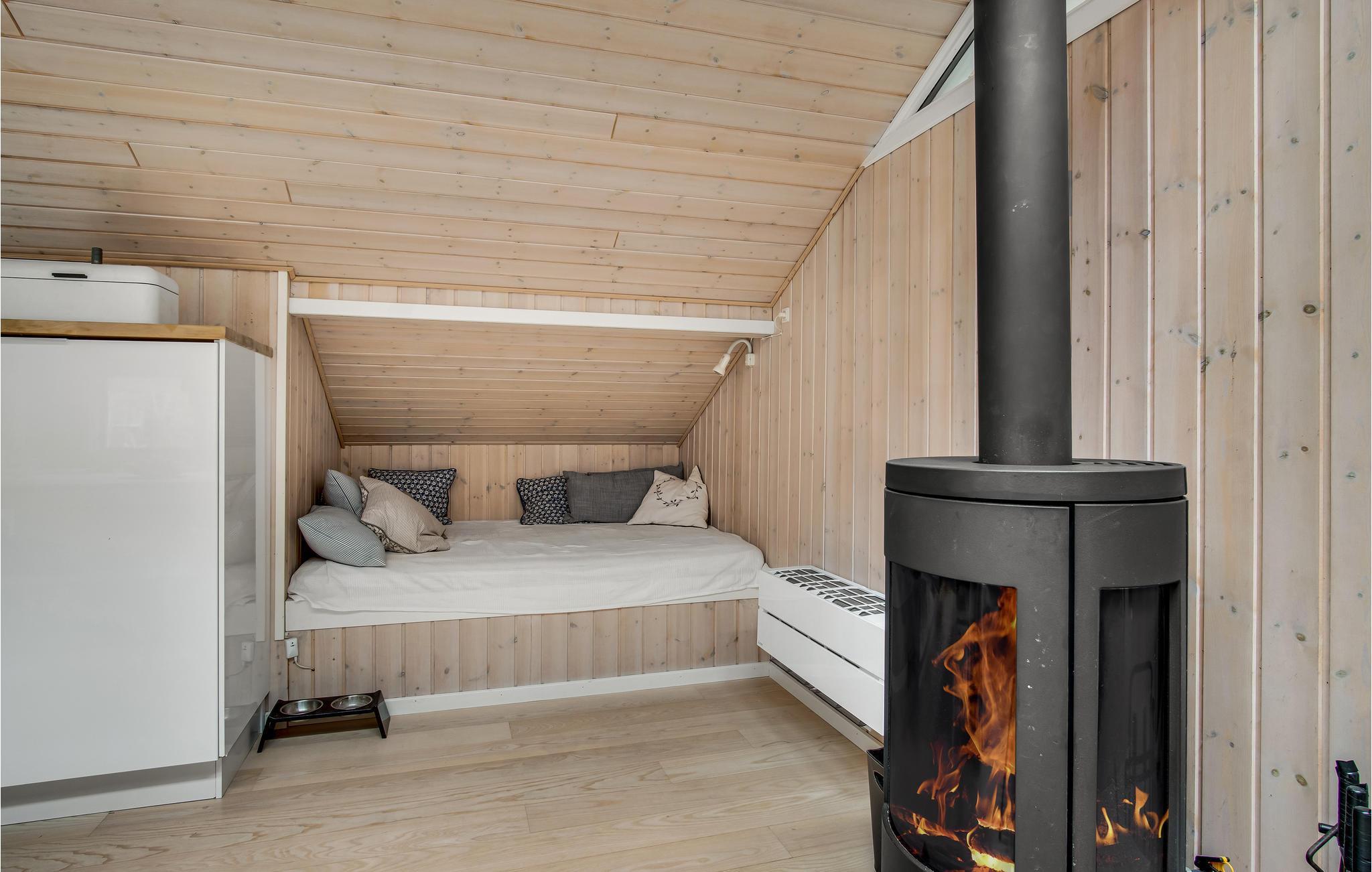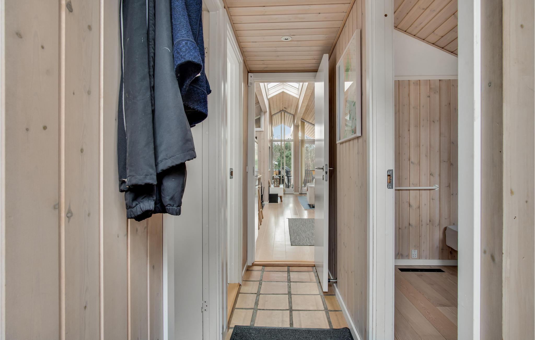 Der er fred og idyl på denne skønne feriegrund, som ligger omkranset af træer. Boligen er lys og moderne med enkle stilvalg, så her er der gode rammer til at slappe af for hele familien. Nyd dagens måltider ved det lange spisebord, hvor I samtidig kan glæde jer over udsigten til haven. Når I vender hjem efter en lang dag med udflugter og strandliv, kan I læne jer tilbage i stuen og fylde tiden med brætspil, bøger og gode snakke, mens I nyder udsigten til de grønne omgivelser. I kan skrue ekstra op for hyggen og varmen i vinterhalvåret ved at fyre op i brændeovnen.