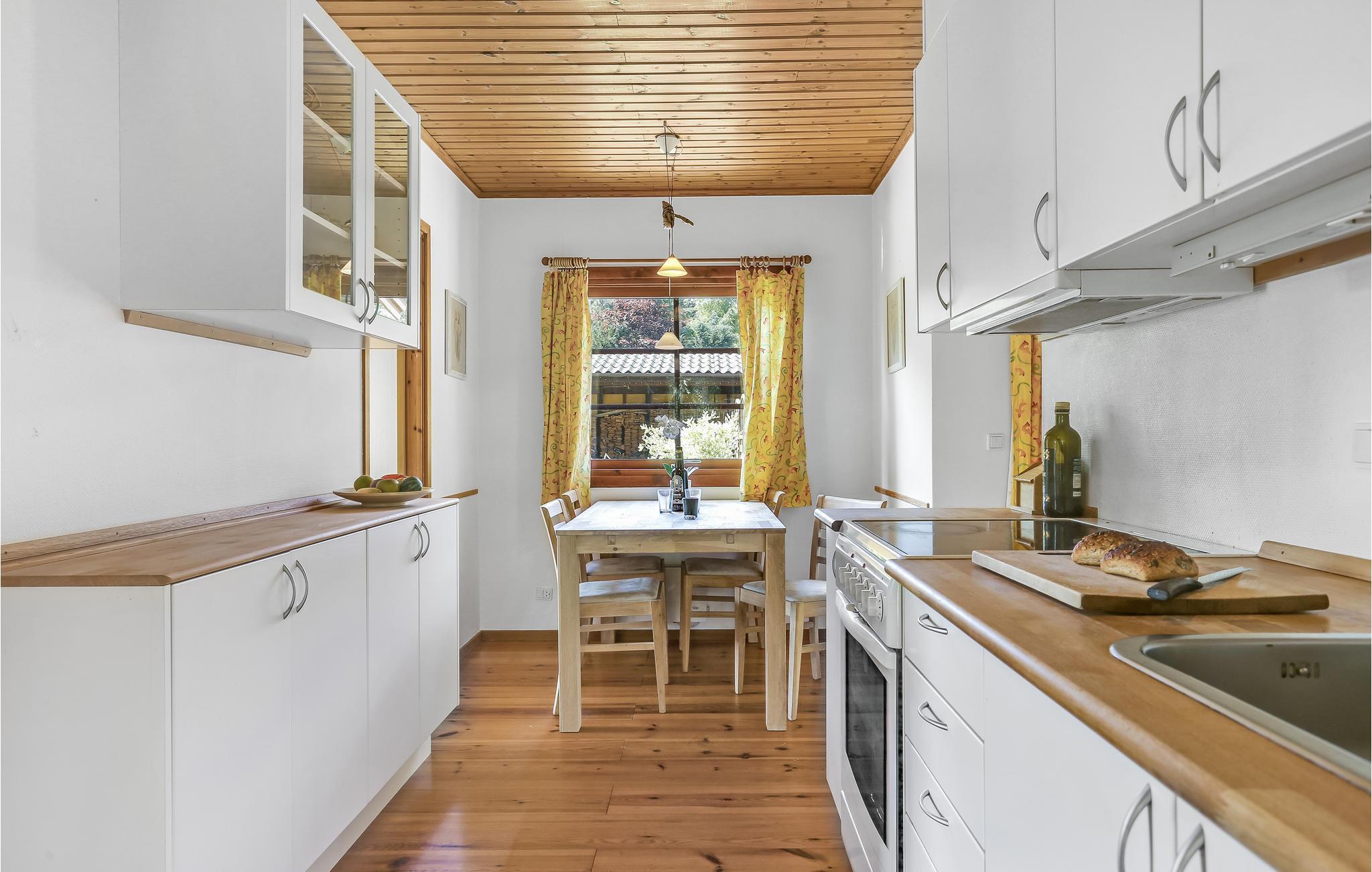 Huset tæller tre soveværelser, et badeværelse, køkken og en smuk opholdsstue. Tilbring de afslappende aftener med sofahygge, knitrende ild i brændovnen samt en god bog.