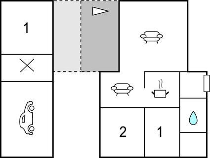 Huset ligger på en afsondret grund med græsplæner, hvor børnene kan finde masser af plads til at lege og være aktive. De forskellige udendørsspil garanterer masser af sjove timer i det fri. Den fine veranda er hyggelig, når I vil spise udenfor eller bare nyde aftenluften.