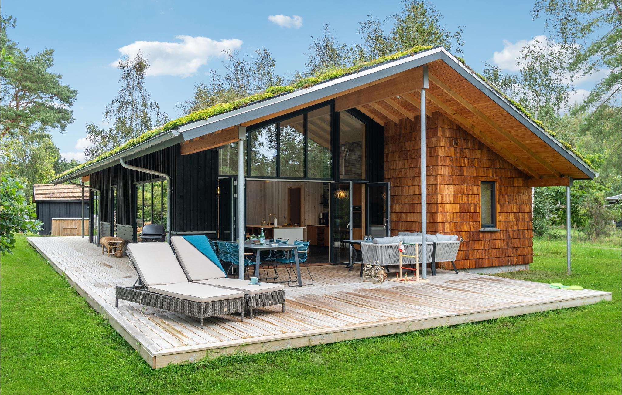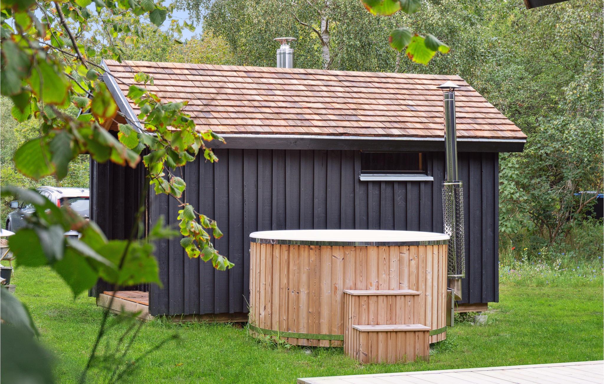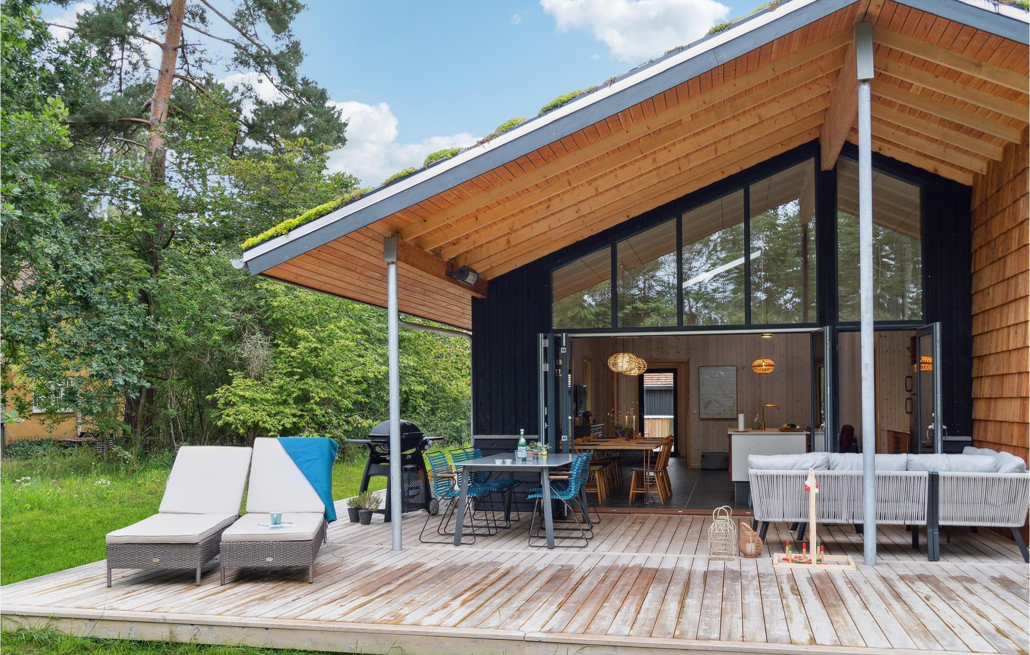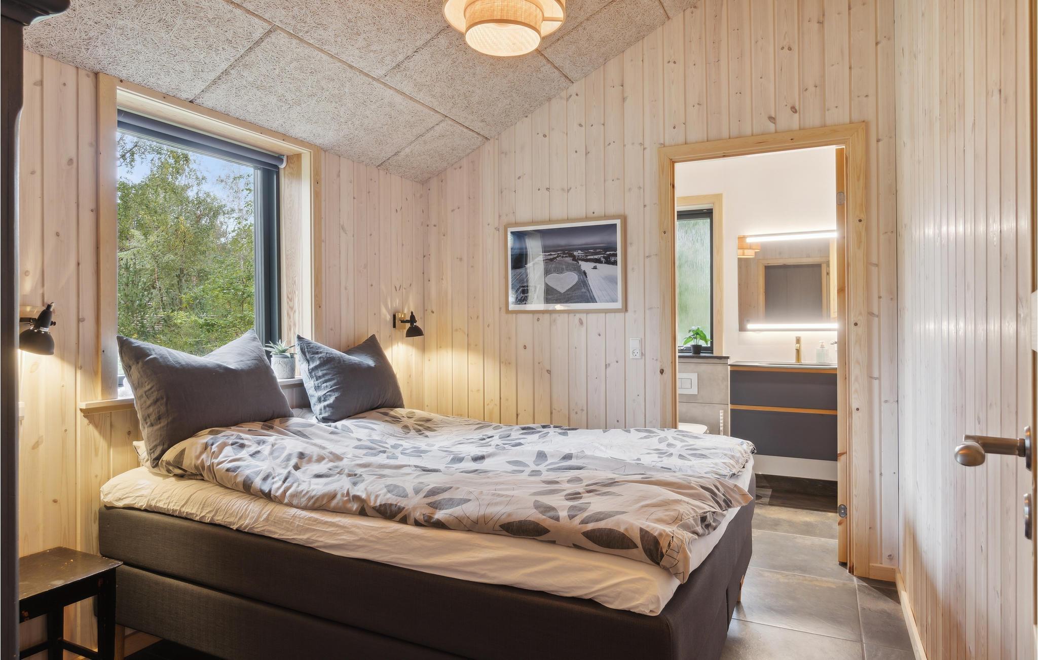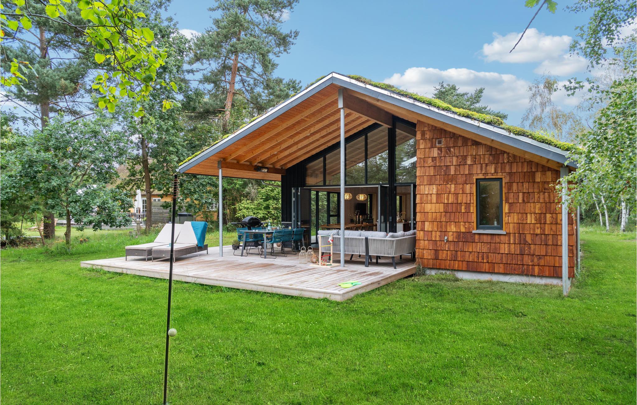 Velkommen til dette smukke feriehus, hvor hele familien kan nyde en fredfyldt og afslappende ferie i naturskønne omgivelser. Så snart I træder ind, vil I blive betaget af de stilfulde værelser. Her går æstetik, funktionalitet og komfort op i en højere enhed, og mixet af design og hygge skaber den perfekte boligoplevelse. Fremtryl lækkerier i køkkenet over et glas vin eller nyd en kop te eller kaffe i sofaen. Senere kan I udfordre hinanden i billard. Ønsker I en stund med mere ro, kan I belønne jer selv med wellness, da et vildmarksbad og en saunahytte venter på jer i haven. Nyd også hyggelige aftener på den store terrasse, som er optimalt forbundet med den store stue gennem det store panoramavindue fra gulv til loft.