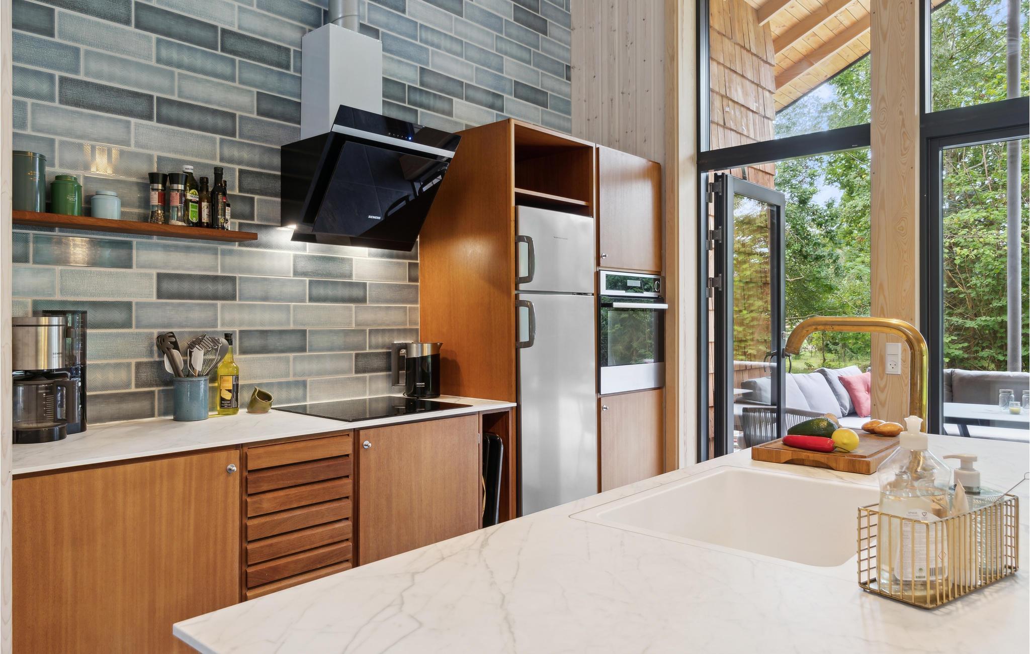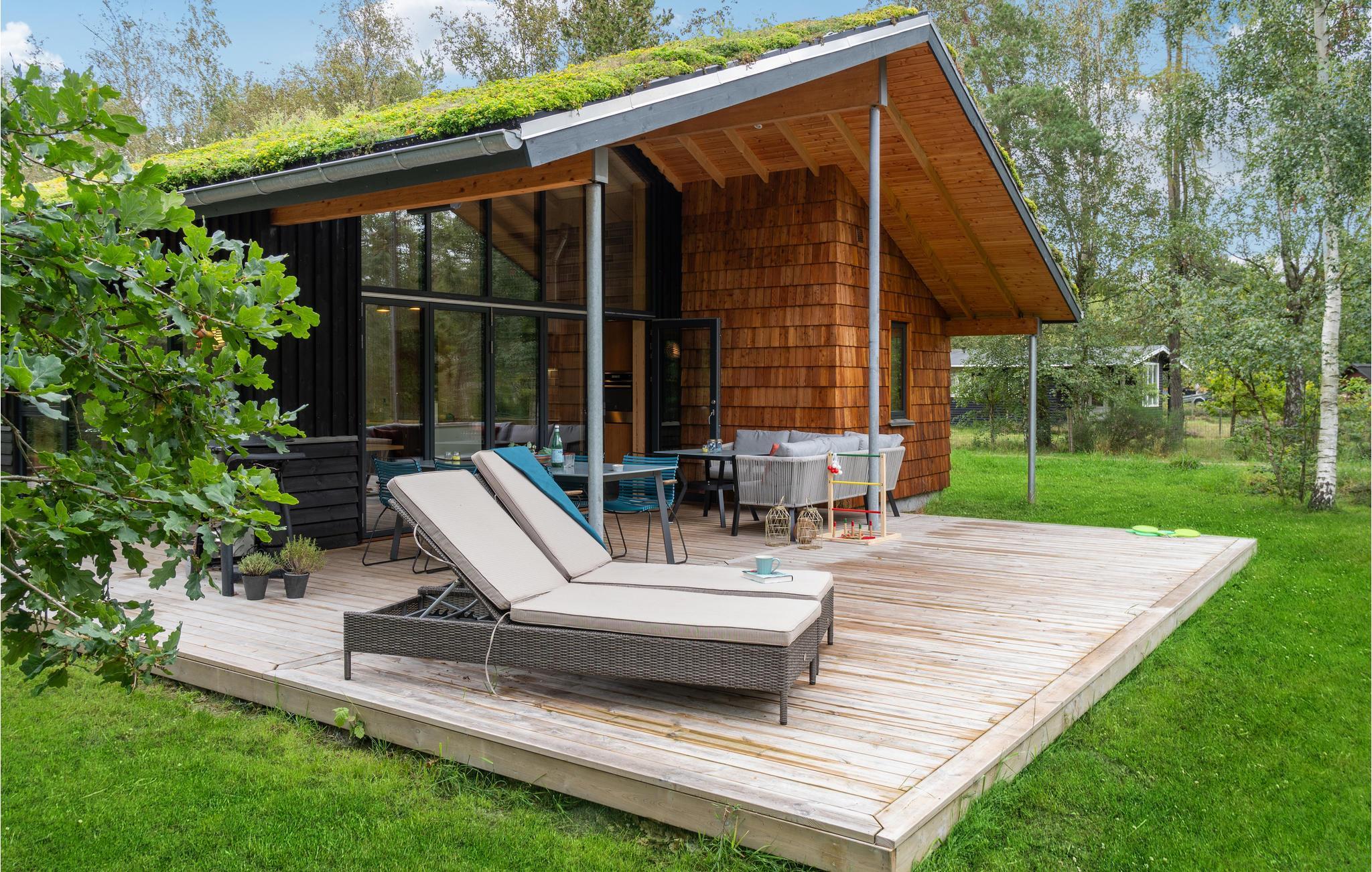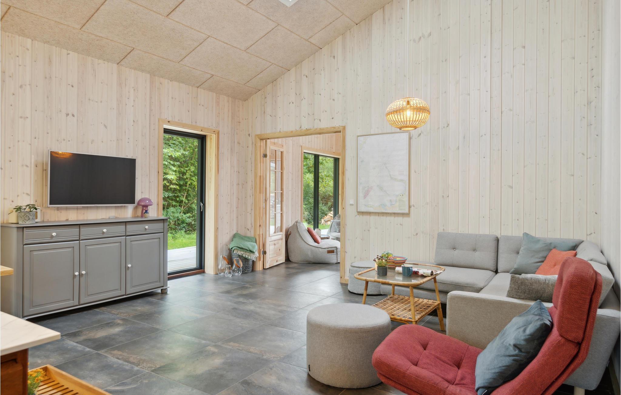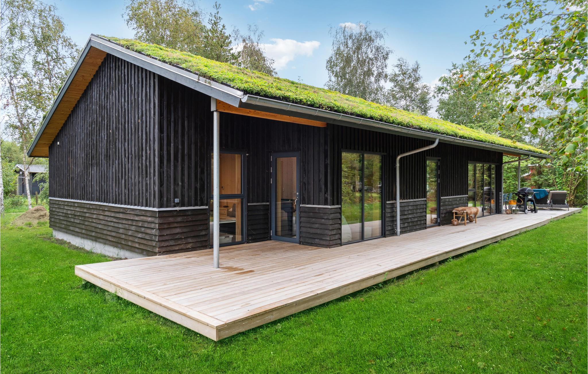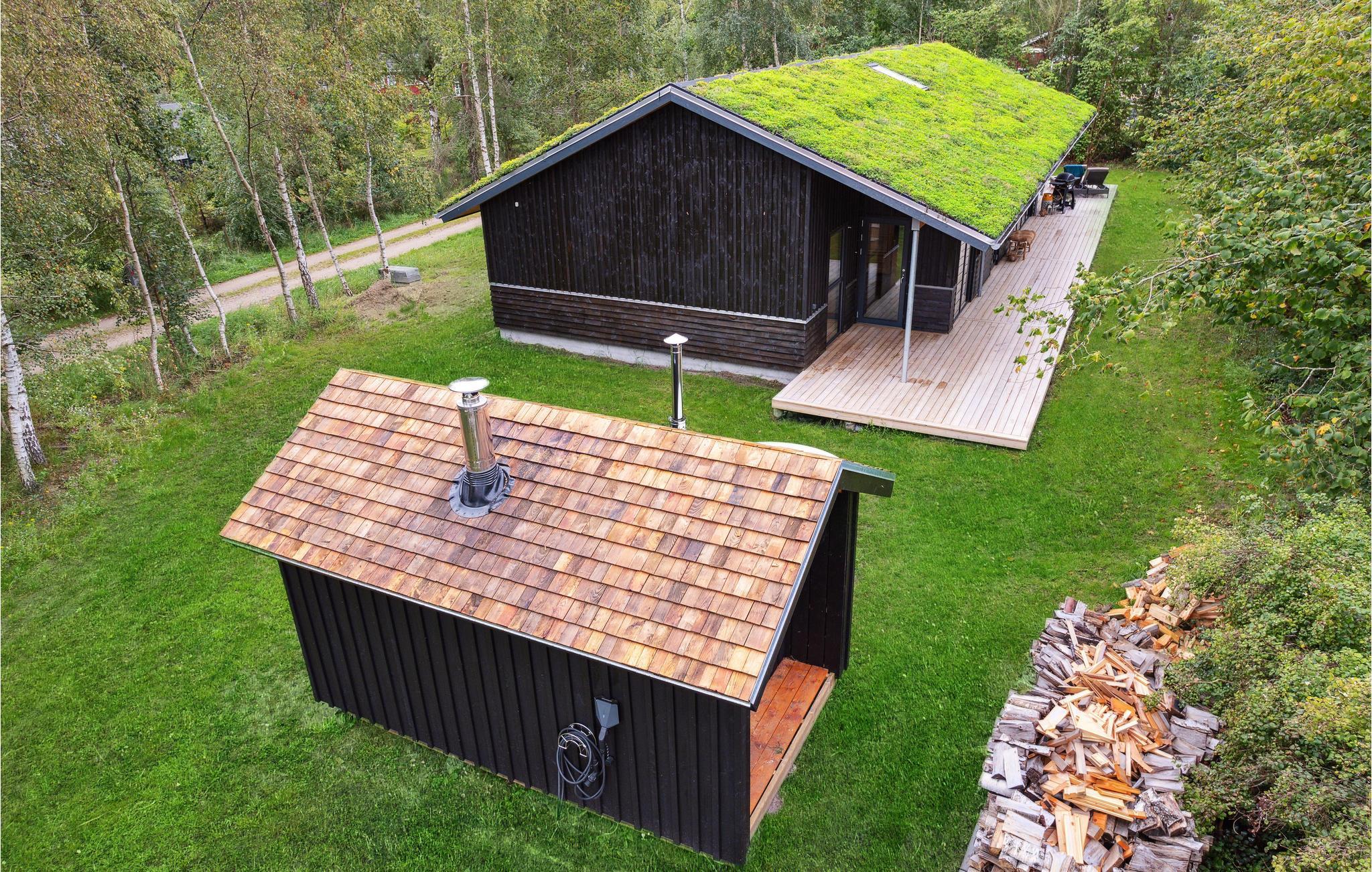 Velkommen til dette smukke feriehus, hvor hele familien kan nyde en fredfyldt og afslappende ferie i naturskønne omgivelser. Så snart I træder ind, vil I blive betaget af de stilfulde værelser. Her går æstetik, funktionalitet og komfort op i en højere enhed, og mixet af design og hygge skaber den perfekte boligoplevelse. Fremtryl lækkerier i køkkenet over et glas vin eller nyd en kop te eller kaffe i sofaen. Senere kan I udfordre hinanden i billard. Ønsker I en stund med mere ro, kan I belønne jer selv med wellness, da et vildmarksbad og en saunahytte venter på jer i haven. Nyd også hyggelige aftener på den store terrasse, som er optimalt forbundet med den store stue gennem det store panoramavindue fra gulv til loft.