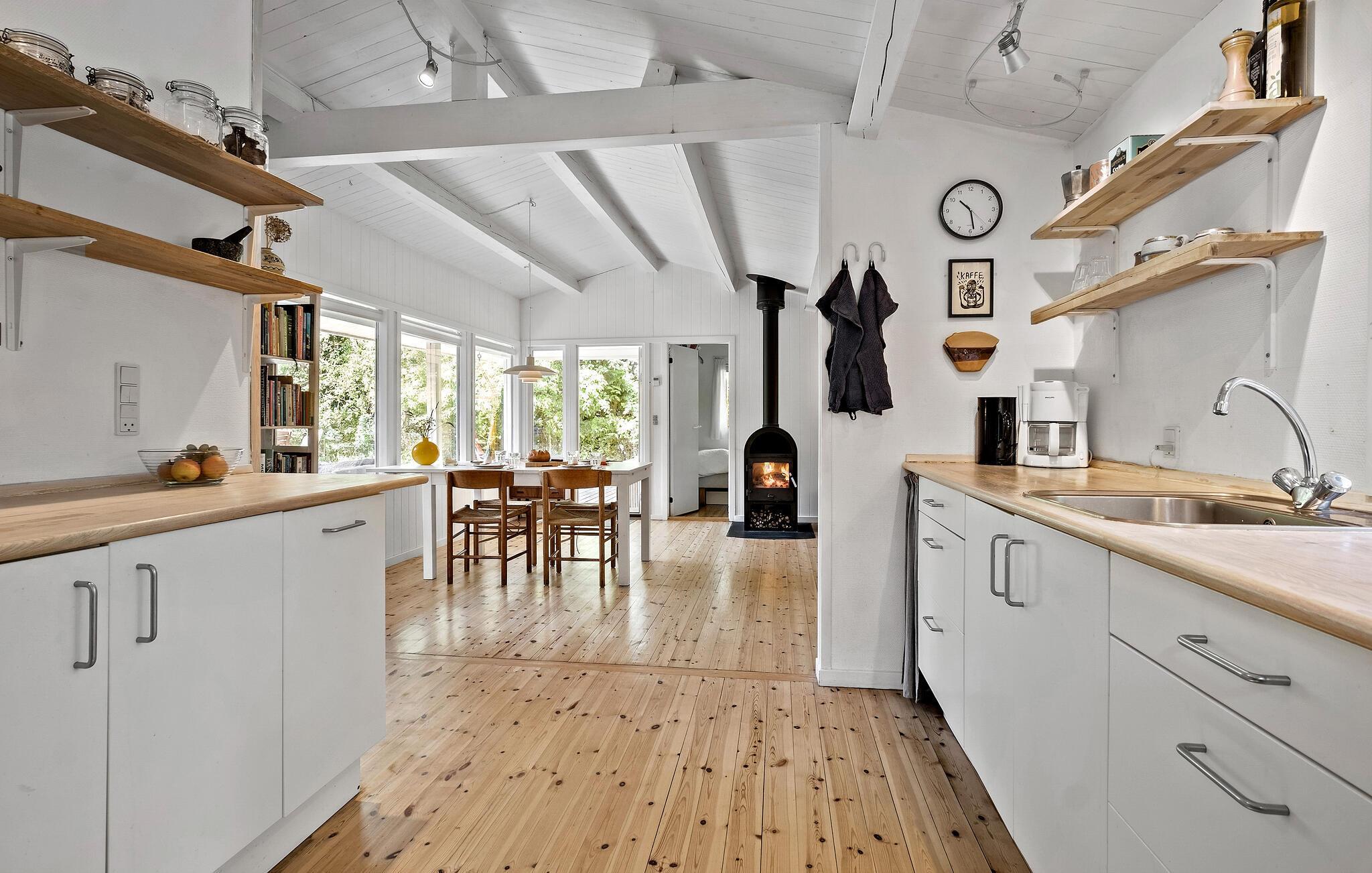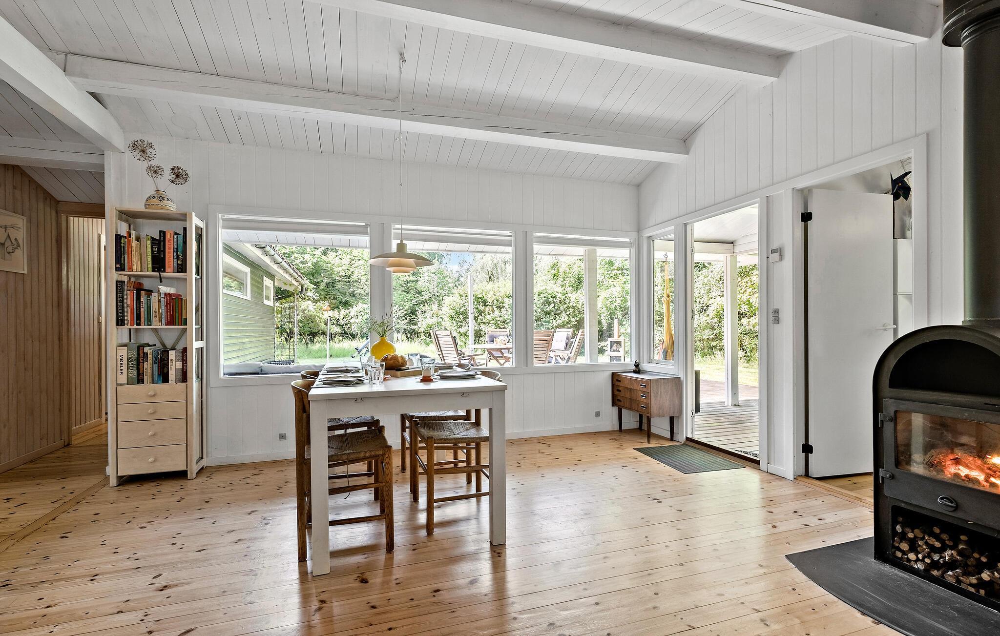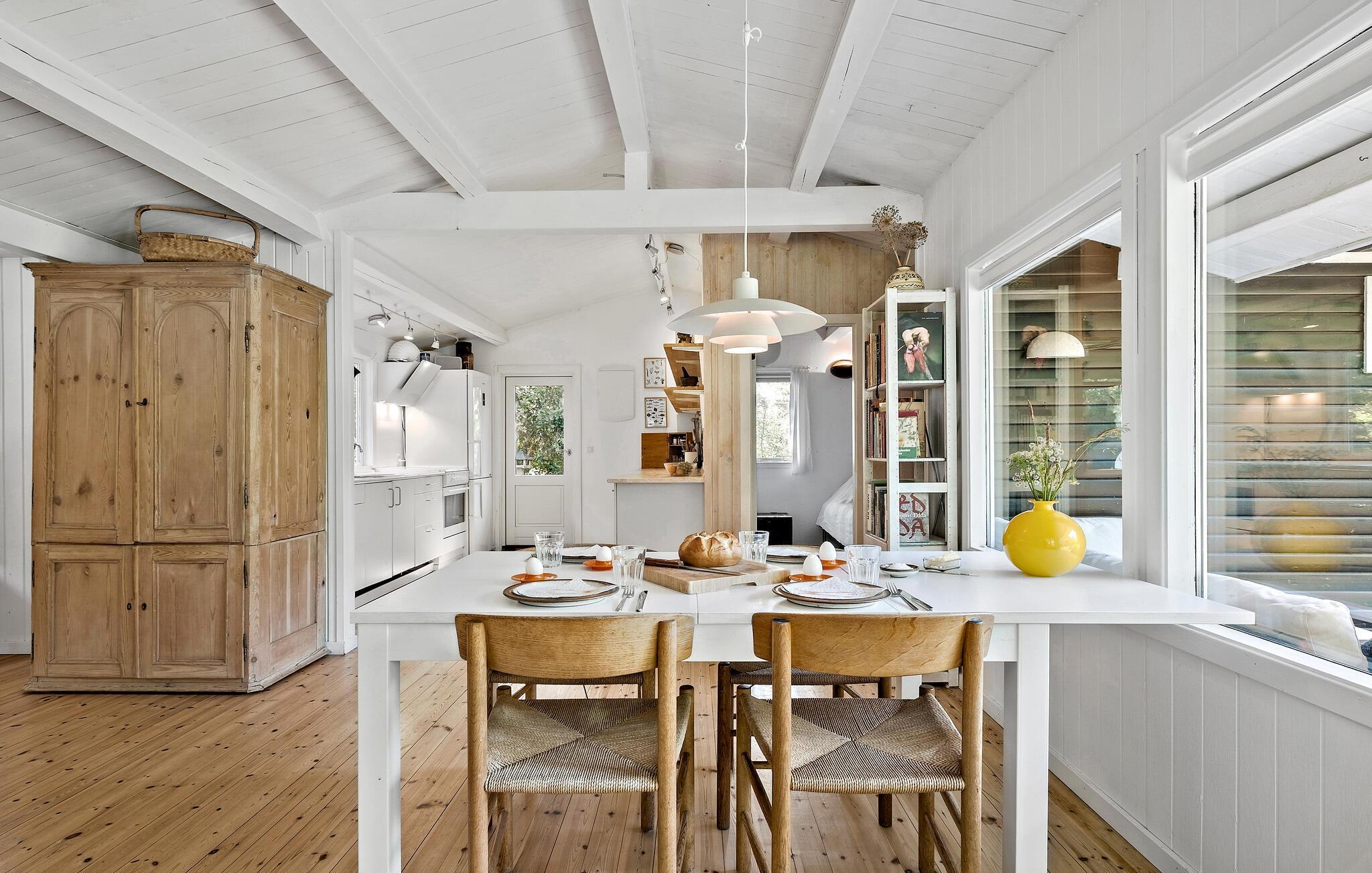 Velkommen til dette charmerende hus, der ligger i dejlige omgivelser i Ellinge Lyng og danner rammen om en herlig ferie med familien. Huset er nydeligt indrettet med åbent boligkoncept, velholdte trægulve og dejlige lysindfald gennem de mange vinduespartier, der samtidig giver en skøn udsigt til haven. En særligt hyggelig detalje er indgangen til det ene af værelserne, der går gennem i et skab, som giver indgangen et helt Narnia-agtigt udtryk. Nyd godt af husets moderne faciliteter, tænd op i brændeovnen på en gråvejrsdag og tilbered familiens livretter i det veludstyrede køkken, inden I flader ud med brætspil i stuen til langt ud på aftenen.