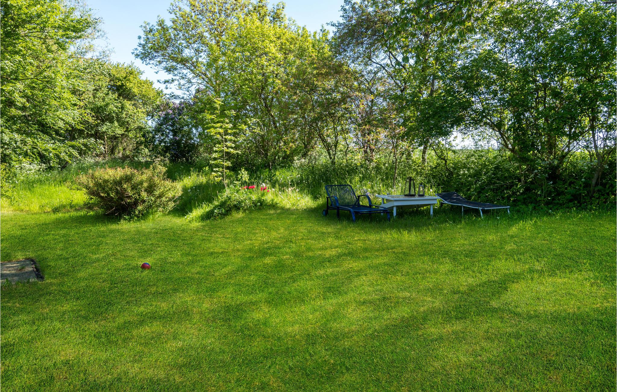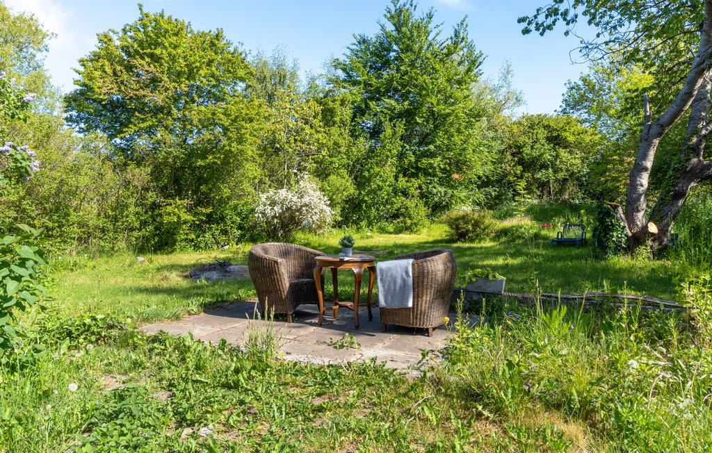 Midt på Møn ligger dette feriehus med frodig have.