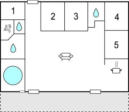 Badeværelse 20m2 (nr. 1) - WC. Varmt og koldt vand. Bruser