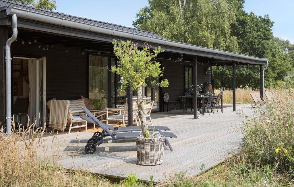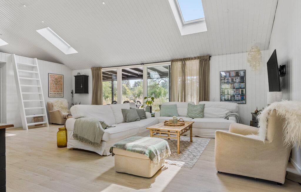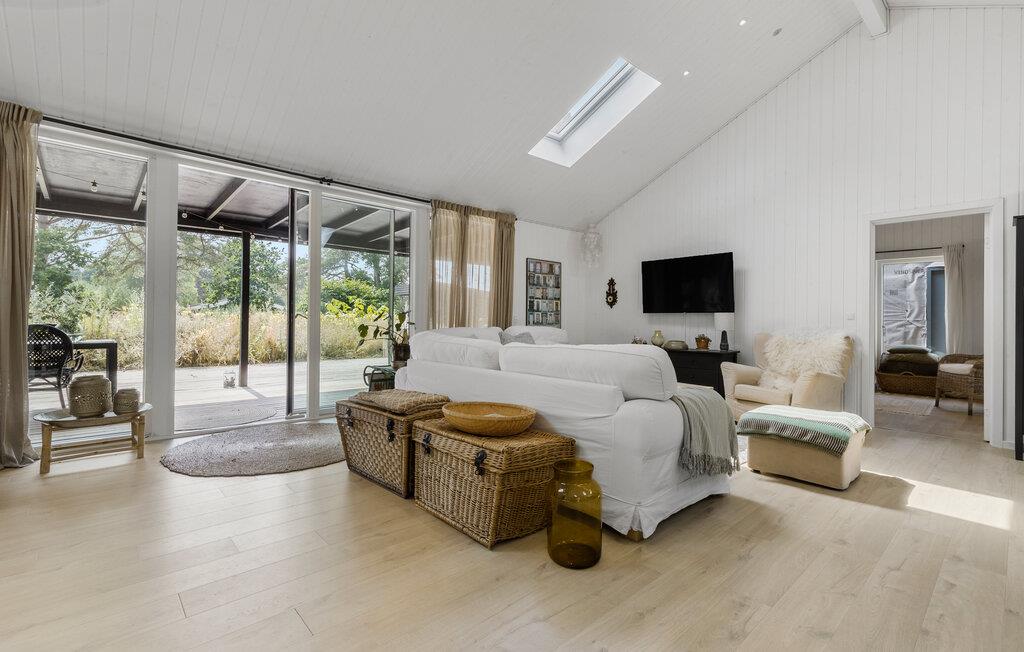 Dette velindrettede hus er lyst og åbent indrettet. Der er lagt vægt på kvalitetsløsninger, og boligen emmer af ro og feriestemning. De store vinduer har udsigt over den grønne have. Læn jer tilbage i de komfortable sofaer, mens I snakker om dagen, der er gået eller lytter til musik. Det moderne køkken lægger op til hyggelige madlavningsseancer, inden I dækker op til den store feriemiddag.