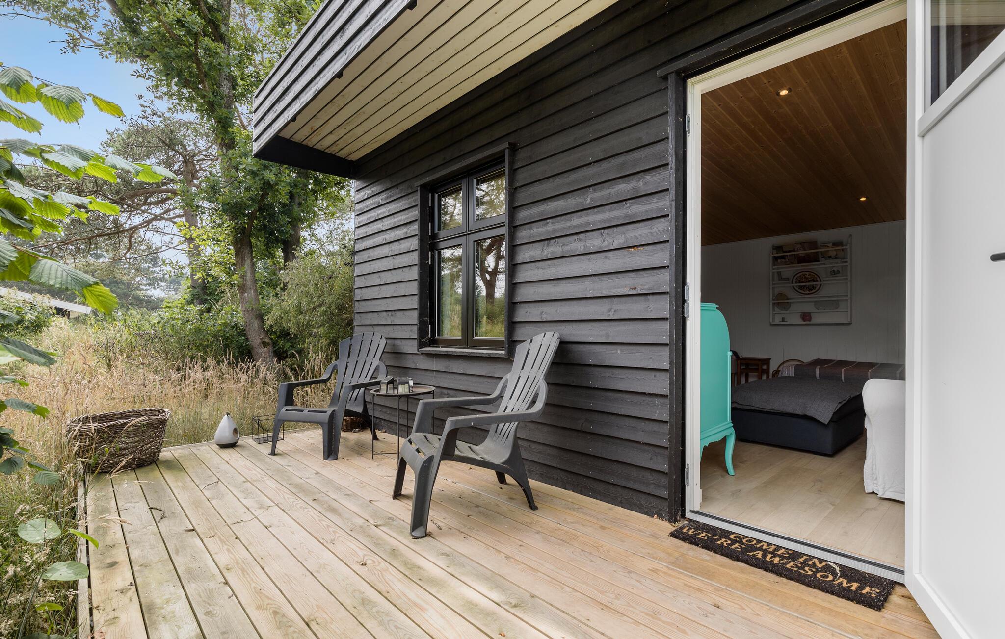 Fredfyldt træhus ved Elsegaarde Strand med moderne faciliteter og stor have.