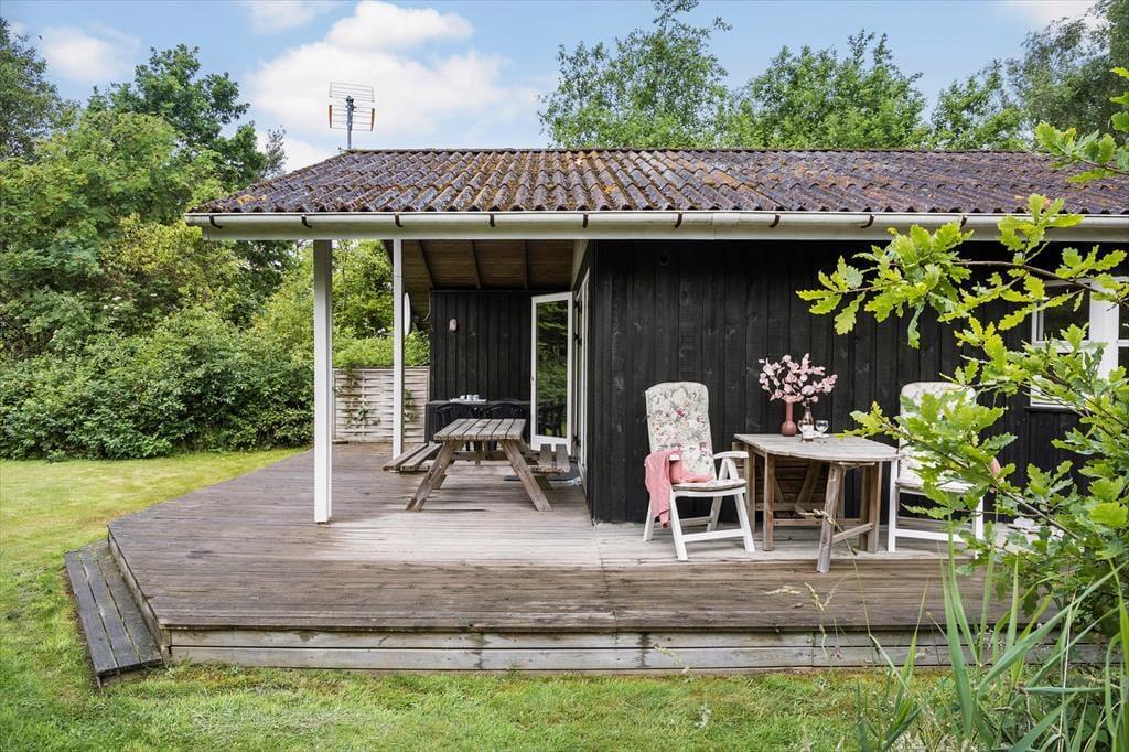 Udenfor venter en dejlig stor terrasse, hvor I kan nyde morgenkaffen med udsigt til den grønne have eller grille jeres aftensmad, mens solen går ned over træerne. Her er masser af plads til leg og afslapning – måske en omgang kroket på græsplænen, en god bog i skyggen eller blot tid til at lytte til fuglene og lade skuldrene sænke sig. På de lune sommeraftener kan I tænde op i grillen, finde tæpperne frem og nyde feriestemningen under åben himmel.