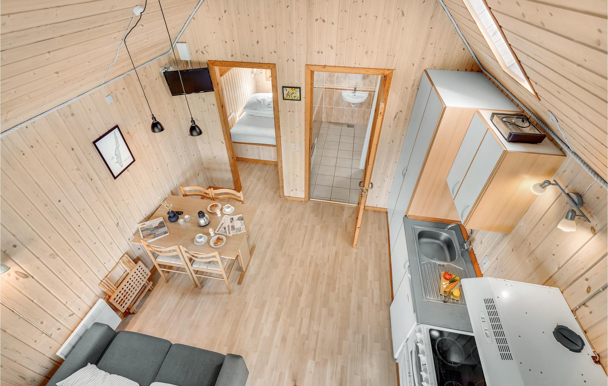 Jeres feriehus byder på et lyst, åbent interiør og en praktisk indretning, så I ikke kommer til at mangle noget. Opholdsstuen med åbent køkken lægger op til hyggelige timer omkring spisebordet og afslappede aftener med brætspilshygge. I soveværelset og på den hyggelige hems finder I flere gode sovepladser. Fra stuen er der udgang til terrassen med grill og havemøbler til de lange, lyse sommeraftener.