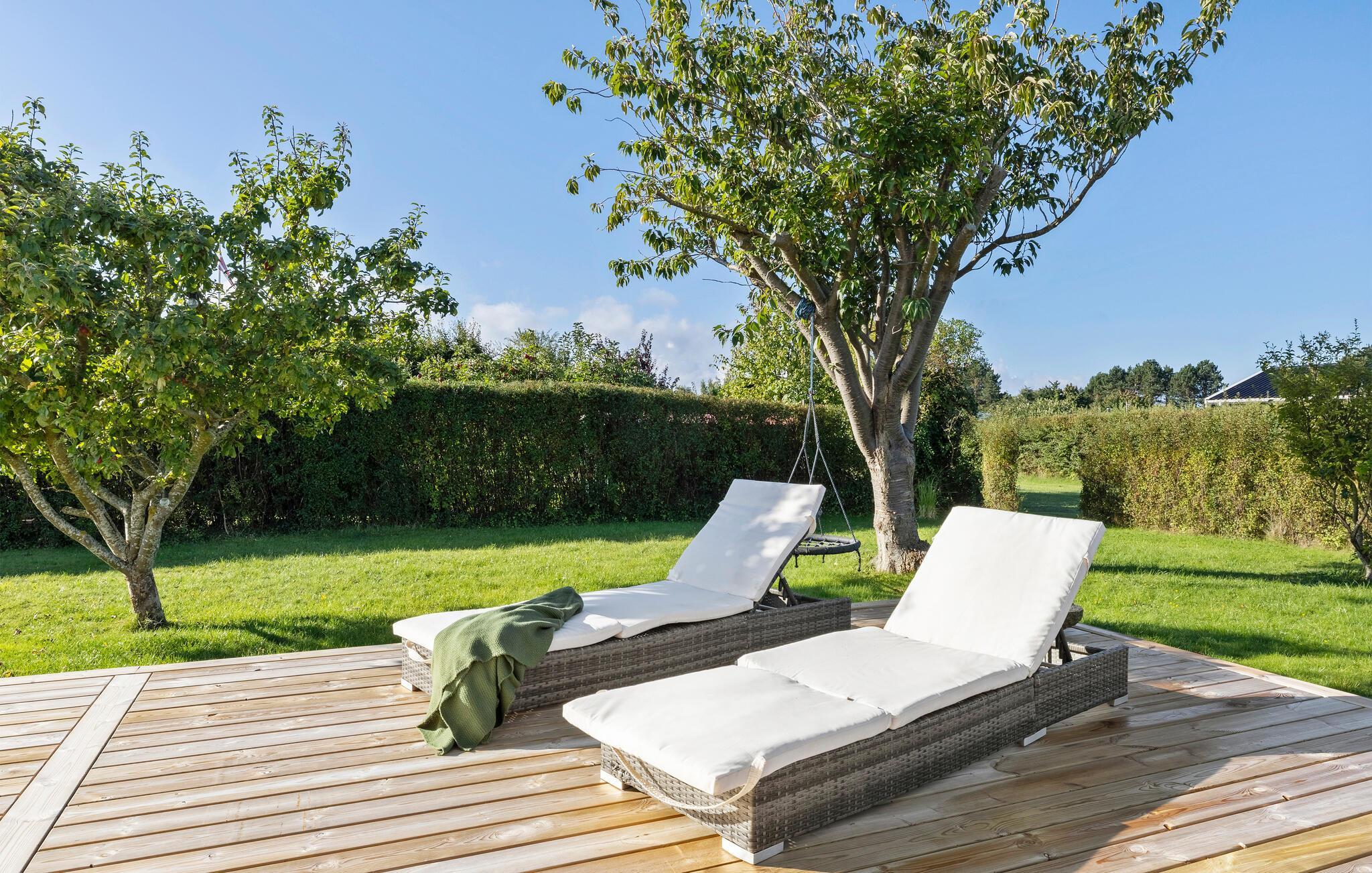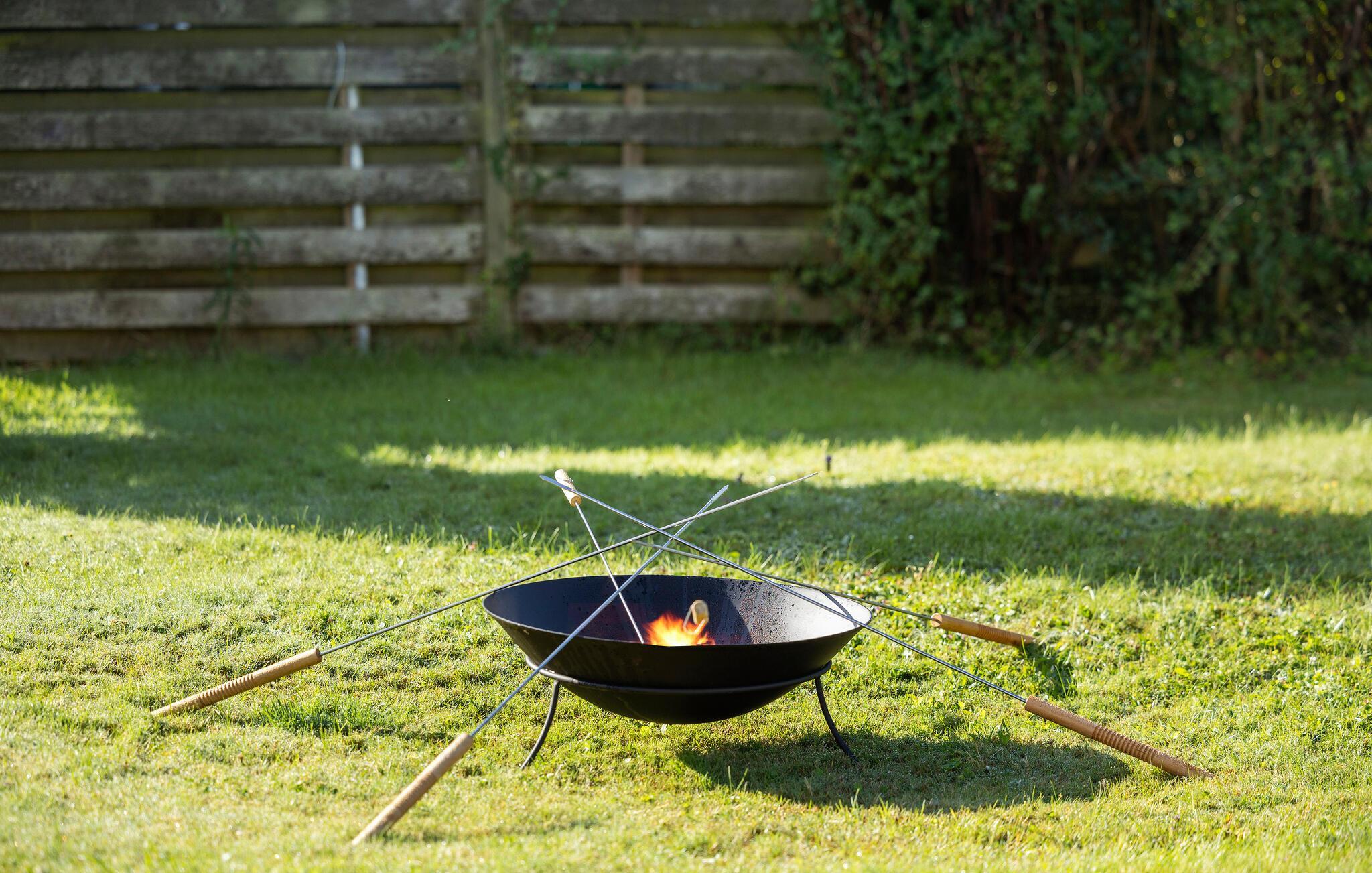 Den store træterrasse giver masser af plads til alle, og den store græsplæne tilbyder masser af plads til at lege og boltre sig. Når dagen lakker mod enden, bliver bålstedet et samlingssted for hele familien – med snobrød og hyggelige samtaler under aftenhimlen.