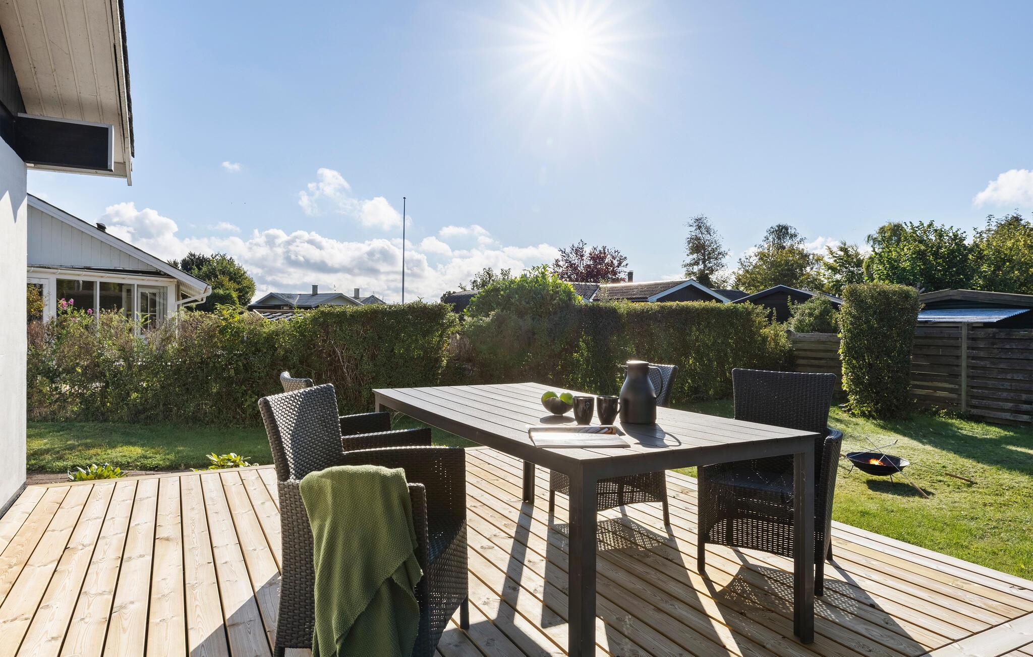 Hyggeligt feriehus nær Enø strand med stor terrasse, bålplads og skøn natur for hele familien.